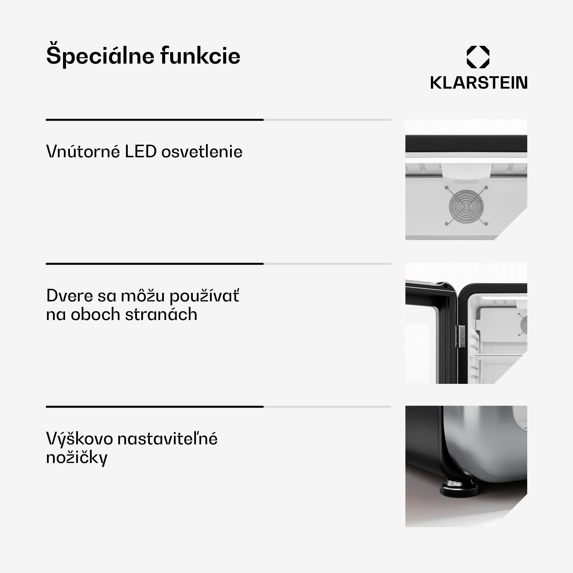 Chladnička na nápoje Klarstein Audrey Evo kombinuje štýlový dizajn s praktickými funkciami a je ozdobou každej miestnosti. Táto chladnička s veľkorysým objemom 113 litrov ponúka dostatok priestoru pre vaše obľúbené nápoje. Individuálne nastaviteľná teplota od 0 do 10 stupňov zaisťuje, že vaše občerstvenie bude vždy optimálne vychladené, či už na spoločenské večery alebo pohodové popoludnia.Vďaka svojej energetickej triede C je chladnička na nápoje Klarstein Audrey Evo šetrná nielen k vašej peňaženke, ale aj k životnému prostrediu. Dvere s dvojitým sklom vám poskytujú rýchly prehľad o obsahu a zároveň vás chránia pred slnečným žiarením, takže teplota zostáva konštantná. Štýlový retro vzhľad so živými farbami a zaoblenými tvarmi dodáva chladničke nadčasový šarm, vďaka ktorému sa stane ozdobným prvkom vašej domácnosti. Chladnička na nápoje Klarstein Audrey Evo je nielen funkčná, ale aj s jednoduchou prevádzkou vďaka mechanickému termostatu, ktorý je užívateľsky prívetivý, a praktickému LED osvetleniu. Nastaviteľné nožičky a obojstranné dvere tiež zabezpečujú, že chladničku možno flexibilne integrovať do akejkoľvek miestnosti. Vychutnajte si osviežujúce nápoje v štýlovom prostredí a objavte všestrannosť chladničky na nápoje Klarstein Audrey Evo – objednajte teraz!