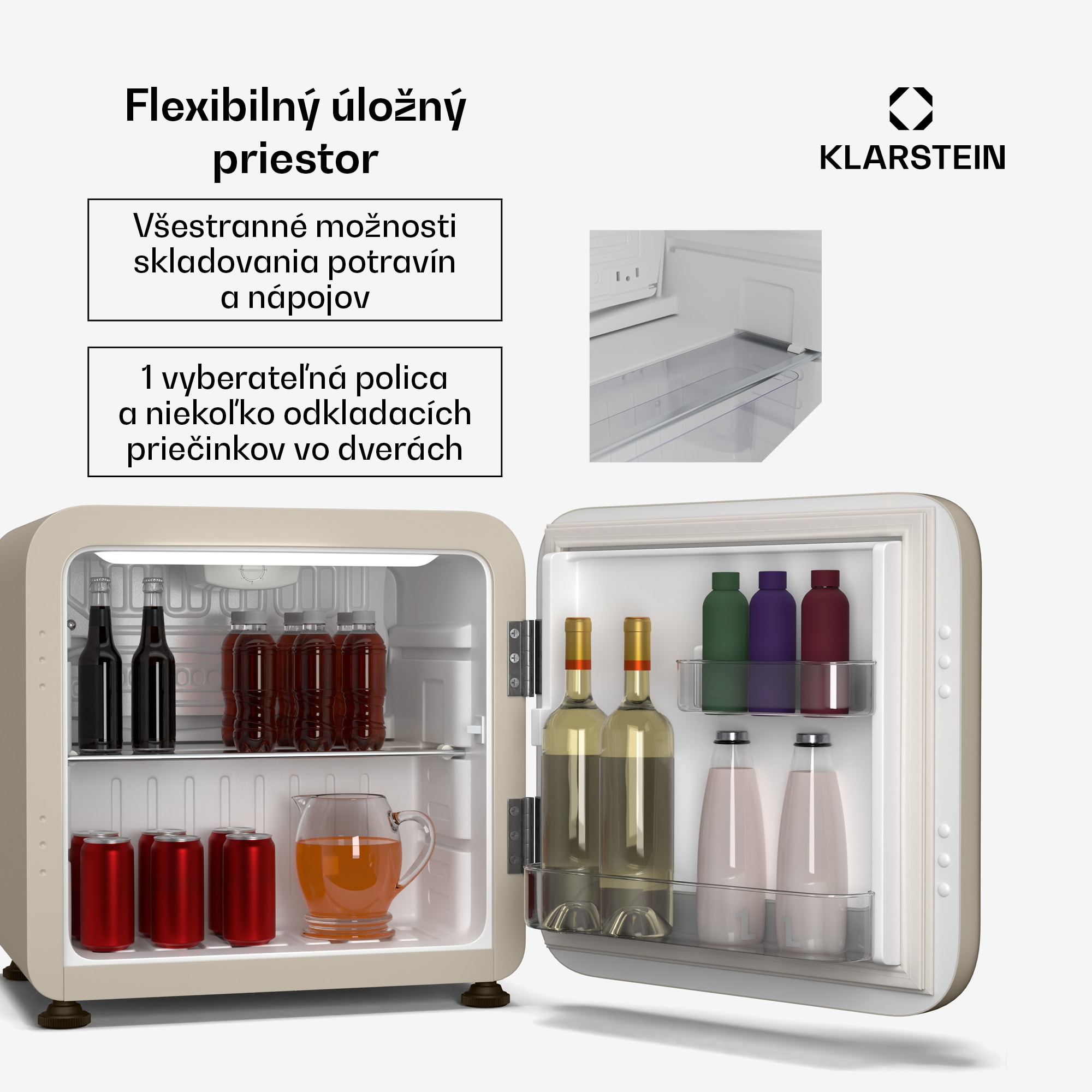 Klarstein Audrey Evo mini chladnička, 43 l, retro dizajn, tichá, kompaktná, 3 farby –Kúpiť