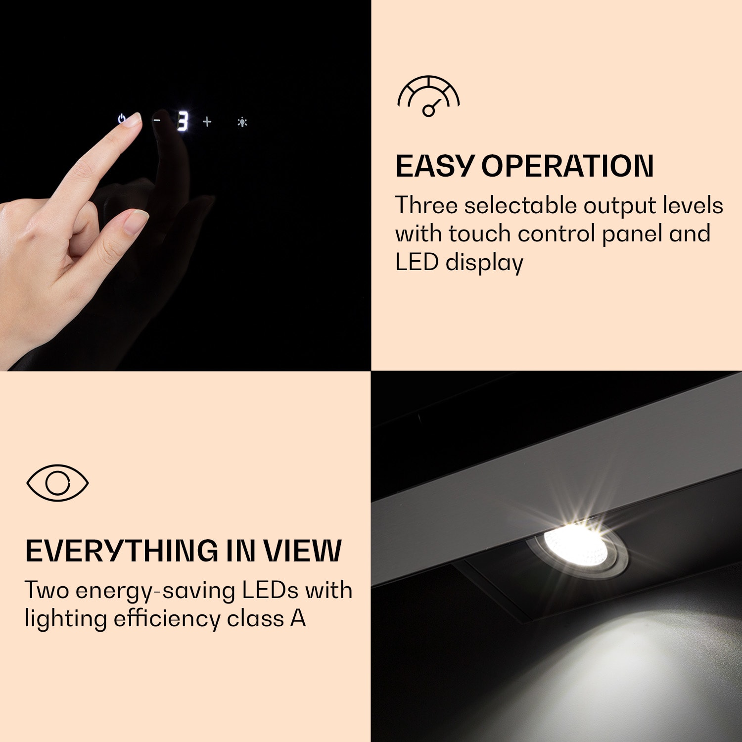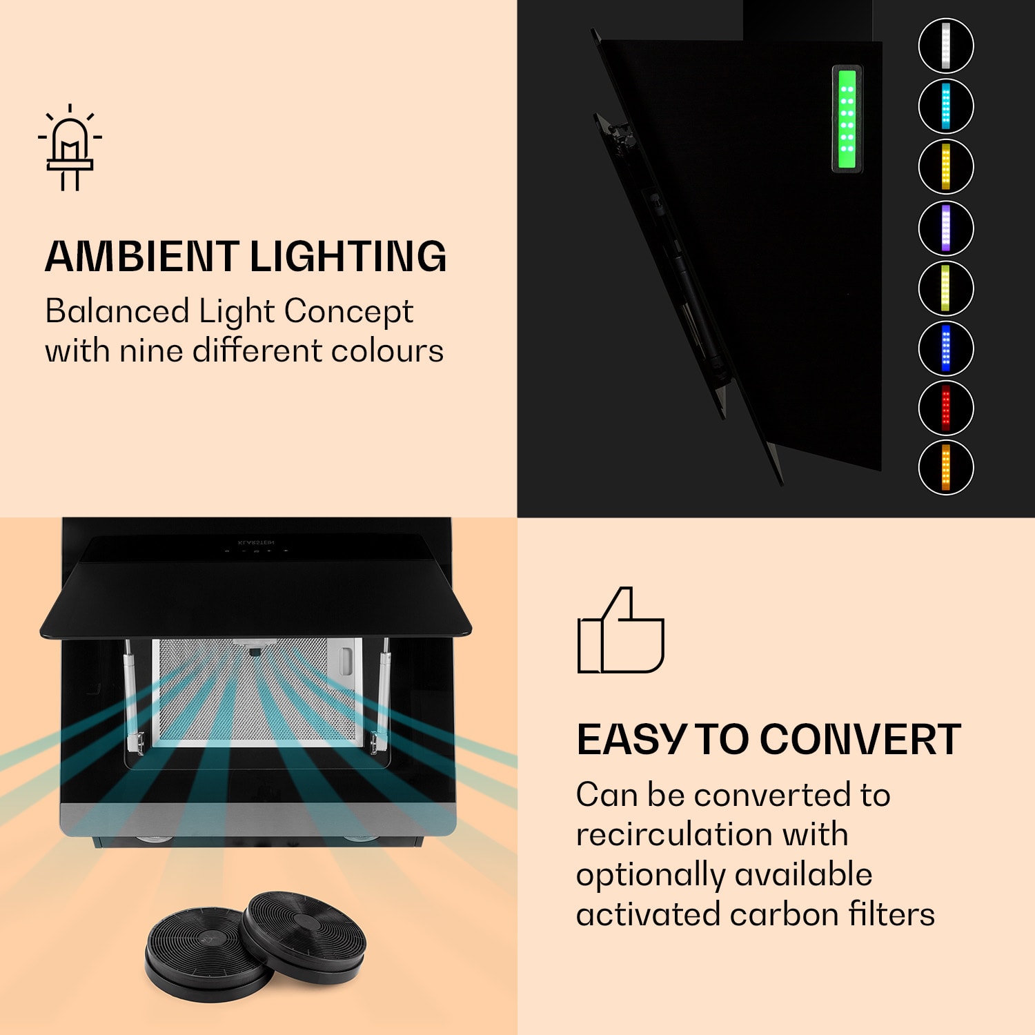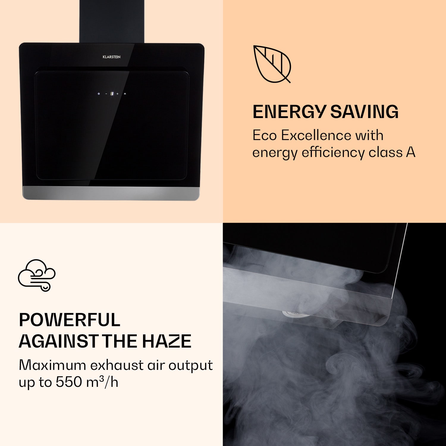 Klarstein Aurora Eco 60, digestor, 60 cm, nástenný, 550 m³/h, A+, dotykové ovládanie, čierny –Kúpiť