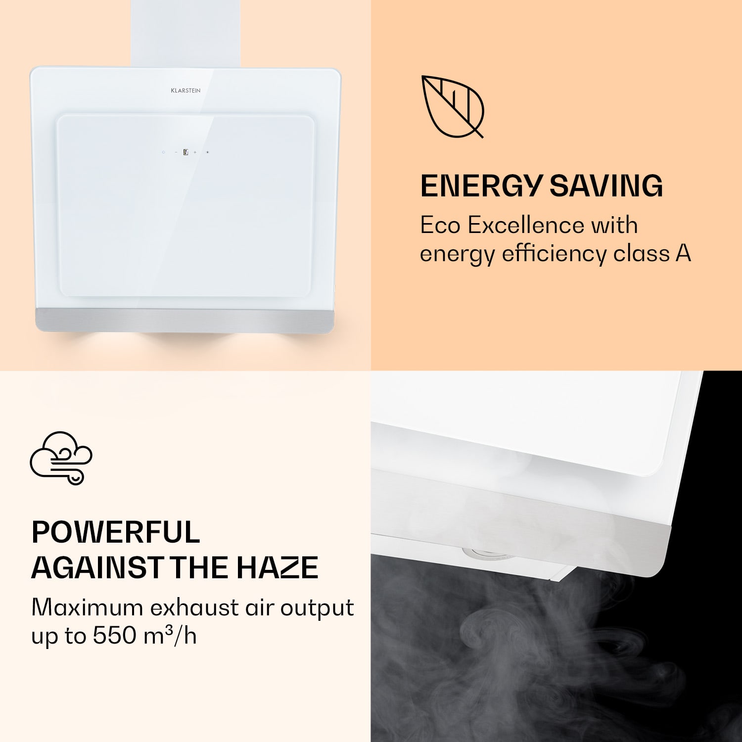 Teraz do kuchyne prichádza lesk a atmosféra – a digestory Klarstein Aurora Eco navyše eliminujú paru a pachy jedla. S prietokom odsávania až 550 m³/h v troch stupňoch Aurora Eco neúnavne odstraňuje paru a zápach z kuchyne. Zvláštny šarm vyžaruje nielen jeho štýlový exteriér z tvrdeného skla, ale aj prepínateľné okolité svetlo v 9 voliteľných farbách. V kuchyni tak vždy vládne tá správna atmosféra. Pre nazeračov do hrncov je k dispozícii aj veľmi jasné LED osvetlenie varnej dosky.