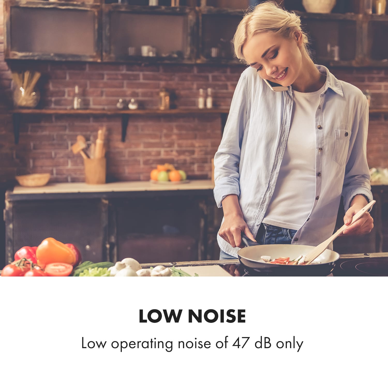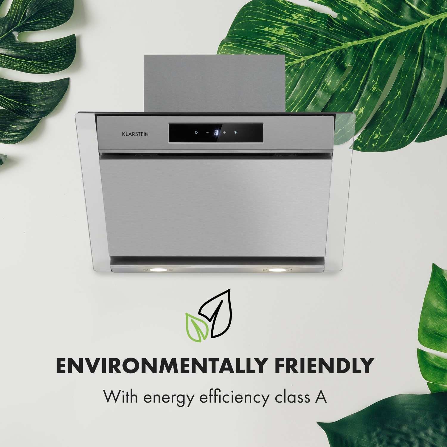 Najlepší vzduch v kuchyni: digestor Klarstein Balzac Silent 60 dodá kuchyniam elegantnú črtu a spoľahlivo odstráni paru a výpary počas varenia.digestor Klarstein Balzac Silent 60 sa postará s výkonom motora 250 W v režime odsávania vzduchu o čistý vzduch v malých až stredne veľkých kuchyniach. Tri výkonnostné stupne nástenného digestora s voľným priestorom pre hlavu s maximálnym prietokom vzduchu až do 604 m³/h sa ciele zameriavajú na oblasť varnej dosky. Zariadenie Balzac Silent 60 je pritom so 60 dB aj na najvyššom stupni výkonu mimoriadne tiché. Obzvlášť praktická je konštrukcia smerujúca do výšky so šírkou 60 cm, čo zabezpečuje dostatok priestoru nad pracovnou plochou aj voľnosť pohybu. Digestor pritom nepotrebuje veľa miesta ani do hĺbky. Zapínateľné svetlo s 2 x 1,5 W LED žiarovkami zabezpečuje dobrú viditeľnosť pri sporáku. Vetranie a osvetlenie môžeš pohodlne ovládať pomocou predného dotykového displeja. Funkcia „quick-timer“ nekomplikovane vetrá vzduch ešte 5 minút a potom zariadenie vypne.Nástenný digestor Klarstein Balzac Silent 60 presvedčí nielen výkonnostnými údajmi, ale aj svojím luxusným výzorom: telo z ušľachtilej ocele dáva zariadeniu moderný vzhľad, ktorý je doplnený bočnými prvkami z bezpečnostného skla a 2-dielnym krytom komína. Skutočný stredobod kuchyne, tento komínový digestor!