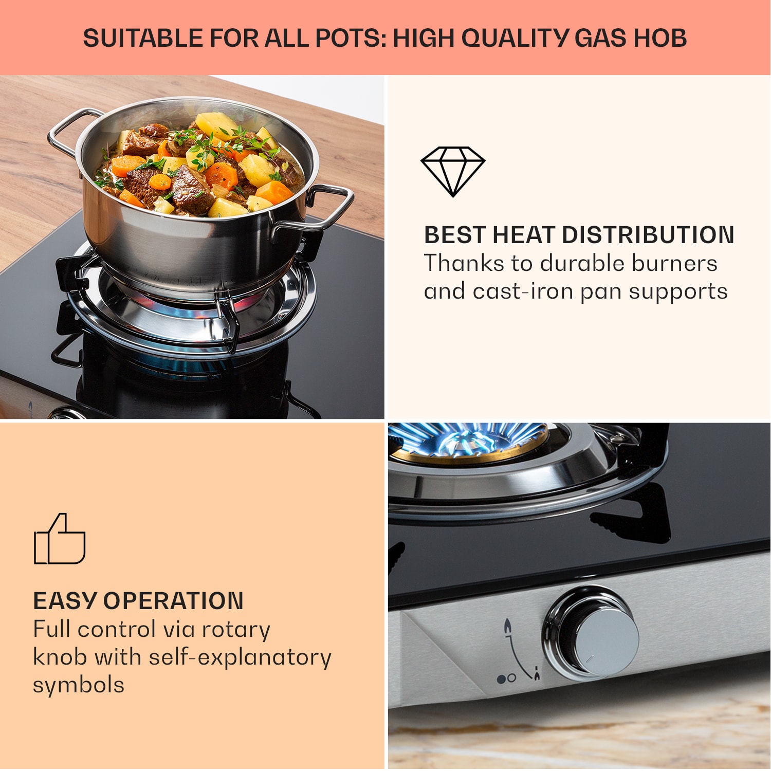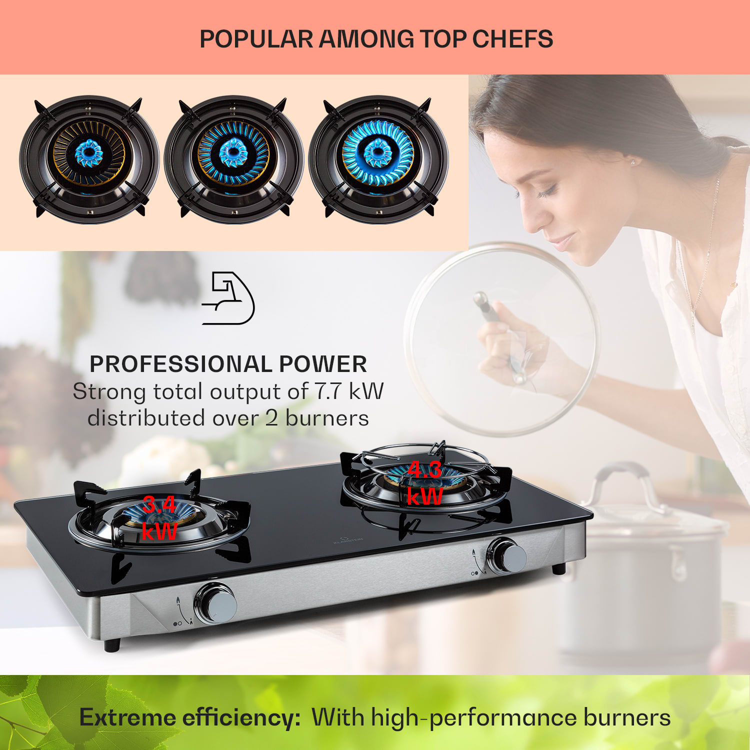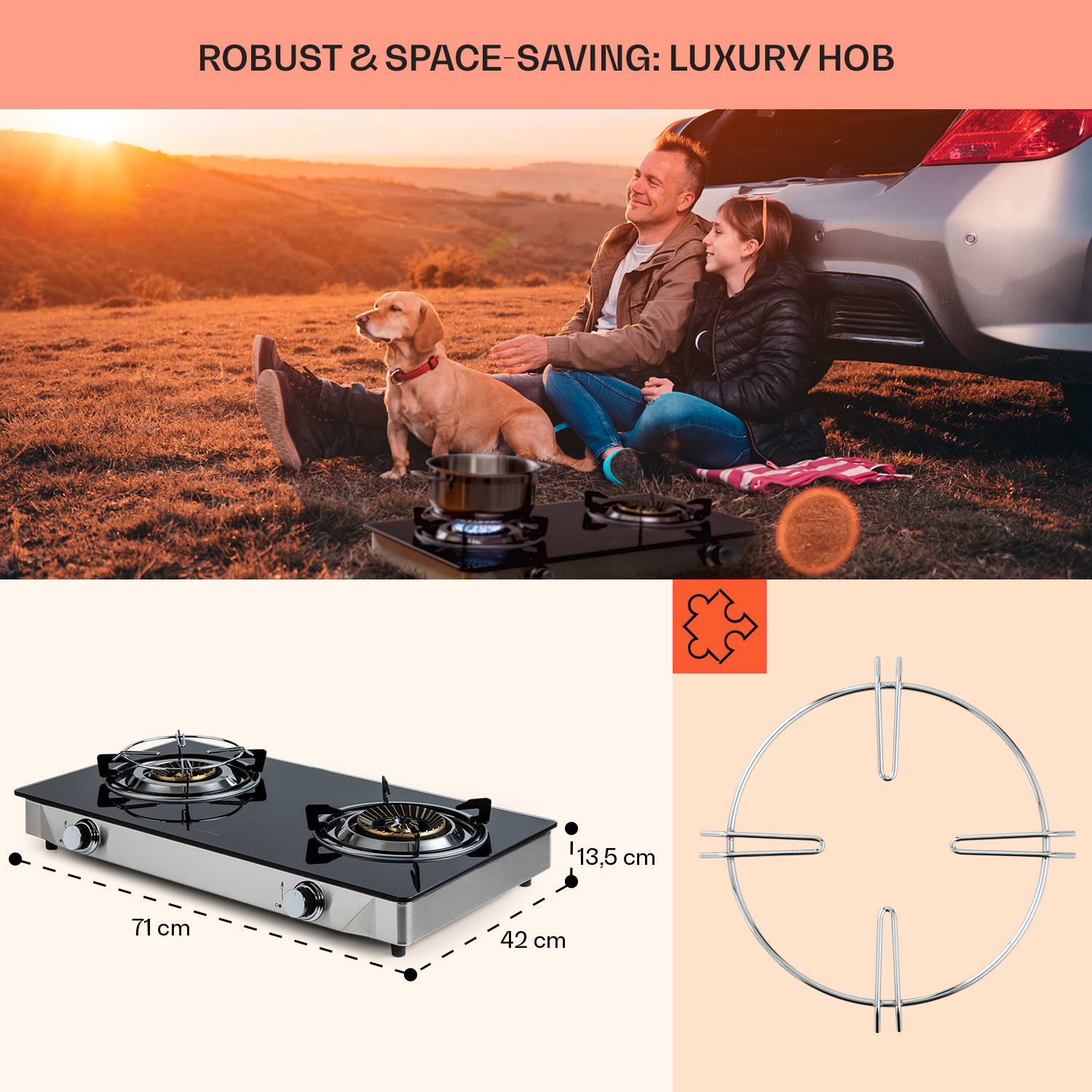 Klarstein Barzona 2, kempingový varič, 2 horáky, 3,4 kW a 4,3 kW, sklenená doska, kryt z nehrdzavejúcej ocele –Kúpiť