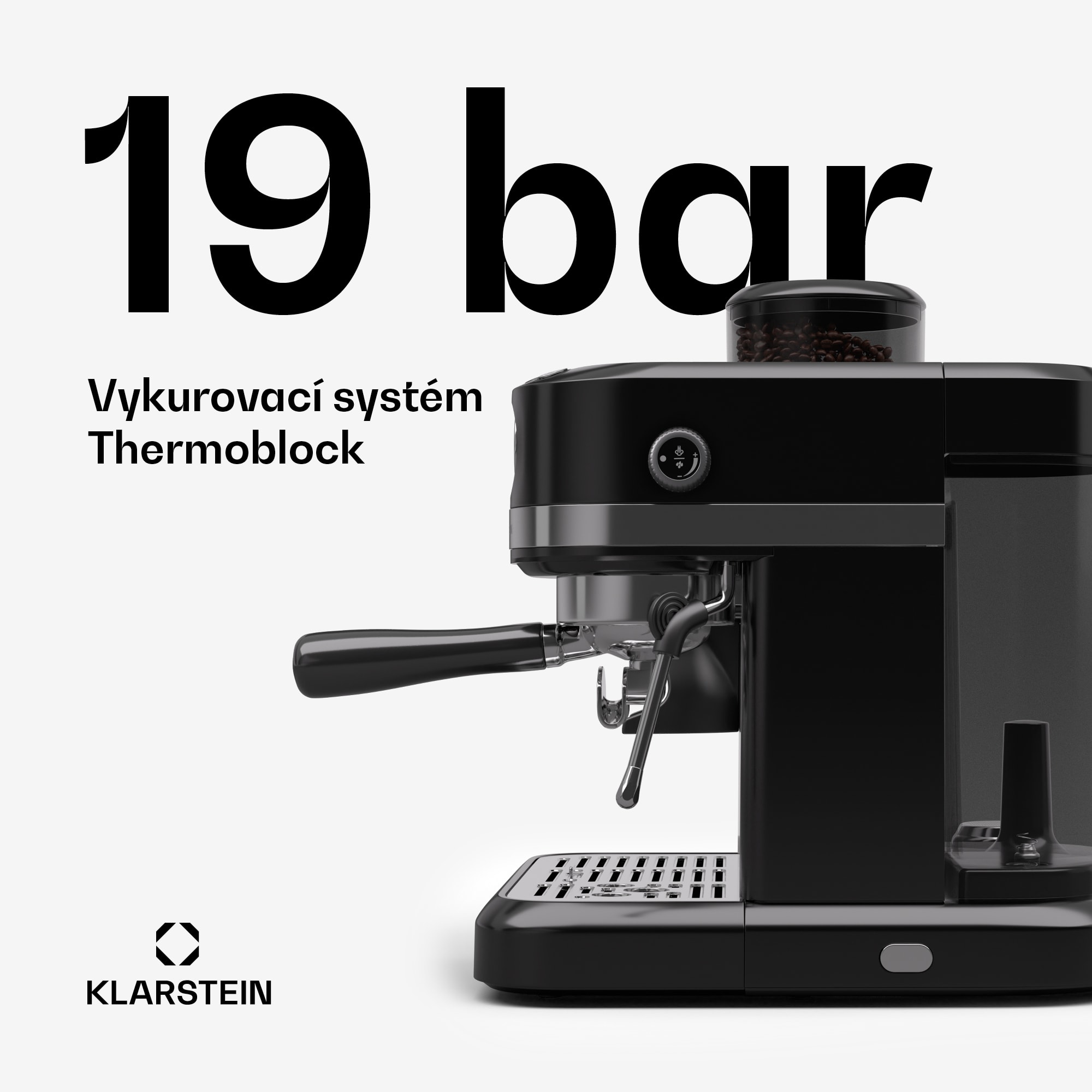 Klarstein Bella Café Pákový kávovar, Vintage, mlynček, 19 bar, Napeňovač mlieka, Tlakomer, 1150 W –Kúpiť