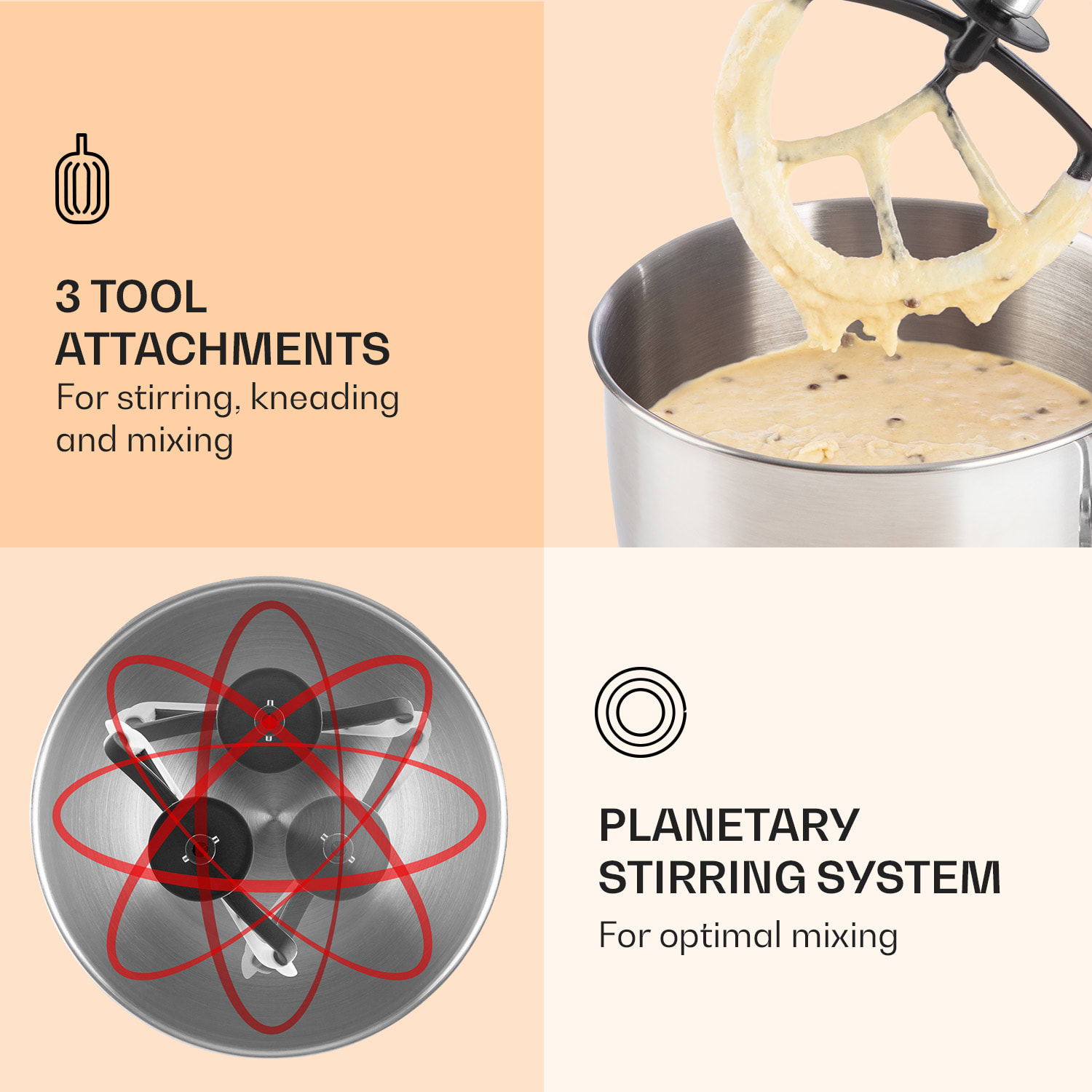 Kuchynský robot Klarstein Bella – silný až do poslednej otáčky. Pustite sa do práce štýlovo s kuchynským robotom Klarstein Bella vo svojej kuchyni. Náš planetárny systém miešania, ktorý je podporený výkonom 1800 W v 6 rýchlostných stupňoch, spĺňa všetky výzvy moderného umenia miešania. Či už ide o chlebové cesto, šľahačku alebo papagájový koláč: V 5,2-litrovej miske z nehrdzavejúcej ocele môžete všetko dokonale premiešať pomocou 3 miešacích hákov. Farebný dizajn vášho nového kuchynského robota Bella je rovnako pôsobivý. Takto bude aj po použití ozdobou vašej kuchyne!Voliteľné príslušenstvo: 10031097 Lucia/Bella flexibilný miešací hák 10031522 Bella/Lucia miska z nehrdzavejúcej ocele 10006310 Bella/Lucia miska z nehrdzavejúcej ocele 10006311 Bella hnetací hák 10006313 Bella/Lucia metlička na sneh 10006314 Bella veko