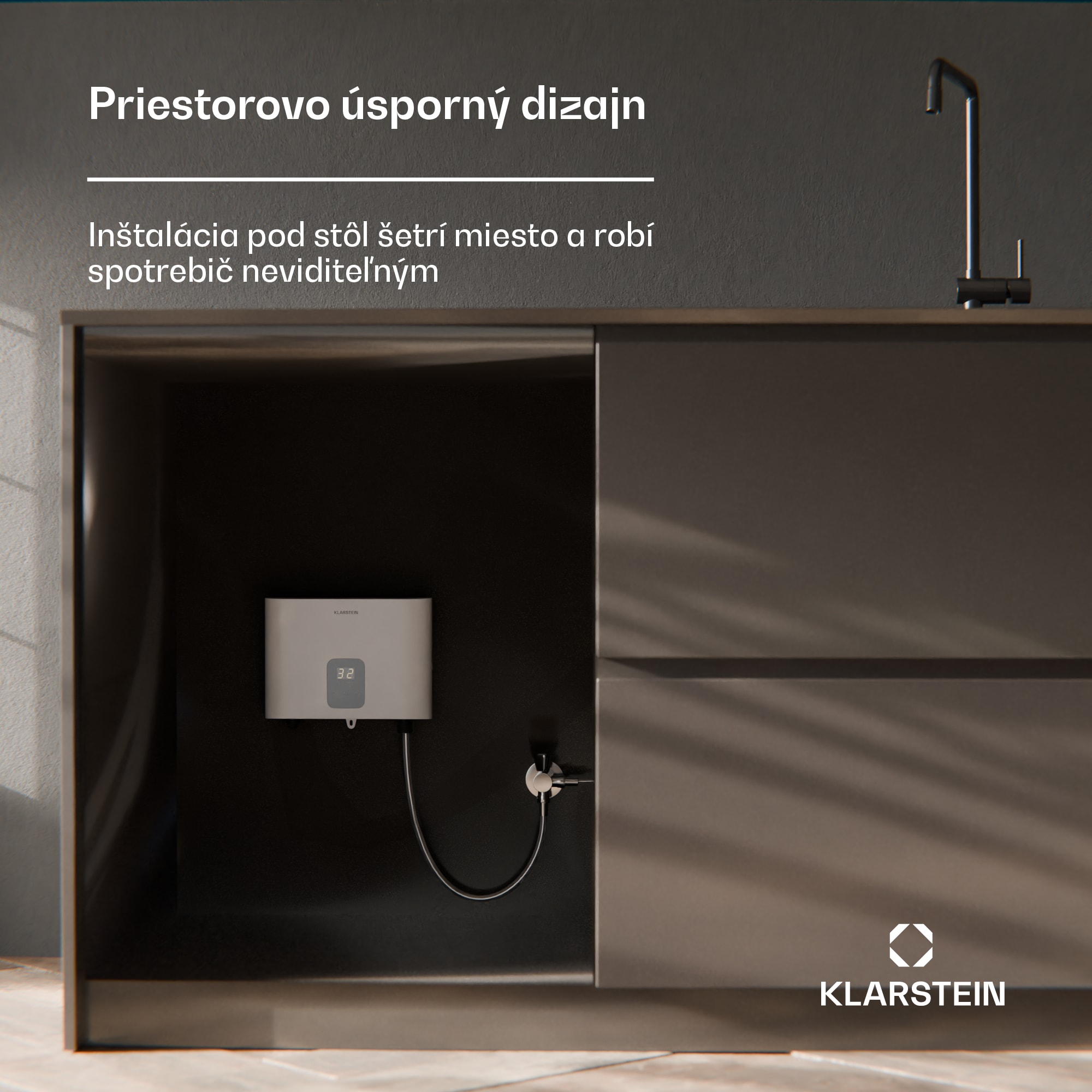 Elektrický prietokový ohrievač vody Klarstein Blaze Flow je kompaktné a efektívne riešenie na zabezpečenie konštantnej dodávky teplej vody. Tento prietokový ohrievač vody pod stôl s liatym hliníkovým vyhrievacím telesom zabezpečuje rýchly a spoľahlivý ohrev. S výkonom 5,5 kW a napätím 230 V je ideálny na použitie v domácnostiach, kde je obmedzený priestor, ale vyžaduje sa spoľahlivá dodávka teplej vody. Spotrebič ohrieva vodu na konštantnú teplotu 35 °C, takže je ideálny na každodenné použitie, napríklad na umývanie rúk a čistenie. Vďaka štíhlemu dizajnu a nízkej hmotnosti ho možno ľahko nainštalovať pod umývadlo, čím sa ušetrí cenné miesto v kuchyni alebo kúpeľni. Okrem toho elektrický prietokový ohrievač vody Klarstein Blaze Flow nevyžaduje batérie, čo zjednodušuje údržbu a prevádzku. Tento prietokový ohrievač vody je vynikajúcou voľbou pre každého, kto hľadá energeticky úsporné a priestorovo šetrné riešenie pre svoju dodávku teplej vody.