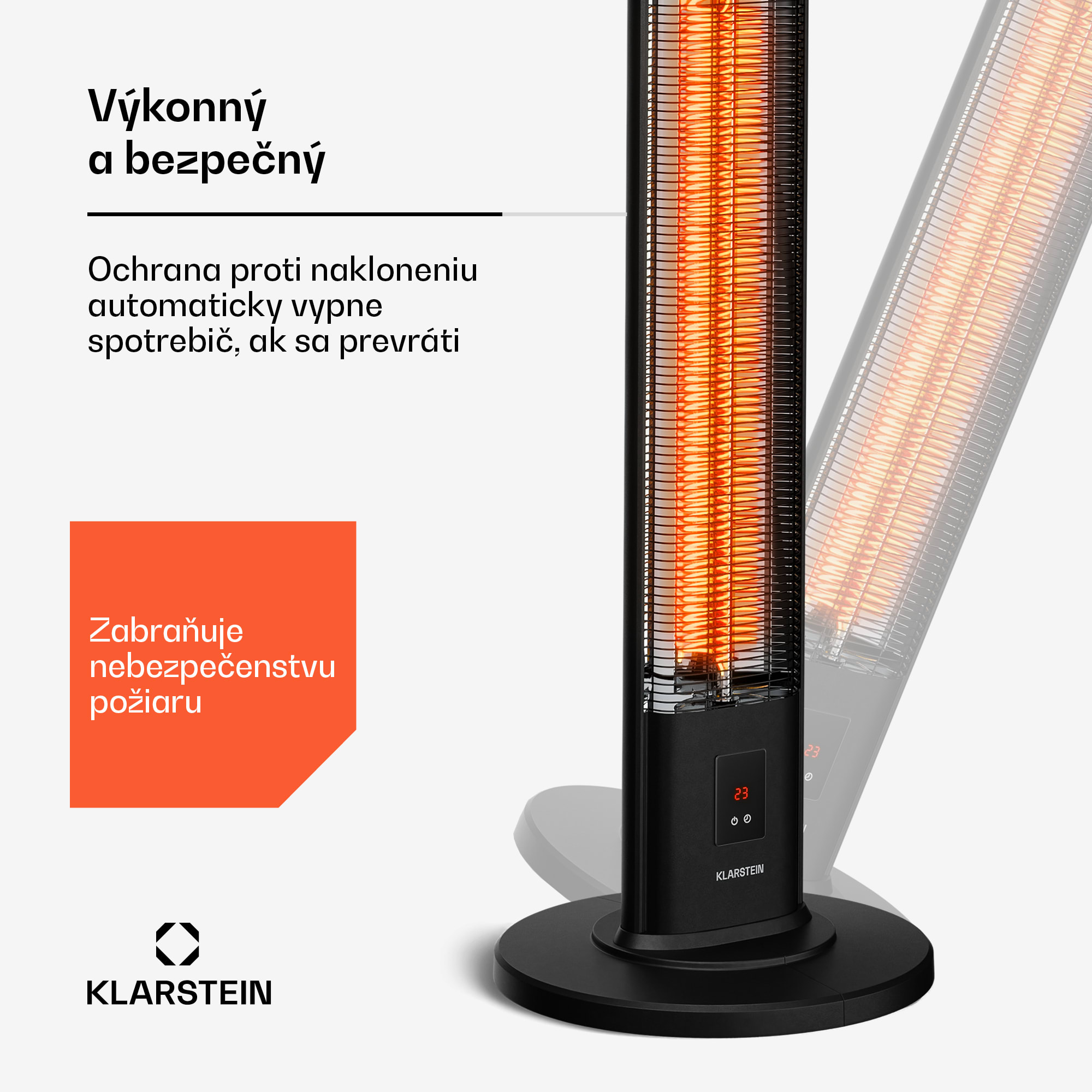 Infračervený ohrievač Klarstein BlazeTower kombinuje vysoký výkon s pohodlnou obsluhou a účinnosťou.Vyhrieva vonkajšie plochy s rozlohou až 15 m² štvorcových s výkonom 2000 W rozdeleného na 3 úrovne. Infračervená vykurovacia jednotka pracuje vždy efektívne a navyše ticho. Zariadenie sa ovláda buď diaľkovým ovládačom, alebo dotykovým displejom priamo na zariadení.Možné umiestniť ako samostatné zariadenie. To znamená, že voľne stojace infračervené vykurovacie zariadenie možno kedykoľvek premiestniť podľa potreby.Vďaka ochrane proti náklonu možno spotrebič vždy bezpečne nastaviť a časovač zaručuje optimálnu účinnosť a mimoriadne pohodlné používanie.