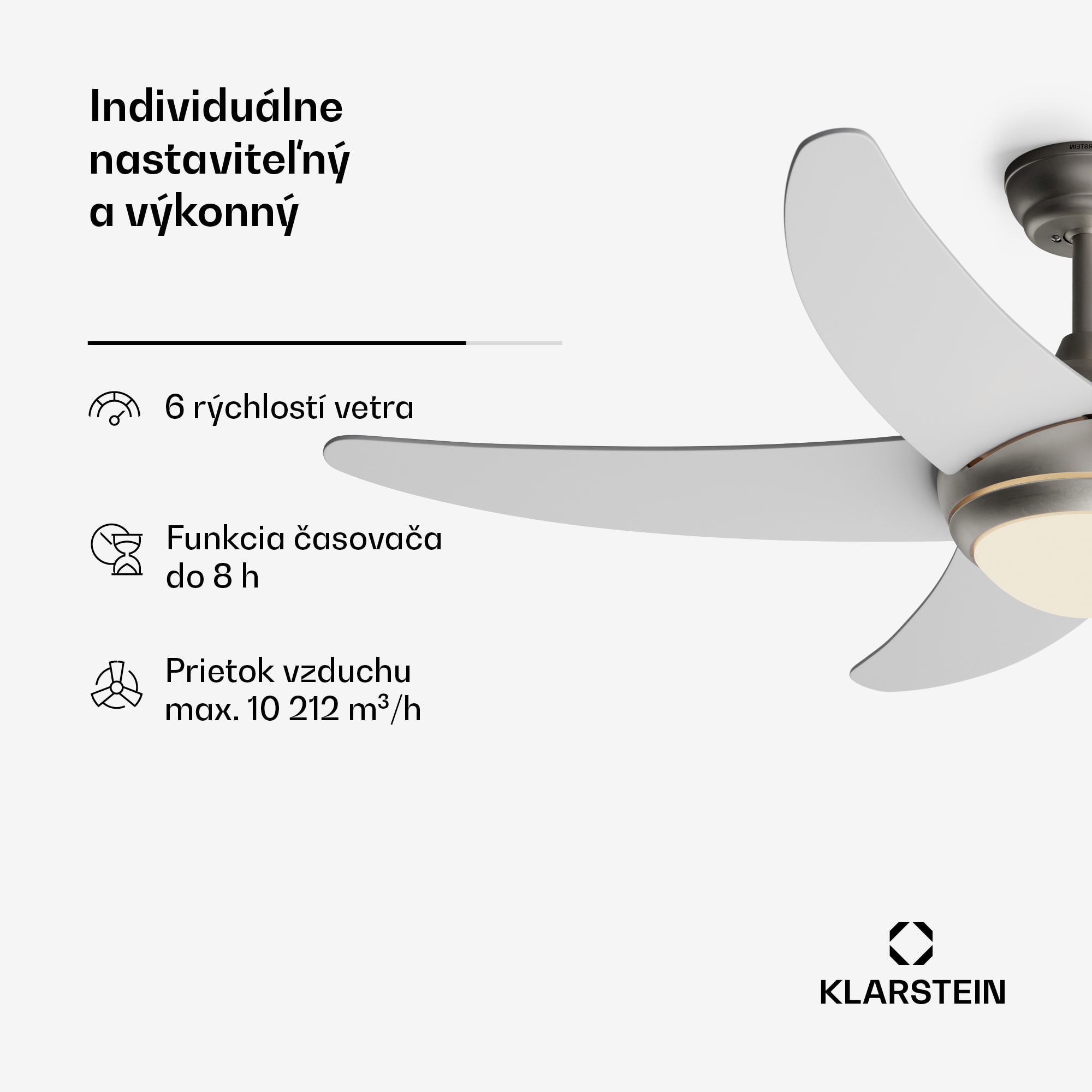 Zažite dokonalú symbiózu moderného dizajnu a inovatívnej technológie so stropným smart ventilátorom Klarstein Bolero. Tento smart ventilátor s pôsobivým priemerom 132 cm nielenže zabezpečuje príjemnú cirkuláciu vzduchu, ale integruje aj inteligentné funkcie pre maximálne pohodlné ovládanie.Tichý jednosmerný motor s inteligentným jadrom s guľôčkovými ložiskami umožňuje presné nastavenie cirkulácie vzduchu a zároveň je o 80 % energeticky účinnejší ako bežné ventilátory so striedavým motorom. Vďaka šiestim rôznym úrovniam rýchlosti si môžete vybrať dokonalú cirkuláciu vzduchu – bez rušivého hluku, dokonca aj v spálni.Inteligentné funkcie smart ventilátora Klarstein Bolero vám umožnia pohodlne ovládanie odkiaľkoľvek vo vašej domácnosti – či už diaľkovým ovládačom, hlasovým príkazom alebo pomocou inteligentnej aplikácie. Vďaka 6 rýchlostiam vetra a časovaču (1/3/8 hodín) môžete prispôsobiť nastavenia a dokonca aktivovať automatický režim spánku.Letný a zimný režim umožňujú celoročnú prevádzku. V lete zabezpečuje Bolero cirkuláciu chladného vzduchu smerom nahor, a tým príjemne ochladzuje klímu v miestnosti. V zimnom režime účinne rozvádza teplý vzduch zhromaždený pod stropom smerom nadol, čím pomáha znižovať náklady na vykurovanie.Dve dodané spúšťacie tyče (15 cm a 25 cm) umožňujú flexibilnú inštaláciu na rôzne výšky stropu. Inštalácia je jednoduchá vďaka premyslenému dizajnu a možno ju dokončiť za hodinu bez potreby drahého elektrikára.Vyskúšajte smart stropný ventilátor Klarstein Bolero – dokonalá kombinácia moderného štýlu a inteligentnej technológie pre celoročnú pohodovú klímu v interiéri.