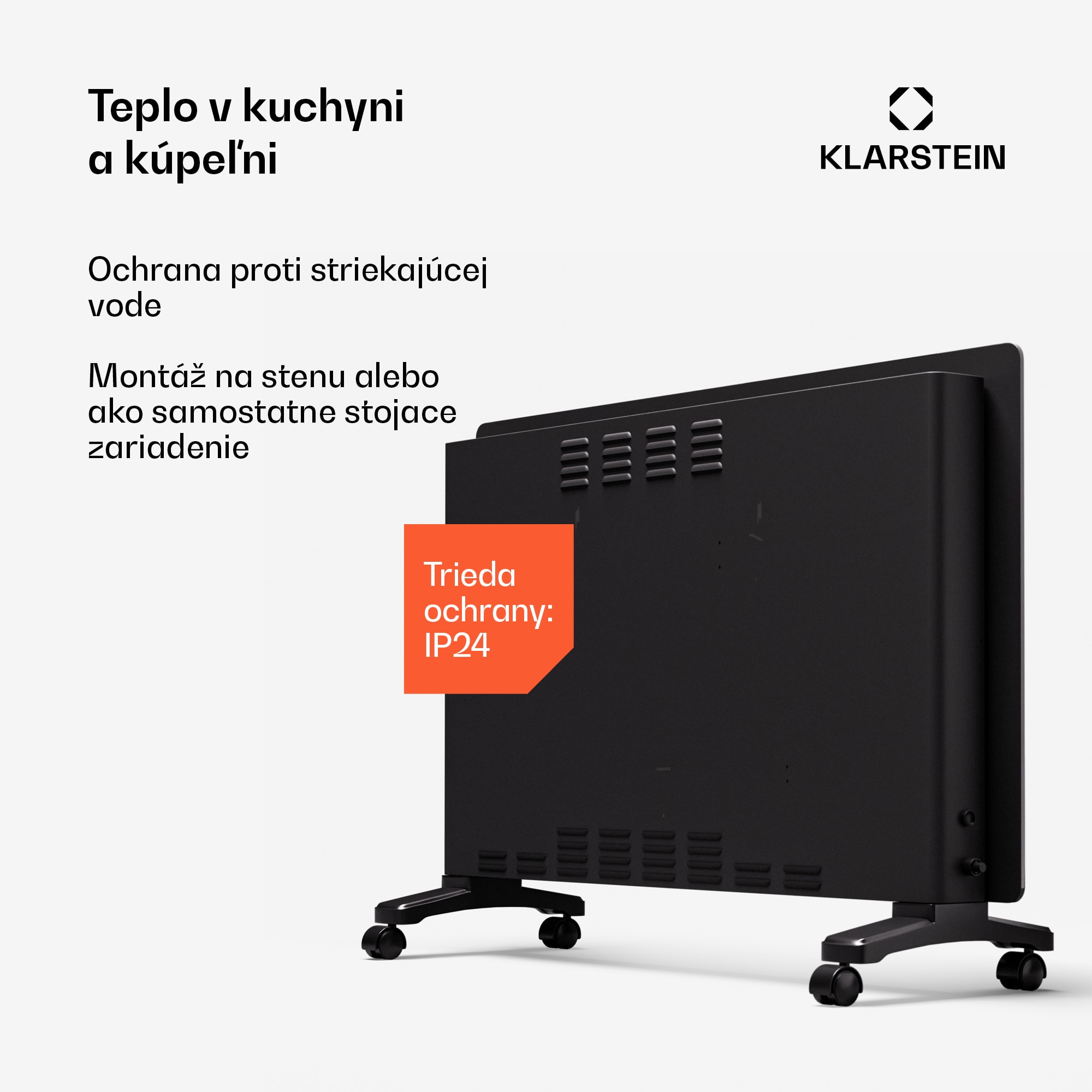 Elegancia, ktorá vytvára útulné pocity a útulné teplo vo vašej domácnosti: ohrievač Klarstein Bornholm Smart zaisťuje rovnomerné teplo až do 50 °C v miestnostiach do veľkosti 25 m². Výkonný ohrievač Klarstein Bornholm Smart s dvoma stupňami ohrevu s výkonom 1250 alebo 2500 W rýchlo a spoľahlivo vyhrieva miestnosti. Vďaka inteligentnému režimu ECO je spotreba energie znížená na minimum: To šetrí životné prostredie a vašu peňaženku. Vďaka SmartHeat Design môžete zariadenie jednoducho integrovať do domácej WiFi siete. Plne kompatibilný s Alexou alebo cez aplikáciu Klarstein na vašom smartfóne ho možno ovládať takmer odkiaľkoľvek: zapnite ho na ceste domov a čaká vás teplý byt – bez toho, aby ste museli celý deň kúriť. Vďaka stupňu krytia IP24 je moderný ohrievač ideálny aj do kuchyne alebo kúpeľne a v prípade potreby ho možno nainštalovať aj na stenu.Ohrievač Klarstein Bornholm Smart poskytuje spoľahlivé teplo, vďaka podlahovým kolieskam ho môžete ľahko premiestniť do akejkoľvek miestnosti a jeho používanie je mimoriadne pohodlné! Tento konvektor je skvelou voľbou pre každú domácnosť.Poznámka: Tento výrobok je vhodný len na použitie v dobre izolovaných miestnostiach alebo na príležitostné použitie.