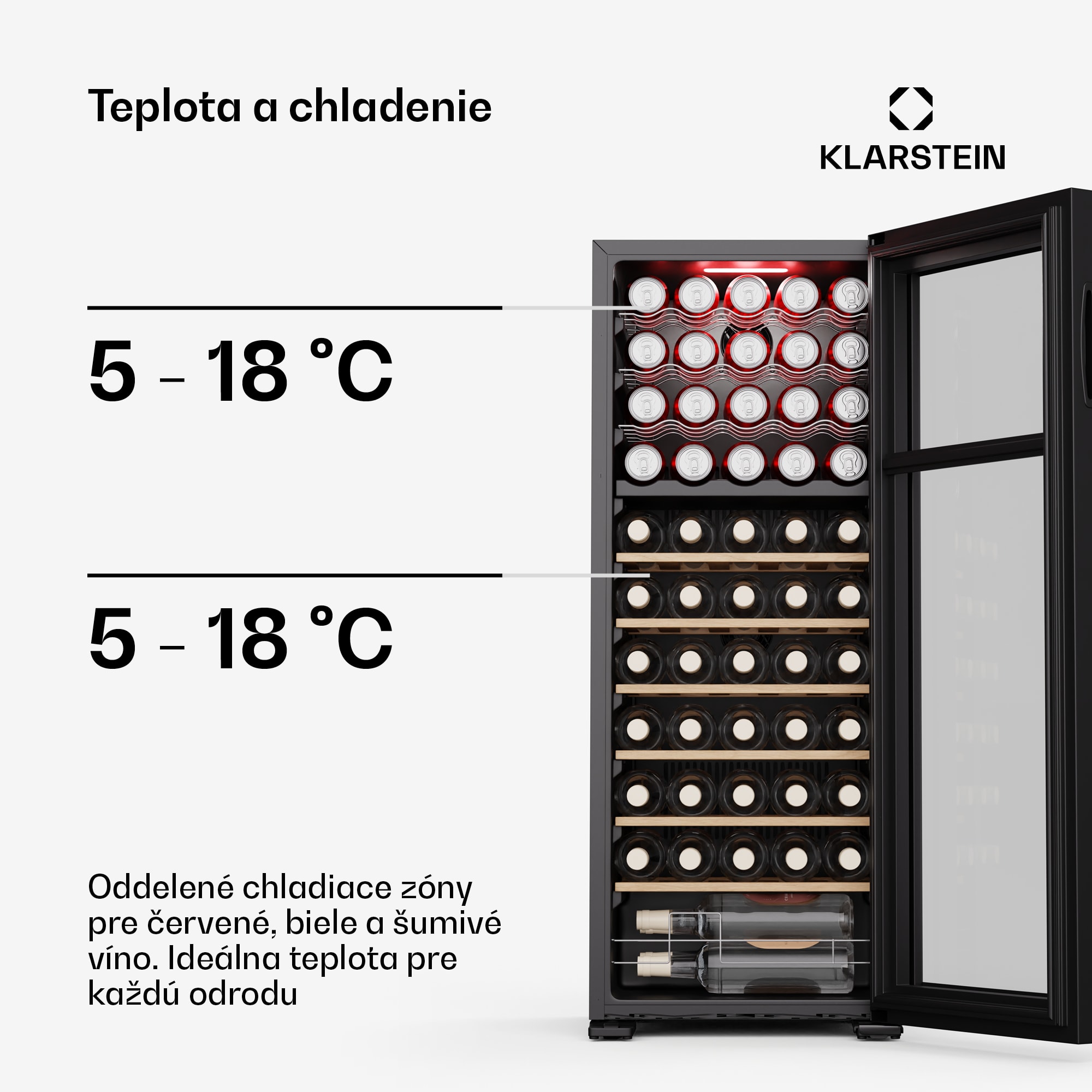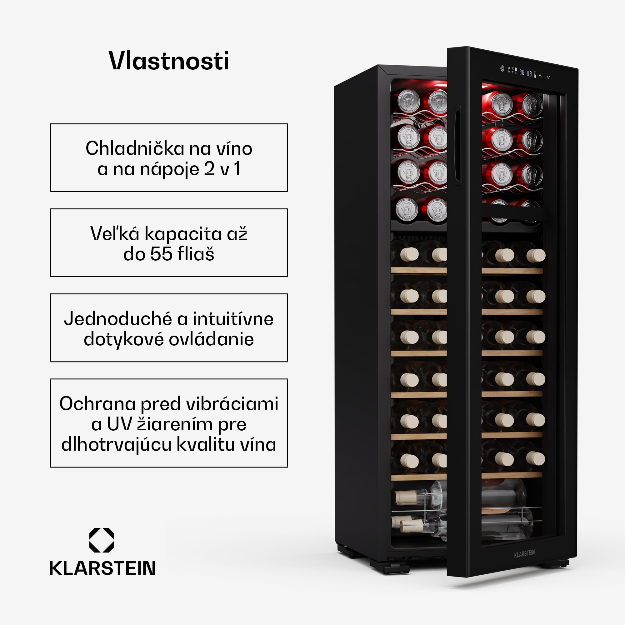 Klarstein Bovella 55 Duo+ chladnička na víno, 2 v 1, 55 fliaš, 2 zóny, 9 políc, Dotykové ovládanie –Kúpiť