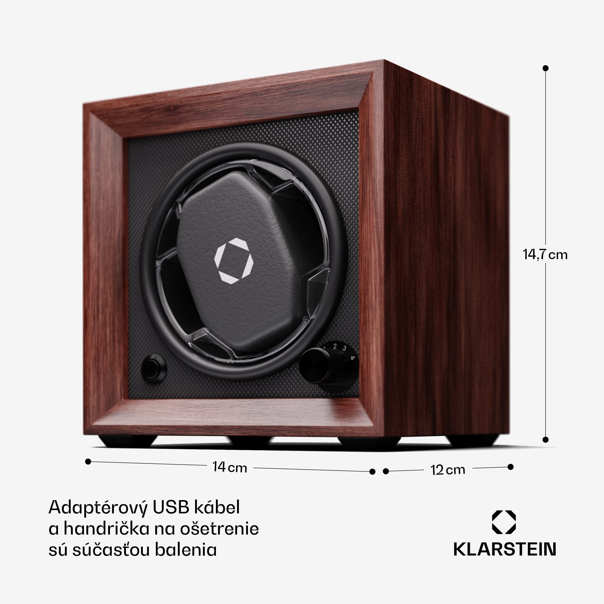 Dokonale tvarované precízne remeselné spracovanie! S naťahovačom hodiniek a stojanom na hodinky Klarstein Brienz 1 budú vaši elegantní spoločníci vždy dobre udržiavaní a pripravení na použitie. Automatické hodinky uložené v zariadení sa nepretržite naťahujú pomocou 4 režimov otáčania, ktoré simulujú pohyb zápästia. K starostlivosti o strojček hodiniek prispieva aj rotácia, ktorá účinne pôsobí proti stuhnutiu olejového mazania. Naťahovač hodiniek Brienz 1 má elegantné puzdro dreveného vzhľadu, ktoré štýlovo zapadne do ambientu každej miestnosti. Štýlové integrované modré osvetlenie LED možno nastaviť pomocou jednoduchého a intuitívneho ovládania. Praktický otočný gombík na nastavenie požadovaného režimu sa nachádza vpravo. Vďaka integrovanému vankúšiku z pamäťovej peny možno do naťahovača ľahko umiestniť hodinky s rôznymi veľkosťami remienkov, ako aj dámske i pánske hodinky. Napájanie sa uskutočňuje prostredníctvom USB kábla, ktorý možno použiť s akýmkoľvek napájacím zdrojom USB, a preto je úplne nezávislý od prevládajúceho typu zásuvky.Vďaka svojim skromným rozmerom a hladkému chodu tichého motorčeka s prevádzkovou hlučnosťou nižšou ako 10 dB možno naťahovač hodiniek jednoducho umiestniť priamo na nočný stolík alebo do iných nehlučných zón.Upozorňujeme, že zobrazené hodinky nie sú súčasťou dodávky.
