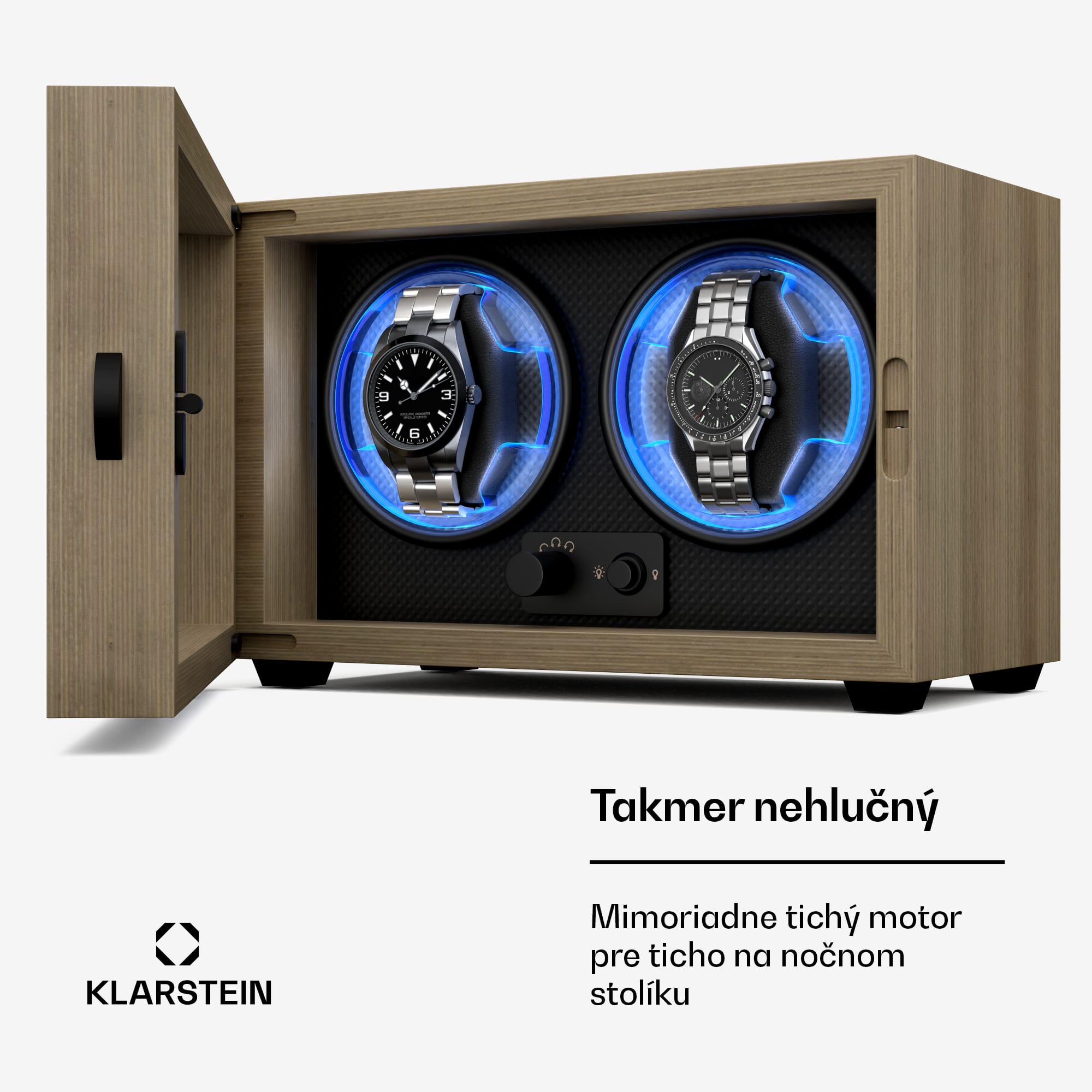 Dokonale tvarované precízne remeselné spracovanie! S naťahovačom hodiniek Klarstein Brienz 2 budú vaši elegantní spoločníci vždy dobre udržiavaní a pripravení na použitie. Automatické hodinky uložené v zariadení sa nepretržite naťahujú pomocou 4 režimov otáčania, ktoré simulujú pohyb zápästia. K starostlivosti o strojček hodiniek prispieva aj rotácia, ktorá účinne pôsobí proti stuhnutiu olejového mazania. Naťahovač hodiniek a stojan na hodinky Brienz 2 má elegantné puzdro dreveného vzhľadu, ktoré štýlovo zapadne do ambientu každej miestnosti. Štýlové integrované modré osvetlenie LED možno nastaviť pomocou jednoduchého a intuitívneho ovládania. Praktický otočný gombík na nastavenie požadovaného režimu sa nachádza vpravo. Vďaka integrovanému vankúšiku z pamäťovej peny možno do naťahovača ľahko umiestniť hodinky s rôznymi veľkosťami remienkov, ako aj dámske i pánske hodinky. Napájanie sa uskutočňuje prostredníctvom USB kábla, ktorý možno použiť s akýmkoľvek napájacím zdrojom USB, takže je úplne nezávislý od prevládajúceho typu zásuvky.Vďaka svojim kompaktným rozmerom a hladkému chodu tichého motorčeka s prevádzkovou hlučnosťou nižšou ako 10 dB možno naťahovač hodiniek jednoducho umiestniť priamo na nočný stolík alebo do iných nehlučných zón.Postarajte sa o svoje hodinky a objednajte si naťahovač hodiniek Klarstein Brienz 2 teraz!Upozorňujeme, že zobrazené hodinky nie sú súčasťou dodávky.
