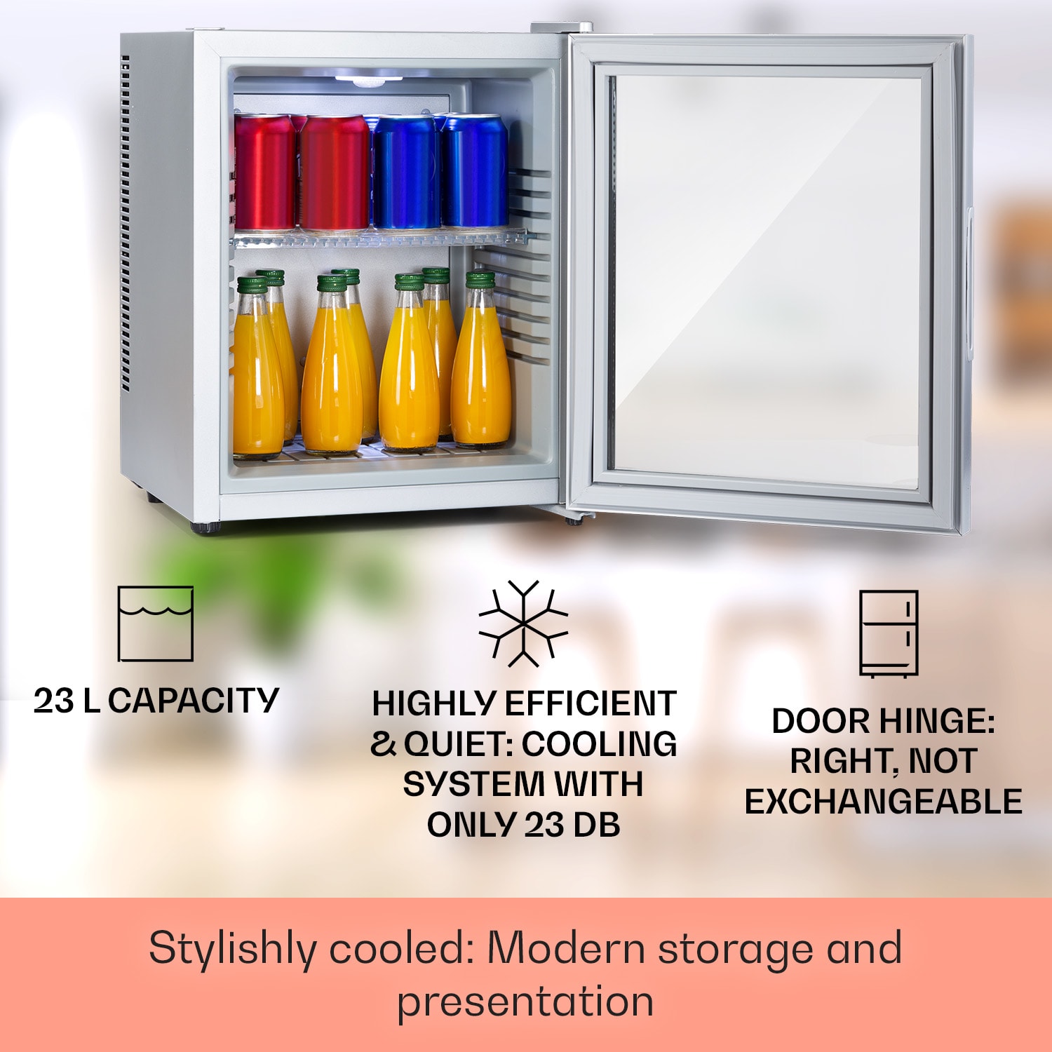 Kompaktná s veľkou úložnou kapacitou: mini-chladnička Klarstein Brooklyn 24 ponúka dostatok priestoru s 24 litrami úžitkového objemu. Možnosť flexibilného usporiadania interiéru vďaka plastovej polici, ktorú možno umiestniť na desiatich úrovniach s rozostupom 2 cm. Na reguláciu chladenia podľa potreby sú k dispozícii 3 stupne od 12 do 18 °C. Prínos pre každú malú domácnosť: mini-chladnička Klarstein Brooklyn 24.