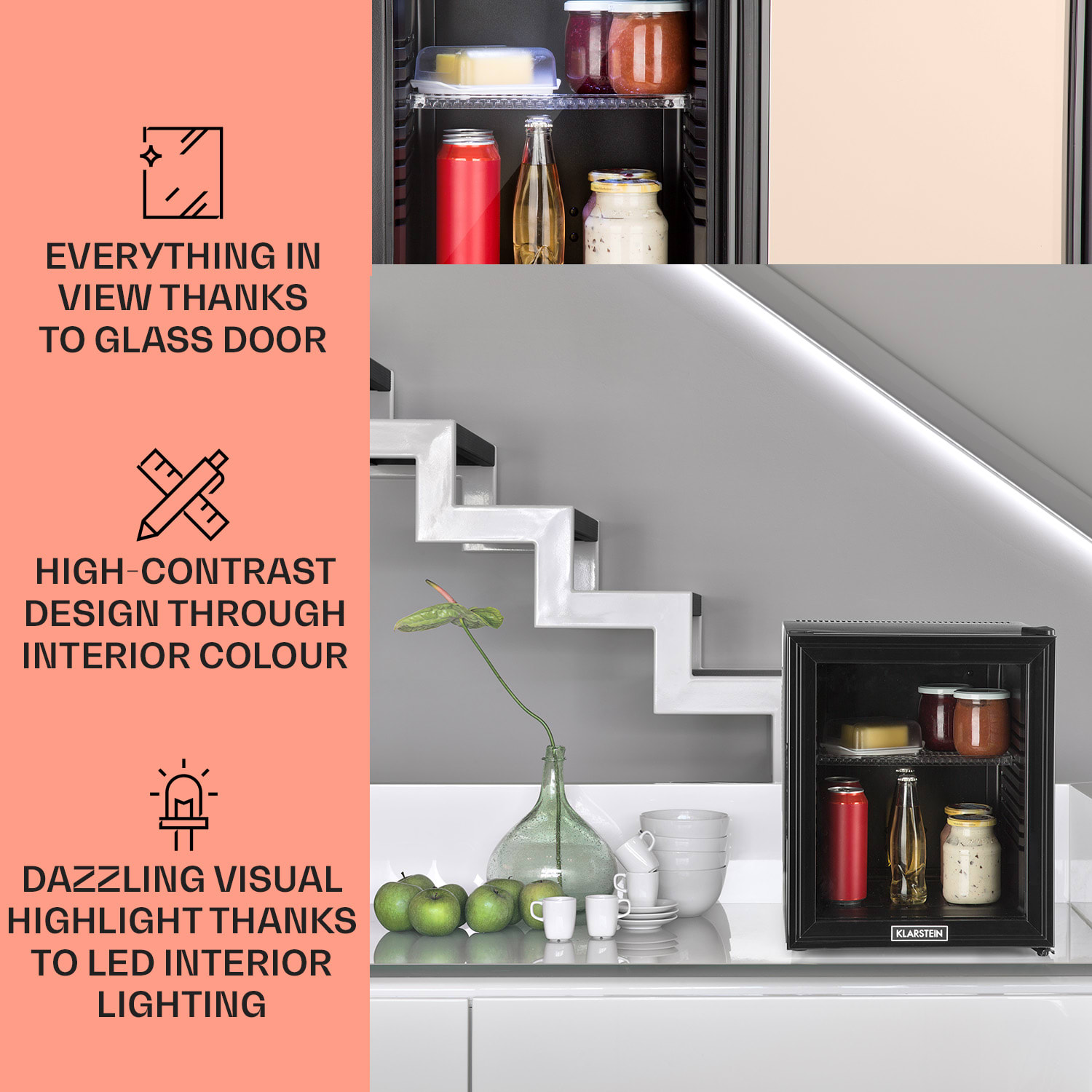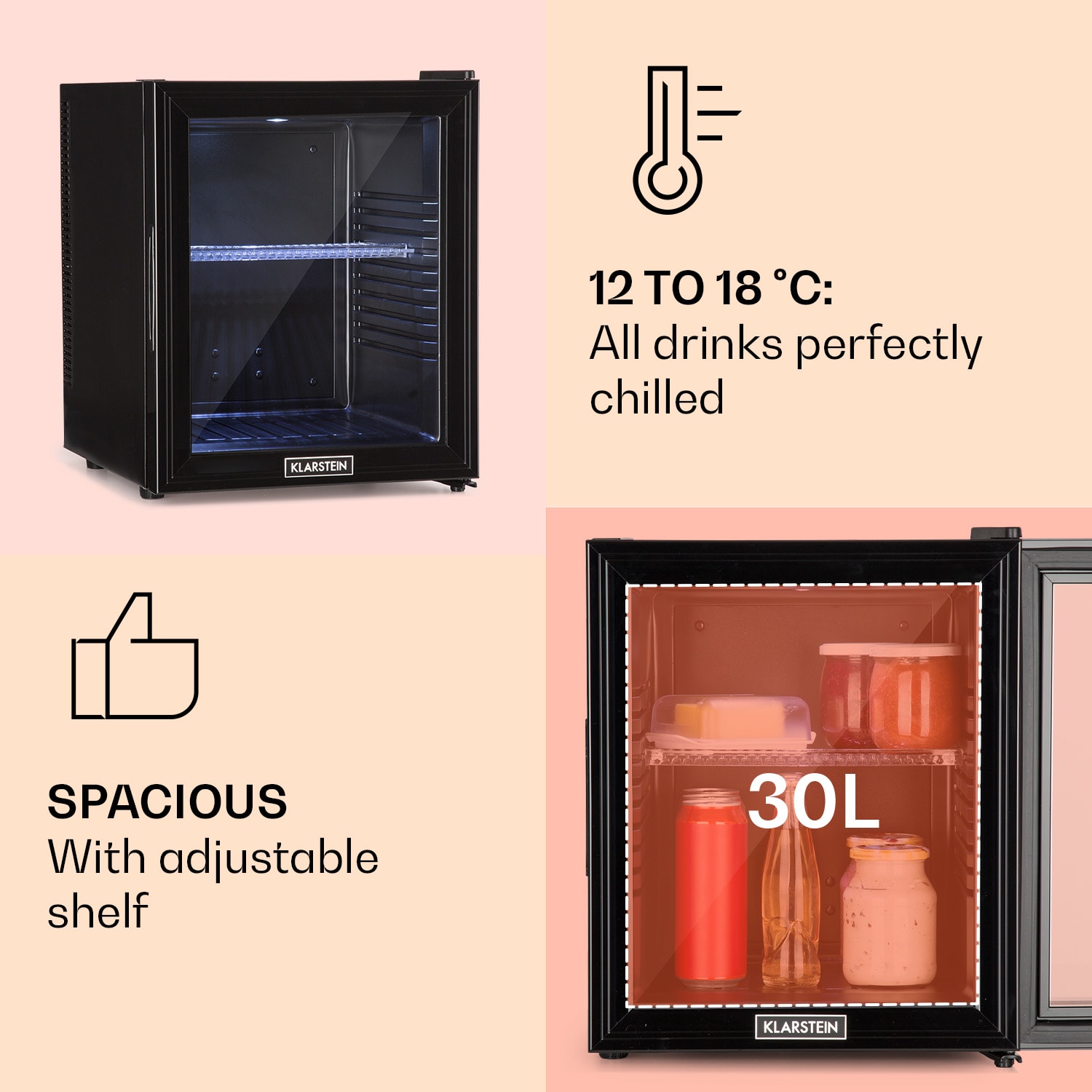 Klarstein Brooklyn 32, mini chladnička, so sklenenými dverami, LED osvetlenie, police –Kúpiť