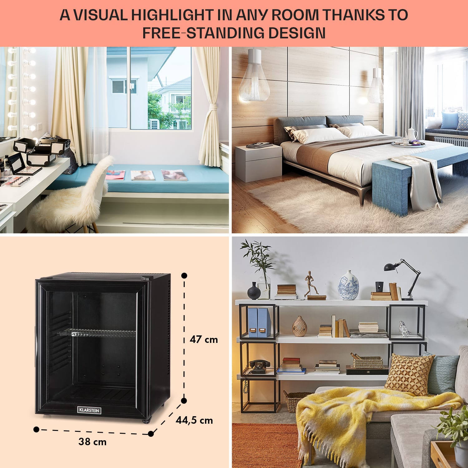 Kompaktná s veľkou úložnou kapacitou: mini-chladnička Klarstein Brooklyn 32 ponúka dostatok priestoru s 32 litrami úžitkového objemu. Na reguláciu chladenia podľa potreby sú k dispozícii 3 stupne od 12 do 18 °C. Brooklyn 32 pôsobí výnimočným dojmom predovšetkým vďaka senzačnému dizajnu: panoramatické sklenené dvere umožňujú neustály výhľad do jej interiéru. Vnútorné LED svetlo tiež spoľahlivo osvetlí uložené potraviny aj po otvorení dvierok.Prínos pre každú malú domácnosť: mini-chladnička Klarstein Brooklyn 32
