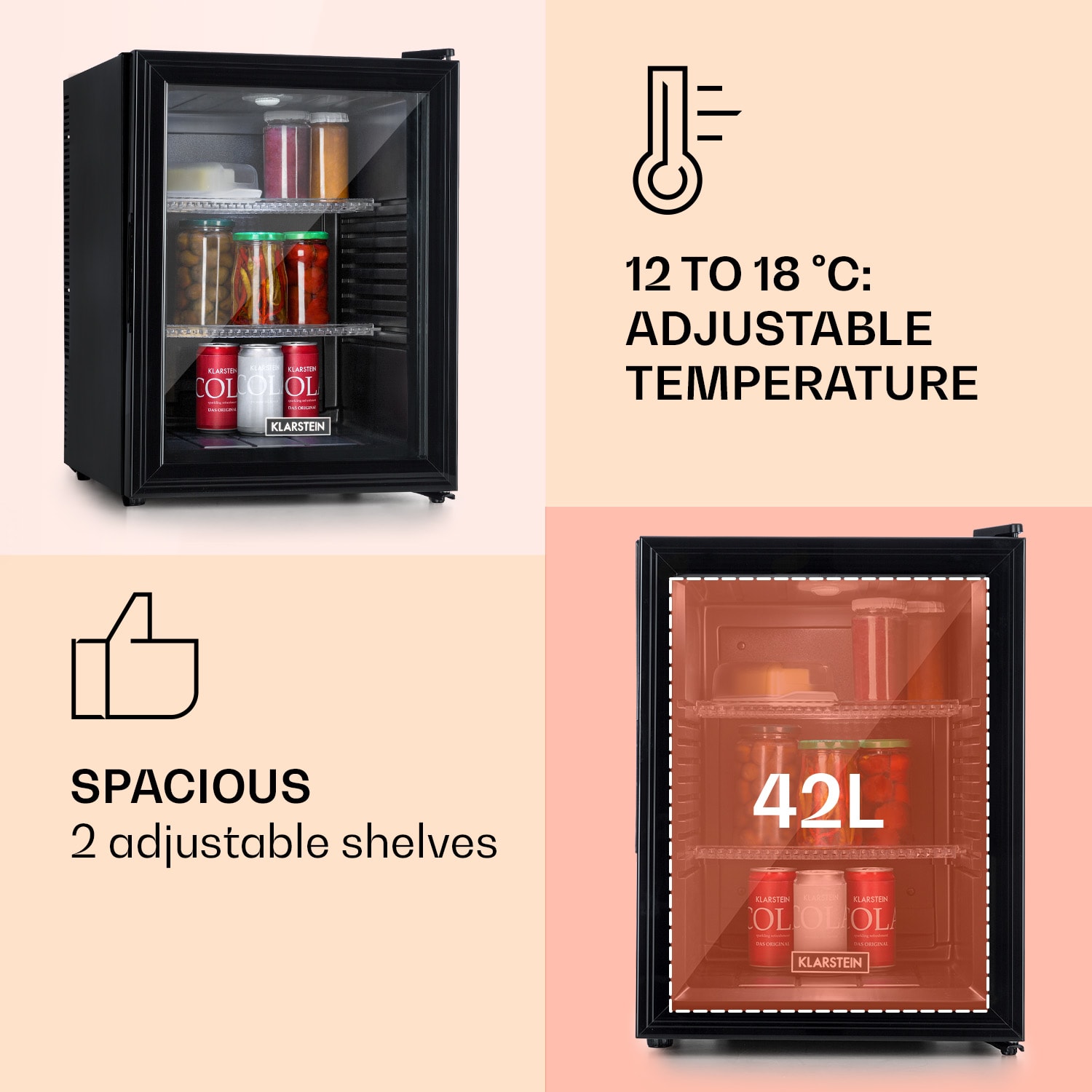 Klarstein Brooklyn 42, mini chladnička, sklenené dvere, LED osvetlenie, police –Kúpiť