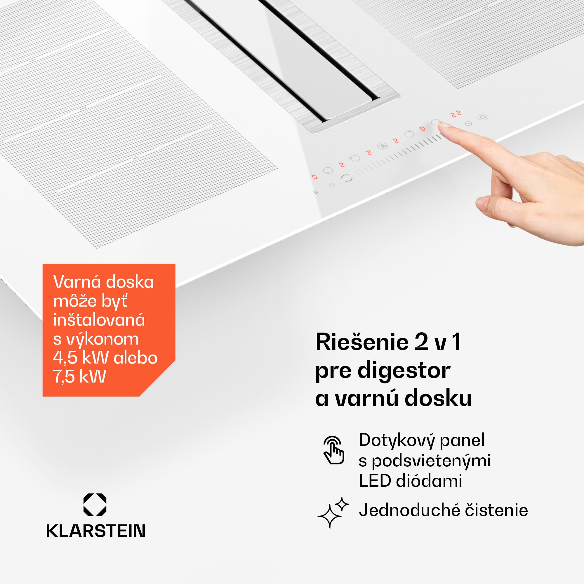 Vitajte v budúcnosti kuchynského dizajnu s Klarstein Chef-Fusion DownAir System. Toto inteligentné riešenie plynule prepája digestor a indukčnú varnú dosku a vytvára tak nielen esteticky príjemný povrch, ale aj hodnotný úložný priestor v horných skrinkách.Klarstein Chef-Fusion DownAir System s výkonným jednosmerným motorom ponúka pôsobivý prietok odsávania 610 m³/h a triedu energetickej účinnosti A. Indukčná varná doska s výkonom 7 200 W a flexi zónou zaručuje maximálny komfort pri varení. Štíhla inštalácia vytvára nielen viac priestoru v nástenných skrinkách, ale zaručuje aj viac priestoru v spodných skriniach pod varnou doskou.Estetiku umocňuje stredová klapka, ktorá dômyselne zakrýva priestor na prívod vzduchu/odsávanie. Digitálne dotykové ovládanie umožňuje bezproblémovú obsluhu, pričom zákazník má možnosť nastaviť celkový výkon systému na 4,5 kW alebo 7,5 kW počas inštalácie – flexibilná možnosť, ktorá vyhovuje individuálnym potrebám varenia.Klarstein Chef-Fusion DownAir System nielenže nahrádza varnú dosku a samostatný digestor, ale vytvára aj výrazne viac priestoru v nástenných skriniach. Je ideálny pre akúkoľvek kuchynskú zostavu, ponúka čistý, moderný povrch a inovatívne riešenie pre moderný dizajn kuchyne.Zažite budúcnosť kuchyne s Klarstein Chef-Fusion DownAir System – tu sa efektivita stretáva s eleganciou a vaša kuchyňa sa premení na oázu funkčnosti a elegancie.Zažite dokonalú symbiózu funkčnosti a dizajnu – objednajte si teraz Klarstein Chef-Fusion Prime DownAir System!Upozornenie: Farba produktu sa môže mierne líšiť od zobrazenia na fotografii.