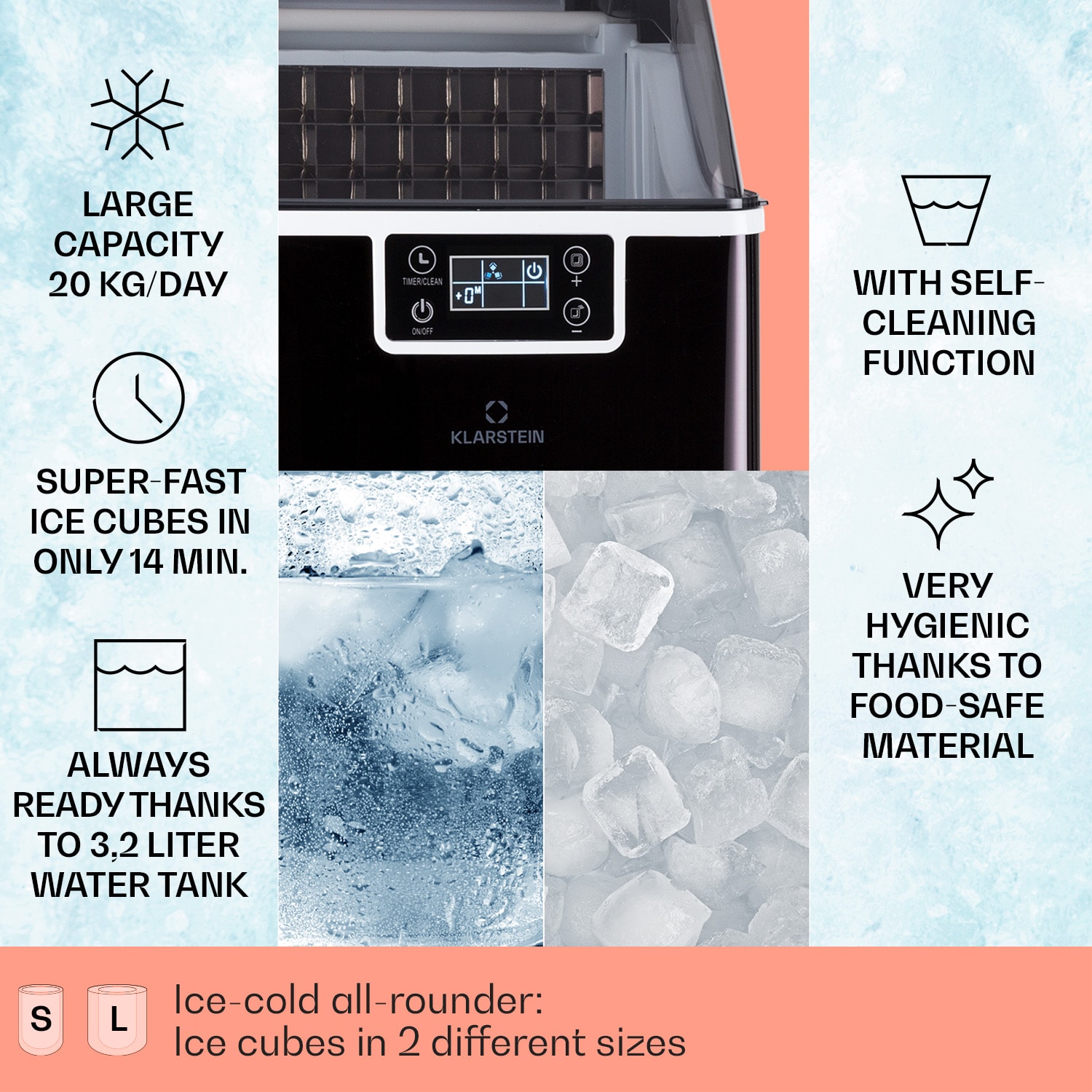 Klarstein Chios, výrobník ľadu, 20 kg/24 h, Auto-Clean, nádrž 3,2 l