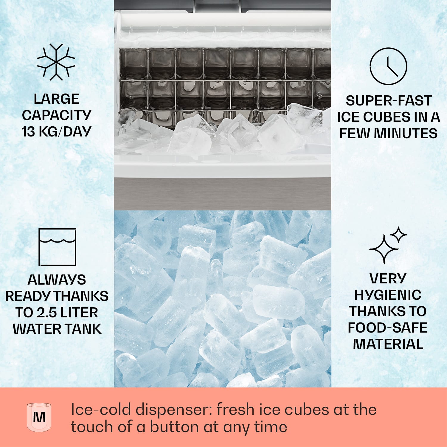 Klarstein Clearcube, výrobník ľadu, 13 kg/24 h, nehrdzavejúca oceľ, čierny