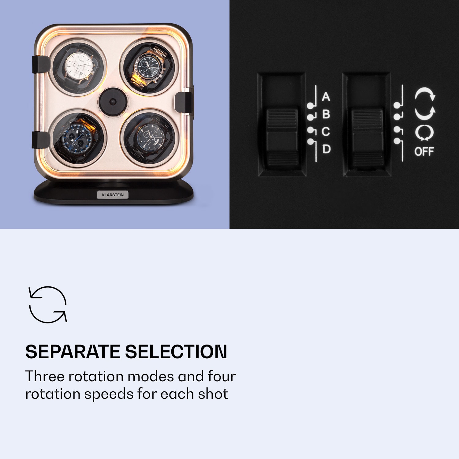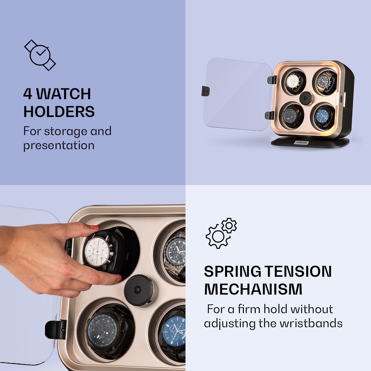 Klarstein Clover, naťahovač na hodinky, 4 hodiniek, 3 otáčania, 4 rýchlosti, modré LED osvetlenie, plastový kryt