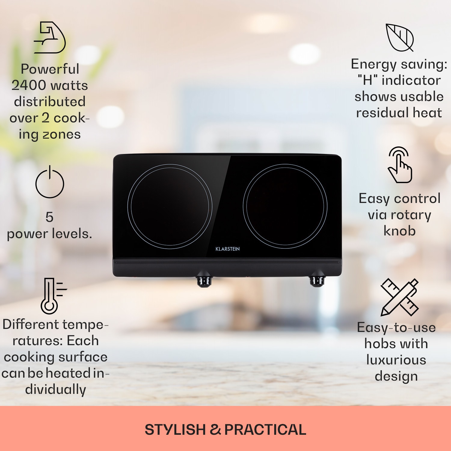Klarstein Cookbuddy, varná doska, 2400 W, 2 platničky, 5 úrovní výkonu, sklokeramika –Kúpiť