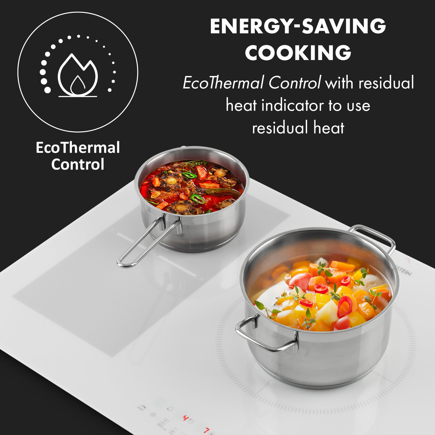 Jednoducho flexibilné varenie: Indukčná varná doska Klarstein Delicatessa 90 Hybrid umožňuje optimálne využitie priestoru s minimálnou spotrebou energie pri varení. Kombinuje pri tom technické inovácie s luxusným vzhľadom a prináša do kuchynskej linky so svojím sklokeramickým povrchom nový lesk.Vstavaná varná doska Klarstein Delicatessa 90 Hybrid ponúka päť varných platní s celkovým výkonom až 7400 W, ktoré sa rozdeľujú na 1 x 2300 W, 2 x 2000 W a 2 x 1500 W na jednotlivých varných plochách – vďaka čomu obsah hrncov a panvíc zovrie v špičkových časoch. Pritom sa zjednocujú obidve ľavé varné zóny do jednej flexi zóny pomocou funkcie VarioHeating: vďaka funkcii rozpoznania veľkosti hrnca sa s maximálnou flexibilitou prispôsobí veľkosti umiestnených hrncov, panvíc alebo kastrólov, a tak sa zohrieva aj veľký kuchynský riad, ktorý sa nezmestí na jednu varnú plochu. Na jednej strane zariadenie Delicatessa 90 Hybrid naozaj využíva len energiu, ktorá je vhodná pre daný hrniec, a na druhej strane umožňuje používať takmer akúkoľvek veľkosť hrnca alebo panvice. Výkon jednotlivých plôch a flexi plochy je možné ovládať samostatne a majú k dispozícii funkciu ThermoBoost, ktorá zvyšuje výkon s cieľom rýchleho zohriatia na 3000 W. Sklokeramická varná doska Klarstein Delicatessa 90 Hybrid sa jednoducho ovláda pomocou integrovaného dotykového panelu SenseControl s Touch-to-slide ovládaním výkonu posunutím prsta po ploche a pomocou digitálneho displeja. Takže ani gombíky a regulátory nenarúšajú povrch kuchynskej linky. Okrem výkonu sa dá naprogramovať aj časovač až na 99 minút pre každú varnú dosku. Časovač buď vypne varnú dosku po uplynutí nastaveného času, alebo vydá akustický signál.Aby počas varenia všetko prebiehalo hladko, vstavaný sporák Delicatessa 90 Hybrid má širokú škálu poistiek: Ochrana proti prehriatiu s automatickým vypnutím sa aktivuje, ak je varná platňa príliš horúca. Indikátor zvyškového tepla princípu EcoThermal Control Vás informuje nielen o tom, či sú vypnuté varné plochy stále horúce. Umožňuje tiež varenie pomocou zvyškového tepla na úsporu energie. Funkcia ThermalRecall si pamätá nastavenú teplotu a použije sa, ak by bol proces varenia krátkodobo prerušený a neskôr by sa v ňom malo pokračovať. Okrem toho môže byť aktivovaný detský zámok, aby sa zabránilo náhodným zmenám nastavení varenia.Opticky indukčná varná doska Klarstein Delicatessa 90 Hybrid presviedča svojím ľahko udržiavateľným sklokeramickým povrchom, ktorý skúsene uvádza indukčný sporák na scénu. Týmto spôsobom sa varná doska hravo začlení do každej kuchynskej linky – či už klasickej, alebo modernej. Materiál, potrebný na inštaláciu do pracovnej dosky, je priamo súčasťou balenia.Upozornenie: Farba produktu sa môže mierne líšiť od zobrazenia na fotografii.