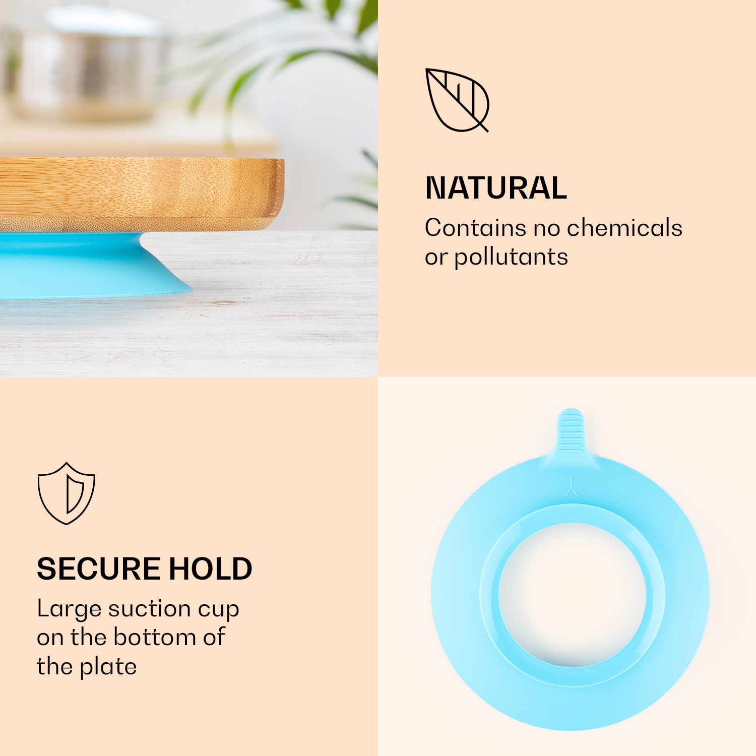 Klarstein Detská jedálenská súprava, bambusový tanier a lyžička, 250 ml, vrátane prísavky, 18 × 18 cm