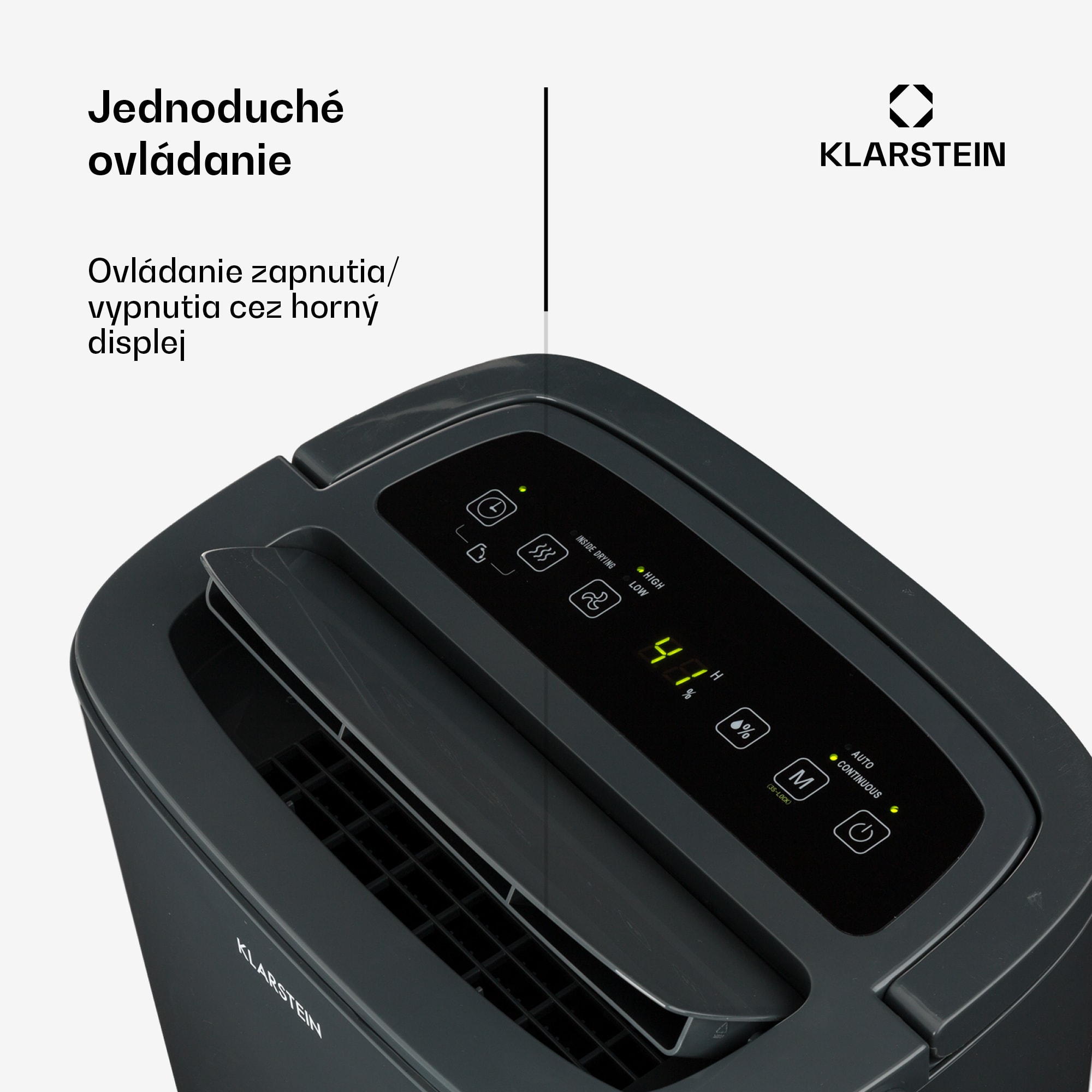 Jednoduchá cesta k ideálnej vlhkosti: Odvlhčovač vzduchu Klarstein DryFy 20 vysuší vlhké miestnosti po stavbe, renovácii a škodách spôsobených vodou alebo jednoducho reguluje vlhkosť v kuchyni, kúpeľni alebo spálni. So správnou vlhkosťou vzduchu sa budete cítiť oveľa lepšie: odvlhčovač vzduchu Klarstein DryFy 20 v okamihu odstráni vlhký vzduch a postará sa o uvoľnené dýchanie v kuchyni, kúpeľni alebo spálni a umožní aj rýchle vysušenie po stavebných alebo renovačných prácach. Vďaka vysokému výkonu 420 W a prietoku vzduchu 230 m³ za hodinu odsaje zo vzduchu až 20 litrov vlhkosti za deň – odvlhčovač Klarstein DryFy 20 je ideálny pre miestnosti s rozlohou 35 až 50 m². Vďaka zabudovanému nylonovému filtru okamžite odstráni prach zo vzduchu a dodatočne zlepší klímu. Veľká 4,5-litrová nádrž zhromažďuje nahromadenú vlhkosť a dá sa ľahko vyprázdniť. Jednoduchá a praktická obsluha: DryFy 20 naprogramujete na svoje úlohy cez displej na hornej strane pomocou niekoľkých tlačidiel. Vďaka funkcii DrySelect je možné nastaviť cieľovú vlhkosť presne podľa potreby. Okrem toho je k dispozícii časovač a možnosť voľby medzi výkonným a tichým režimom, čo z neho robí skutočne tichý odvlhčovač vzduchu. S takýmto výkonom sa DryFy 20 nepotrebuje skrývať: jeho vonkajší tvar ho tiež odlišuje. Elegantné línie v kombinácii s nádherným vzorom voštín robia z odvlhčovača atraktívny vizuálny prvok, ktorý účinne dopĺňa vybavenie aj v obývacej alebo konferenčnej miestnosti. Zníženie vlhkosti je jednoduchšie ako kedykoľvek predtým. Odvlhčovač vzduchu Klarstein DryFy 20 zabezpečuje ten najlepší vzduch na dýchanie.