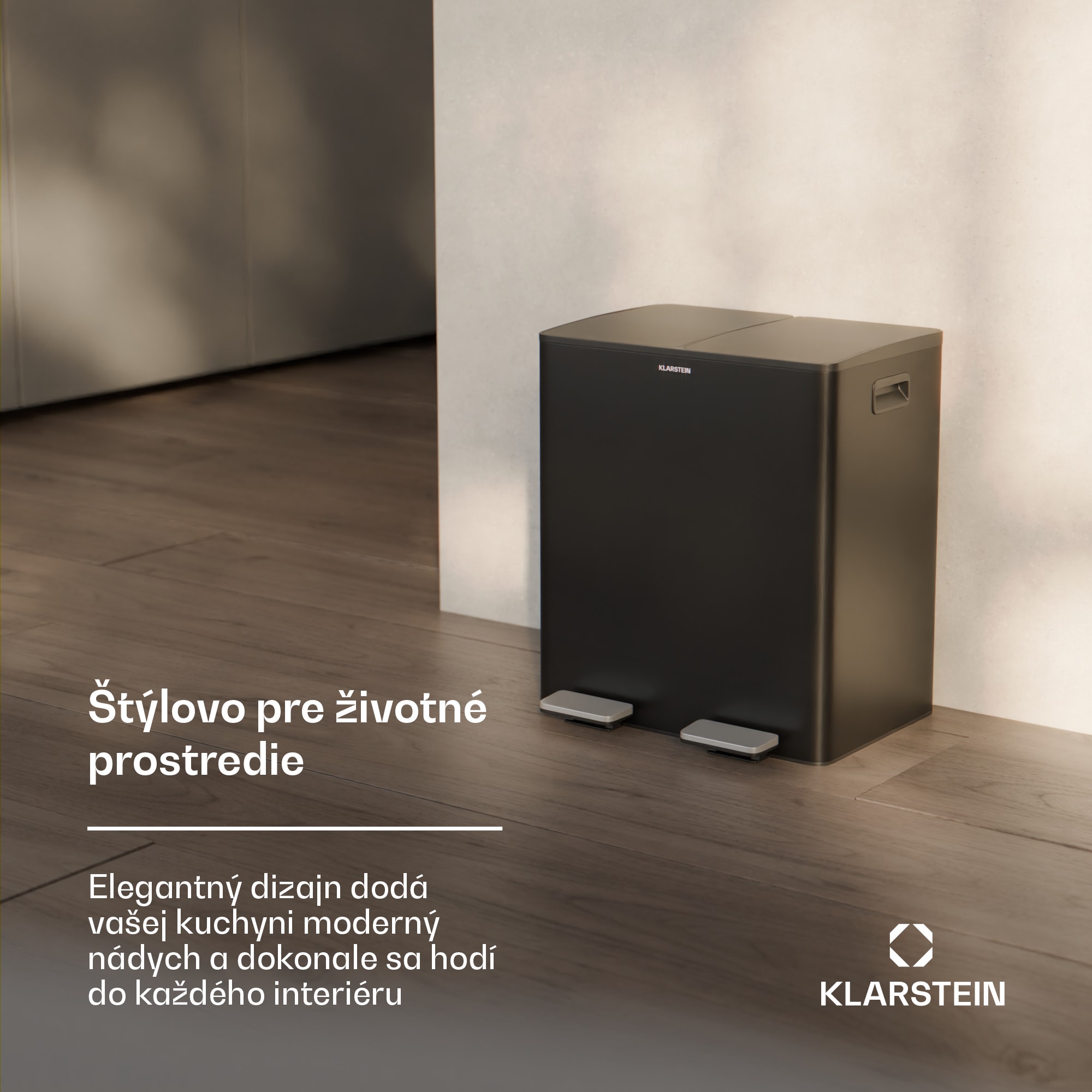 Odpadkový kôš EcoVista s kompostérom je dokonalým riešením pre ekologicky zmýšľajúce domácnosti, ktoré hľadajú efektívny spôsob organizácie a likvidácie odpadu. Tento odpadkový kôš s moderným dizajnom a inovatívnymi funkciami ponúka nielen praktické triedenie odpadu, ale aj jednoduché kompostovanie organického odpadu.Odpadkový kôš má dva oddelené koše s celkovým objemom 40 litrov (20 litrov na kôš) a vyberateľný zásobník na kompost s objemom 3 litre. Tieto koše vám umožnia ľahko separovať odpad a rozhodnúť, ktorý odpad patrí do ktorého koša. Koše sú vybavené inovatívnym mechanizmom so zatváraním Soft-Close, ktorý zaručuje tiché otváranie a zatváranie bez nepríjemného rachotu.Špeciálnou funkciou je odnímateľný kompostovací zásobník, ktorý umožňuje separovaný zber a kompostovanie organického odpadu, ako sú šupky z ovocia a zeleniny. Kompostovací zásobník sa dá ľahko vybrať a vyčistiť.Moderný dizajn odpadkového koša EcoVista s kompostovacím zásobníkom dokonale zapadne do každého kuchynského interiéru a dodá vašej domácnosti štýlový nádych. Kôš na odpadky je vyrobený z vysokokvalitnej nehrdzavejúcej ocele, je robustný, odolný a ľahko sa čistí.