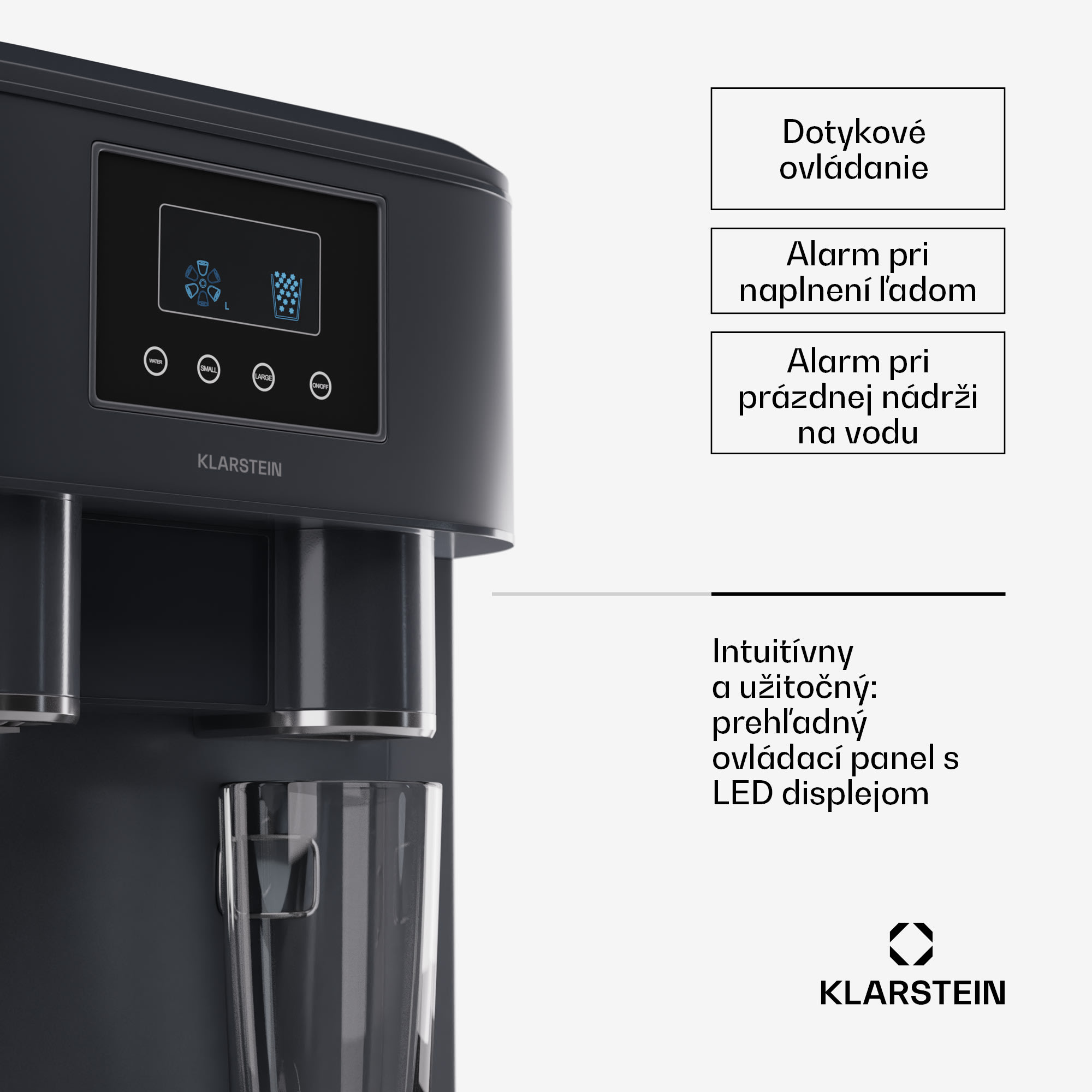 Vychutnávajte si osviežujúce ľadové nápoje po celý deň: výrobník kociek ľadu Klarstein Eiszeit Crush s tromi funkciami a dvoma veľkosťami kociek ľadu to umožňuje.Výkonný prístroj na výrobu kociek ľadu Eiszeit Crush dokáže vyrobiť 15 – 18 kg kociek ľadu za deň. Vďaka tomu je ideálny na použitie doma, na večierkoch alebo záhradných párty. Výrobník ľadu sa ľahko a pohodlne obsluhuje pomocou ovládacieho panela s tlačidlami pod prehľadným LCD displejom, môžete si vybrať aby produkoval malé, alebo veľké kocky ľadu. Vďaka trom rôznym funkciám slúži Eiszeit Crush nielen na prípravu kociek ľadu, ale – ako už názov napovedá – ponúka aj drvený ľad a ľadovú vodu. Veľkorysá nádrž na vodu s objemom 1,8 litra a nádoba na ľad s kapacitou 600 g sú k dispozícii na prípravu ľubovoľného množstva ľadových nápojov. Voda sa naleje ručne alebo prístroj pripojíte ku kohútiku pomocou dodanej hadice. Ak je zásobník na ľad plný alebo je hladina vody príliš nízka, výrobník kociek ľadu vydá výstražný zvuk, aby ste mohli rýchlo reagovať. Po použití sa chuťovo neutrálne puzdro s prednou časťou z nehrdzavejúcej ocele ľahko čistí a nadčasový dizajn sa hodí do každého prostredia. Čas na mrazivú sviežosť: S výrobníkom kociek ľadu Klarstein Eiszeit Crush si môžete vychutnať skvelé nápojové kreácie kedykoľvek a kdekoľvek.