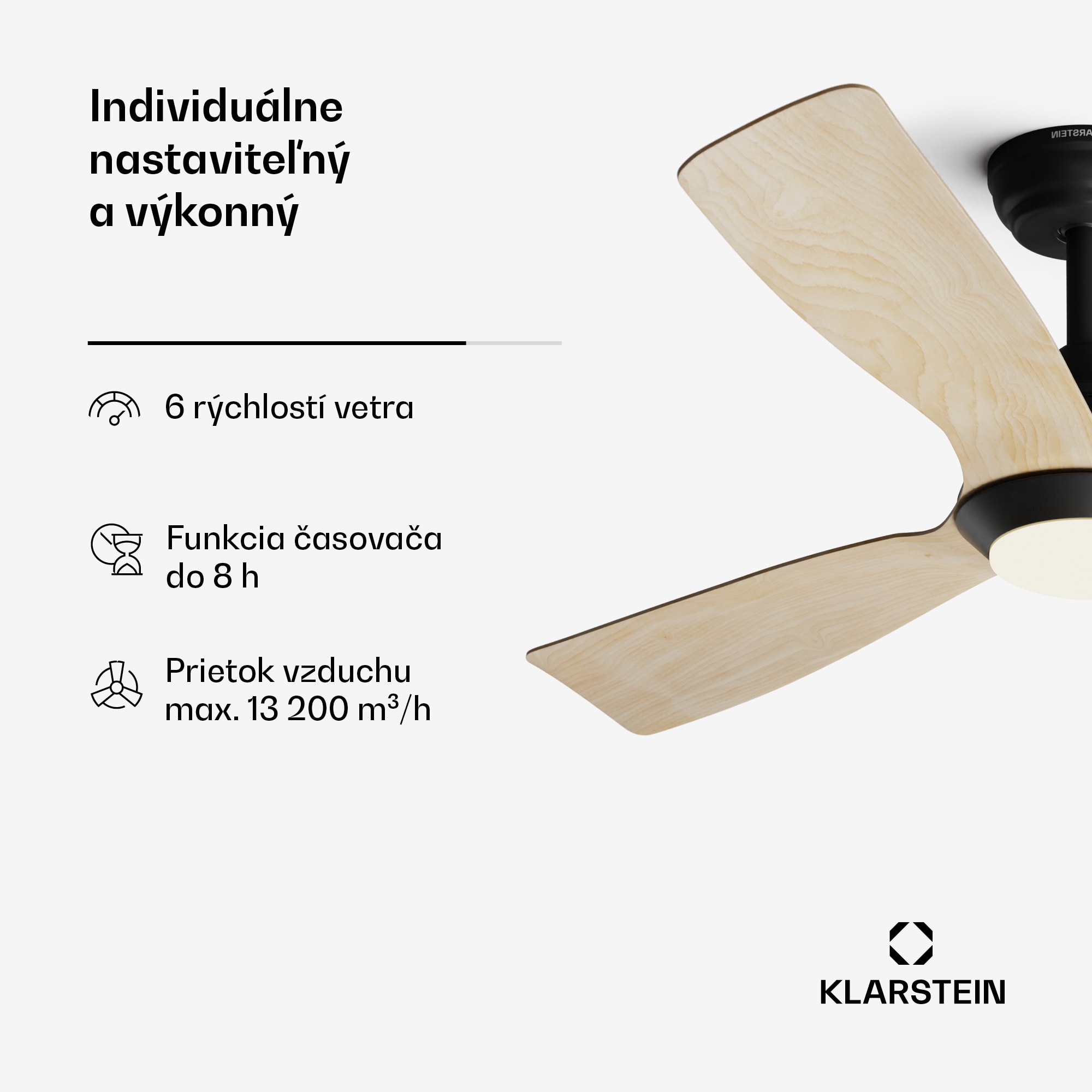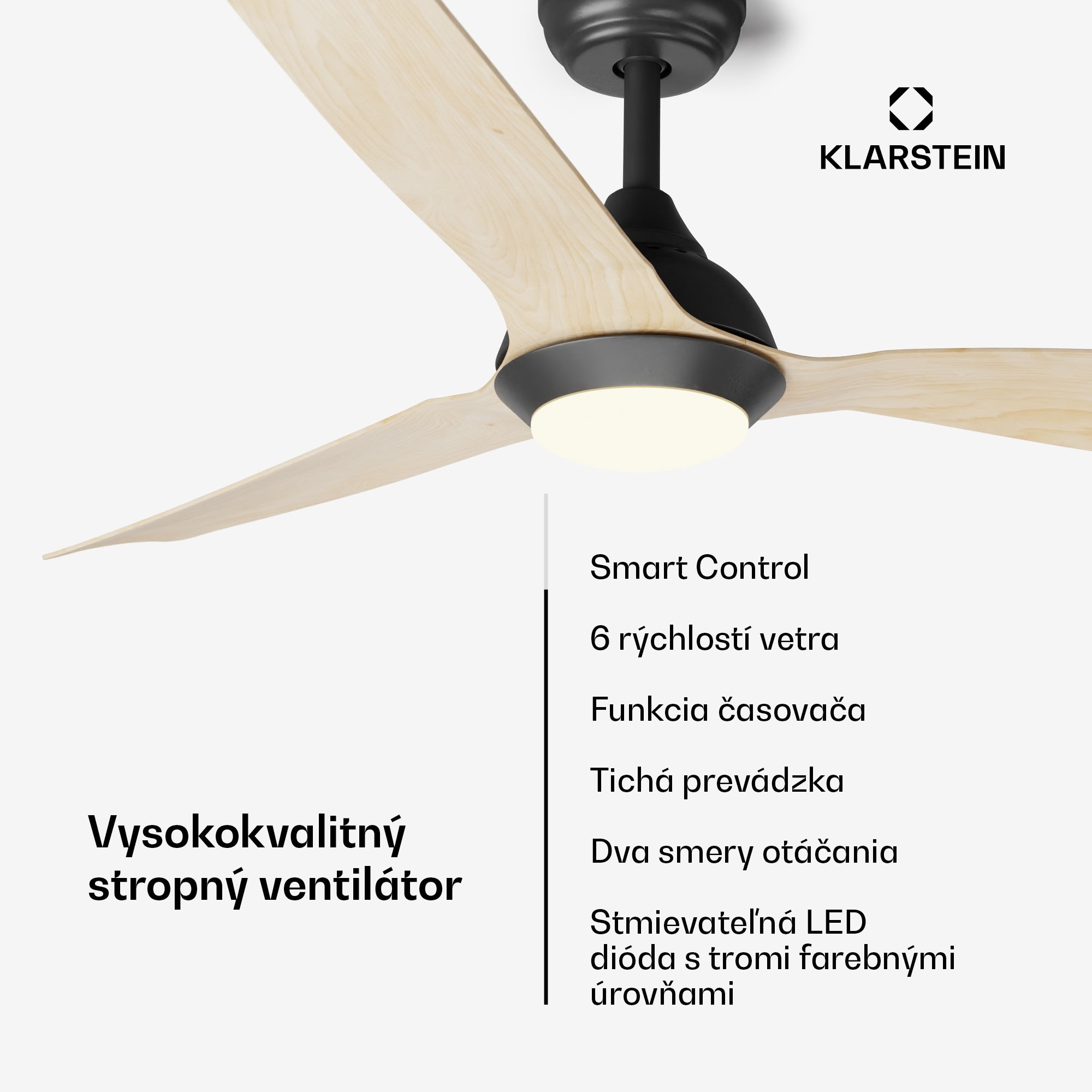Zažite dokonalú symbiózu moderného dizajnu a inovatívnej technológie so  stropným smart ventilátorom   Klarstein  Fiji Flow. Tento  smart ventilátor  s pôsobivým priemerom 132 cm nielenže zabezpečuje príjemnú cirkuláciu vzduchu, ale integruje aj inteligentné funkcie pre maximálne pohodlné ovládanie.Tichý jednosmerný motor s inteligentným jadrom s guľôčkovými ložiskami umožňuje presné nastavenie cirkulácie vzduchu a zároveň je o 80 % energeticky účinnejší ako bežné ventilátory so striedavým motorom. Vďaka šiestim rôznym úrovniam rýchlosti si môžete vybrať dokonalú cirkuláciu vzduchu – bez rušivého hluku, dokonca aj v spálni.Inteligentné funkcie  smart ventilátora   Klarstein  FijiFlow vám umožnia pohodlne ovládanie odkiaľkoľvek vo vašej domácnosti – či už diaľkovým ovládačom (s držiakom na stenu), hlasovým príkazom alebo pomocou inteligentnej aplikácie. Vďaka 6 rýchlostiam vetra a časovaču (1/3/8 hodín) môžete prispôsobiť nastavenia a dokonca aktivovať automatický režim spánku.Letný a zimný režim umožňujú celoročnú prevádzku. V lete zabezpečuje Fiji Flow cirkuláciu chladného vzduchu smerom nahor, a tým príjemne ochladzuje klímu v miestnosti. V zimnom režime účinne rozvádza teplý vzduch zhromaždený pod stropom smerom nadol, čím pomáha znižovať náklady na vykurovanie.Ventilátor má LED svietidlo, ktoré z neho robí praktické hybridné zariadenie. Dosiahnite osvetlenie a dokonalú atmosféru vo svojom dome tým najúspornejším a najefektívnejším spôsobom. Vyberte si z 3 dostupných farieb a stlmte intenzitu svetla.Inštalácia je jednoduchá vďaka premyslenému dizajnu a možno ju dokončiť za hodinu bez potreby drahého elektrikára.Vyskúšajte  smart stropný ventilátor   Klarstein  Fiji Flow – dokonalá kombinácia moderného štýlu a inteligentnej technológie pre celoročnú pohodovú klímu v interiéri.