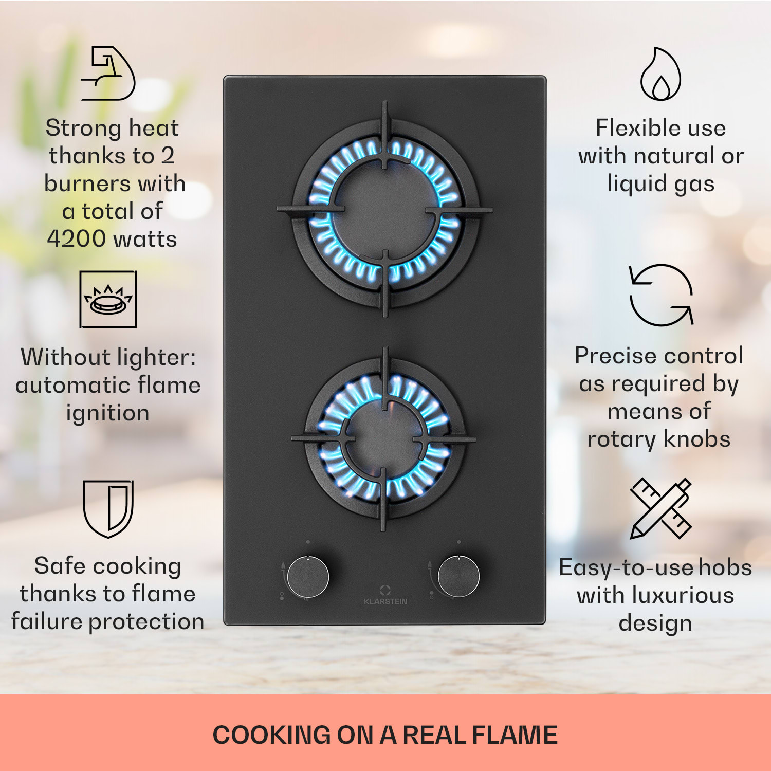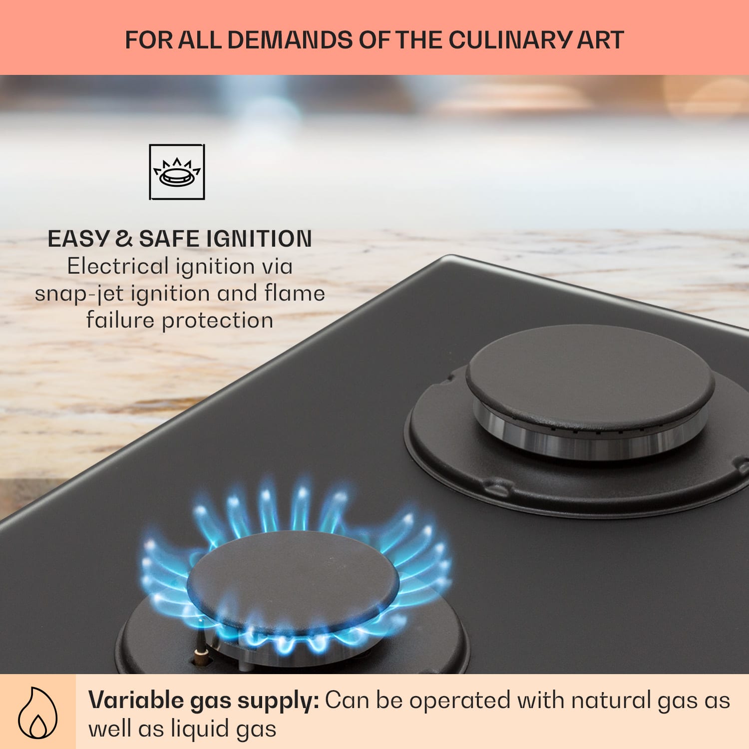 Každý, kto veľa varí, uprednostňuje prípravu jedál na plynovom sporáku. Plyn je nielen účinnejší a šetrnejší k životnému prostrediu, ale je aj oveľa lepšie kontrolovateľný, a teda praktickejší na varenie ako elektrina. Plynová varná doska Firetale od Klarstein teraz prináša túto možnosť do každej kuchyne.Priestorovo úsporná varná doska Firetale od Klarstein má dva hliníkové horáky s výkonom 2,4 kW a 1,8 kW. Rovnomerne rozvádzajú teplo v strede a na okrajoch hrncov alebo panvíc, takže sa všetko dokonale uvarí a prívod tepla možno kedykoľvek okamžite regulovať pomocou jednoduchých otočných ovládačov. Rošt z masívnej liatiny je vhodný na skoro všetky druhy riadu a perfektne sedí nad plameňmi a bráni prevráteniu. Oheň môžete ľahko a bezpečne zapáliť bez zápaliek alebo zapaľovača: Plynový plameň sa jednoducho zapaľuje pomocou SnapJetIgnition a ochrana proti poruche plameňa uzavrie prívod plynu do horáka, ak by plameň z akéhokoľvek dôvodu zlyhal.Varenie so všetkými výhodami plynovej varnej dosky: plynová varná doska Firetale od Klarstein presvedčí komfortom varenia a ušľachtilým dizajnom s pieskovaným skleneným povrchom!