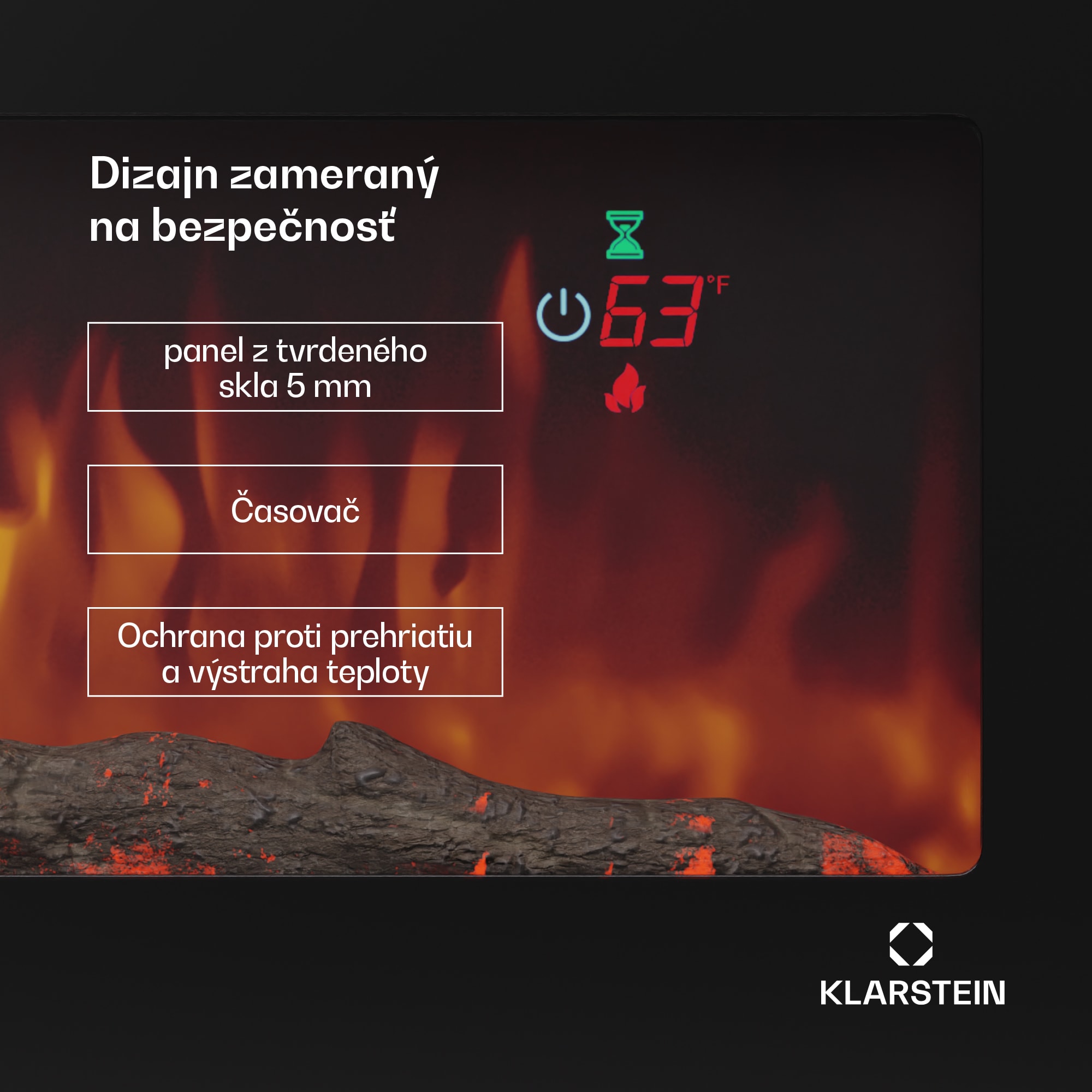 Funkčná dekorácia na stenu trochu iného druhu: s elektrickým krbom Klarstein Galeras 178 obohatíte svoj domov o prekrásny a zároveň hrejúci nástenný krb. Stlačením tlačidla na praktickom diaľkovom ovládači môžete nechať plamene krbu Galeras 178 žiariť v rôznych farbách a jasoch. Integrovaný termostat, ktorý sa dá nastaviť na 16 až 30 °C, sa postará o príjemnú teplotu. Pomocou programovateľného týždenného časovača môžete nastaviť individuálne časy vykurovania a nechať sa privítať útulným teplom a inšpiratívnymi farbami. Nástenný krb Galeras 178 sa vďaka svojmu jednoduchému dizajnu perfektne hodí do každého obytného prostredia. Elektrické krby na stenu sú ideálnym riešením pre moderné bývanie.