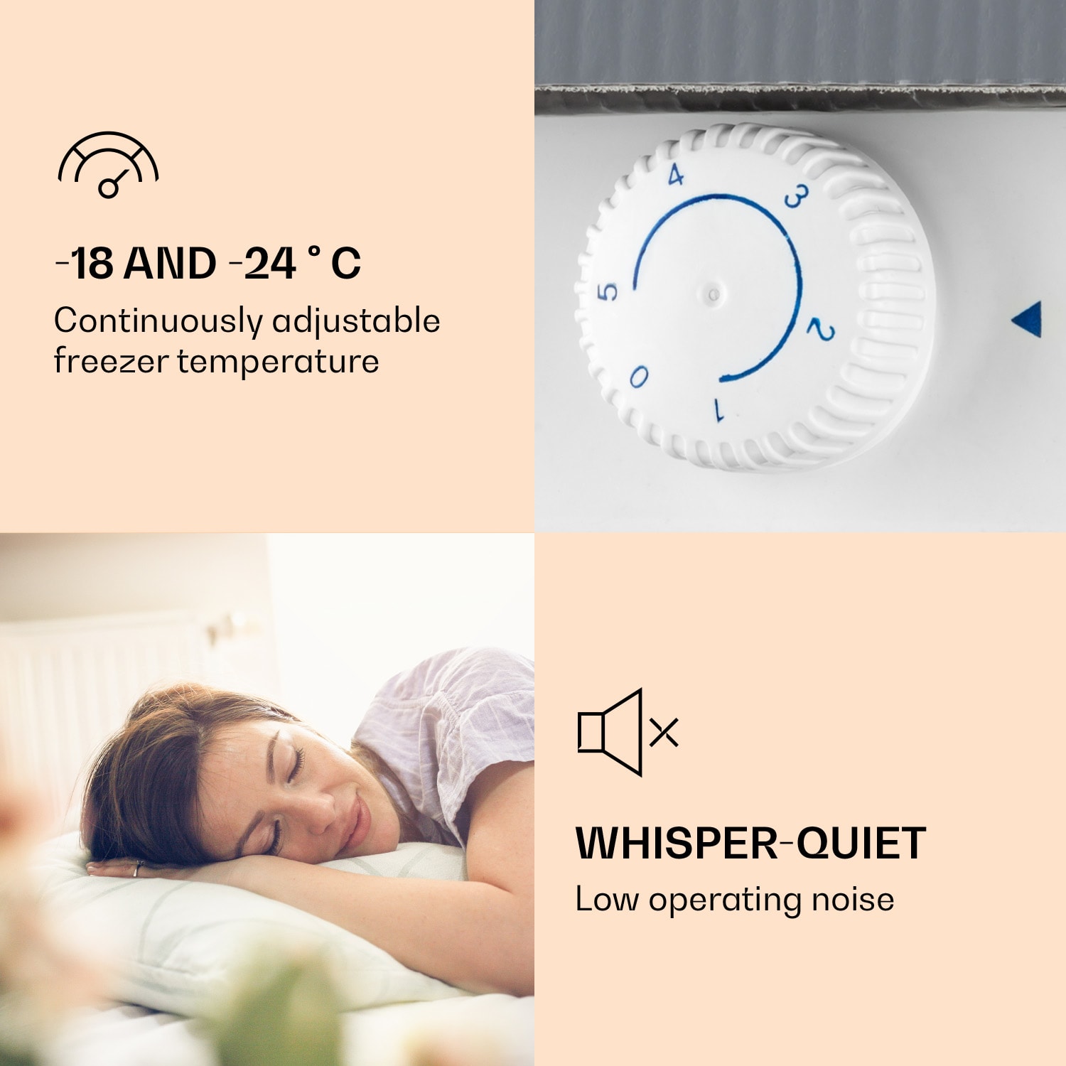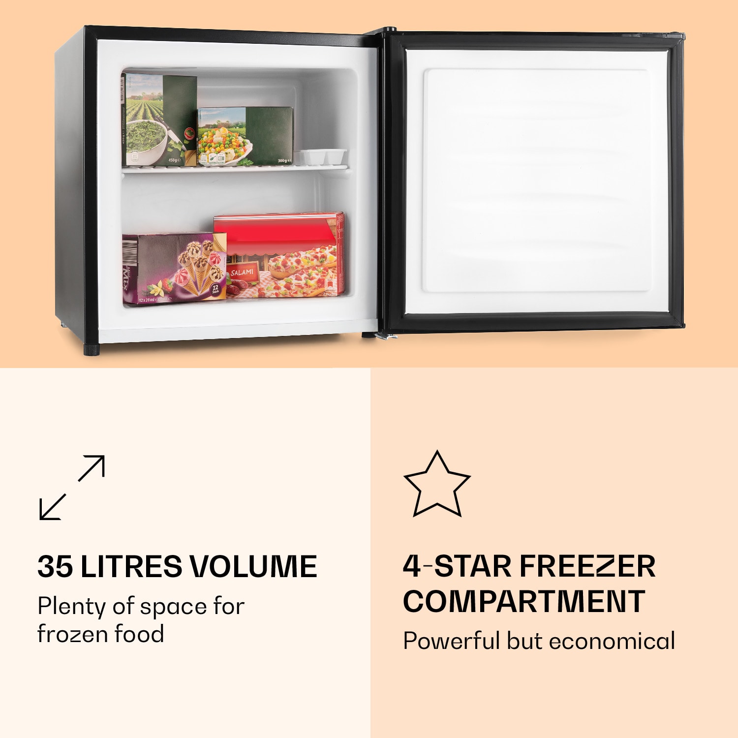 Mrazené potraviny môžete optimálne skladovať, aj keď máte málo miesta: s mraziacim boxom Klarstein Garfield sa to dá. V mini mrazničke môžete dokonale skladovať potraviny, najmä v malých domácnostiach, v jednoizbových alebo spoločných bytoch – zaujme aj svojím jednoduchým, ale moderným dizajnom. Výkon mrazenia môžete nastaviť medzi -18 a -24 °C pomocou plynule meniteľného ovládacieho gombíka na zadnej strane zariadenia. Napriek nízkej spotrebe a kompaktným rozmerom dokáže mraznička v tvare kocky Garfield od Klarstein zmraziť približne 1,8 kg potravín za 24 hodín pri nízkej hlučnosti.