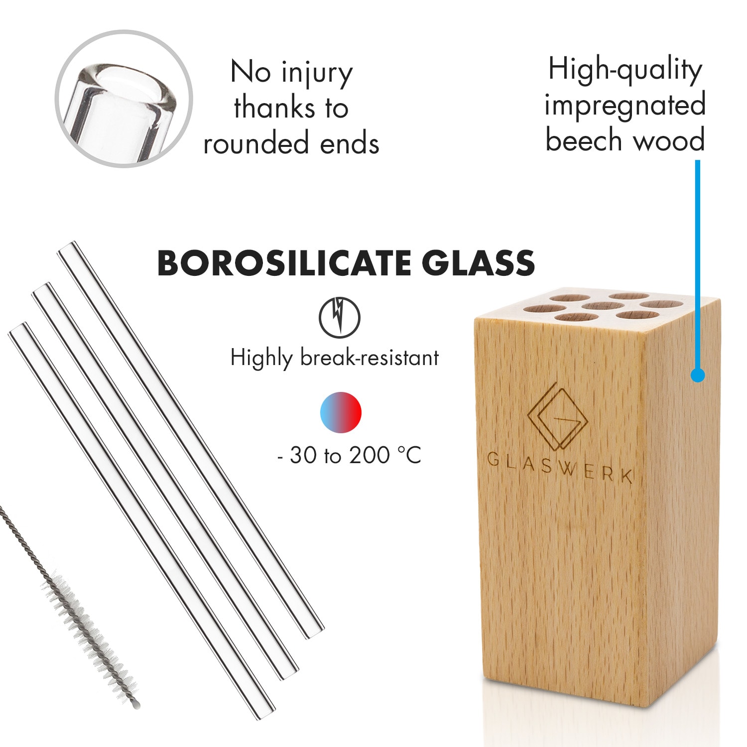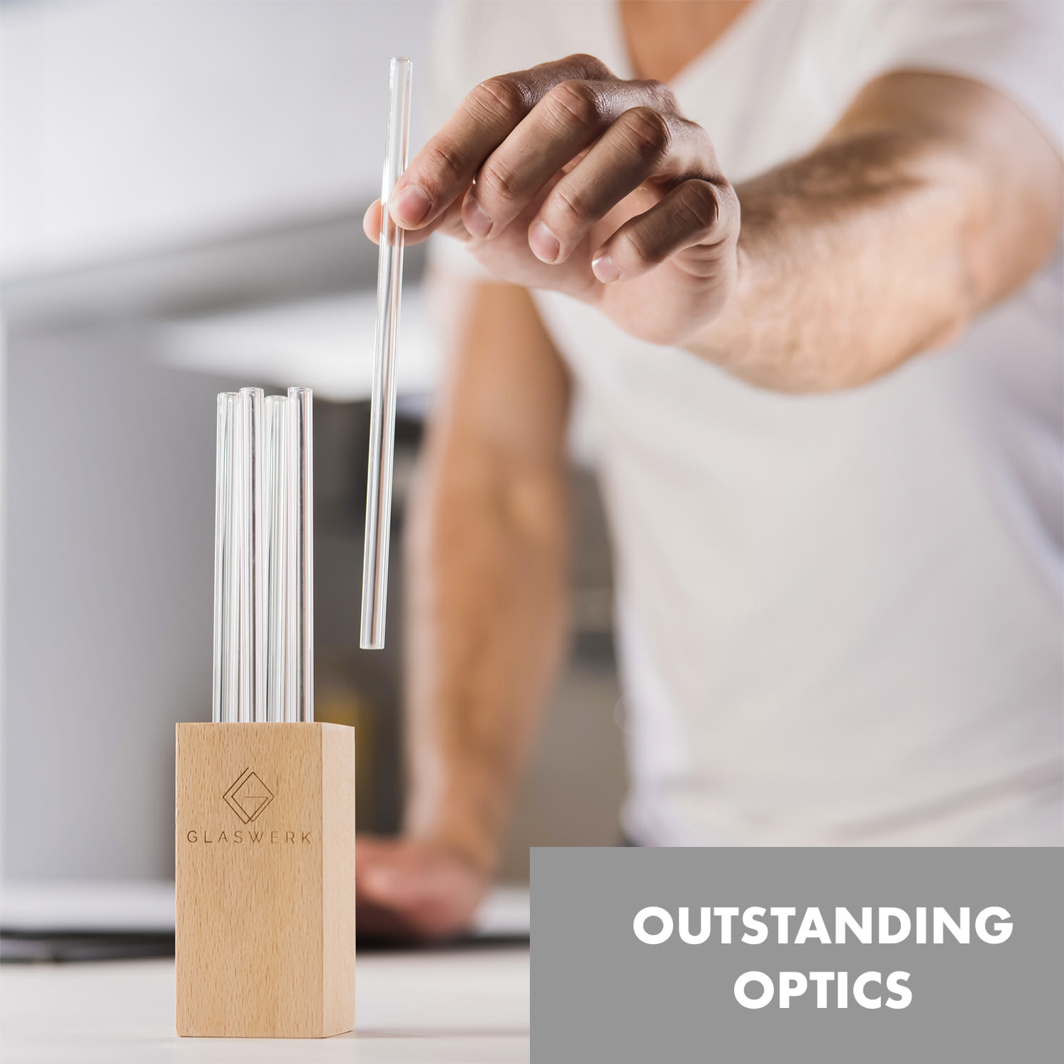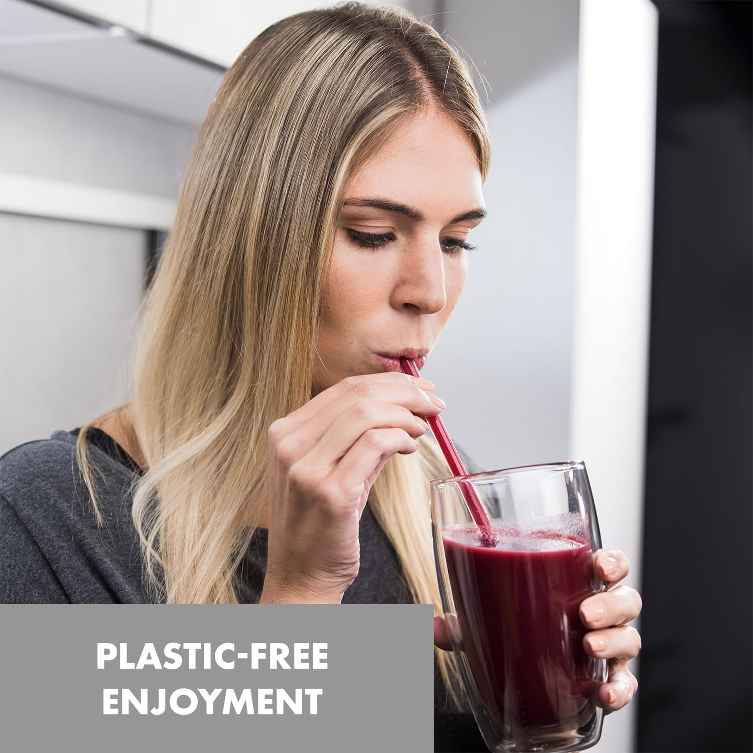 Opakovane používateľné, nerozbitné a odolné: sklenené slamky Salizzada od spoločnosti Klarstein sú dodávané rovno ako súprava: 7 slamiek na pitie vrátane praktického dreveného držiaka.V duchu hesla „menej je viac“ vsaď na nové pravidlá so sklenenými slamkami od spoločnosti Klarstein. Slamky presvedčia nielen svojou jednoduchosťou a eleganciou, ale tiež výberom materiálu: priehľadný, kvalitný a prírodný. Slamky na pitie sú vyrobené z mimoriadne ľahkého, nerozbitného, žiaruvzdorného aj mrazuvzdorného borosilikátového skla, a preto sú vhodné na studené aj horúce nápoje.Sedem slamiek na pitie s dĺžkou 20 cm a priemerom 8 mm sa dodáva s praktickým držiakom z bukového dreva a s čistiacou kefkou. Vďaka tomu je skladovanie aj čistenie hračkou. Sklenené slamky sú, samozrejme, vhodné do umývačky riadu, a preto ich možno použiť znova a znova. Keď už hovoríme o opätovnej použiteľnosti: so slamkami na pitie Klarstein Salizzada získaš nielen štýlové pomôcky na pitie, ale vďaka ich dlhej opakovanej použiteľnosti budeš zároveň chrániť životné prostredie.Ekologické, multifunkčné a s jednoduchou údržbou: so sklenenými slamkami Salizzada od spoločnosti Klarstein si vždy o dĺžku slamky popredu.