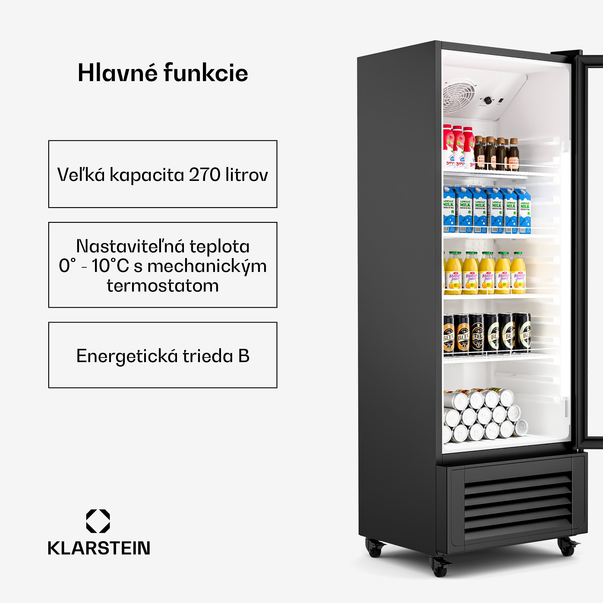 Klarstein GrandCooler chladnička na nápoje, 270 l, LED osvetlenie, s kolieskami, 4 police –Kúpiť
