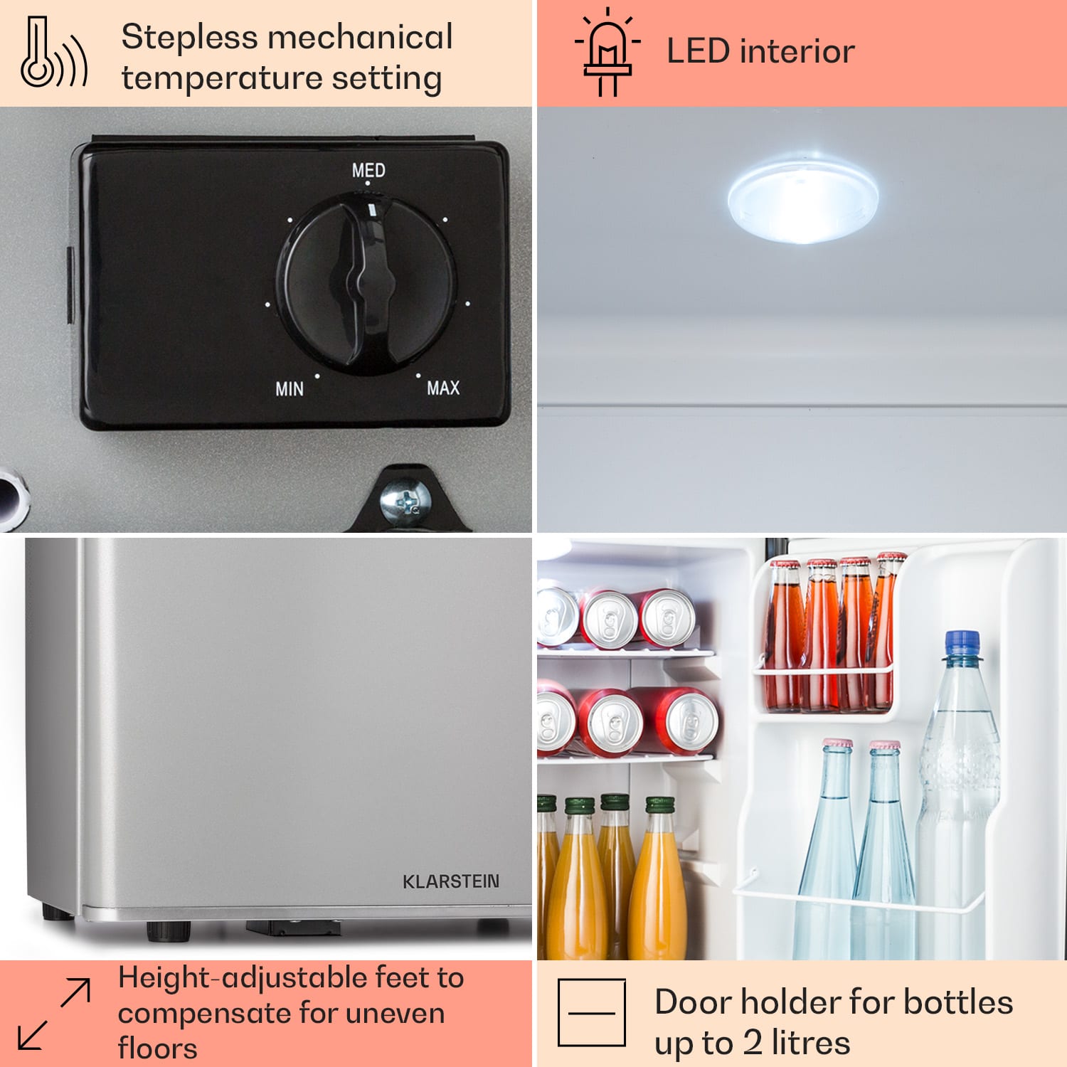 Klarstein Happy Hour 38, mini chladnička, minibar, chladnička na nápoje, 38 l, 26 dB –Kúpiť