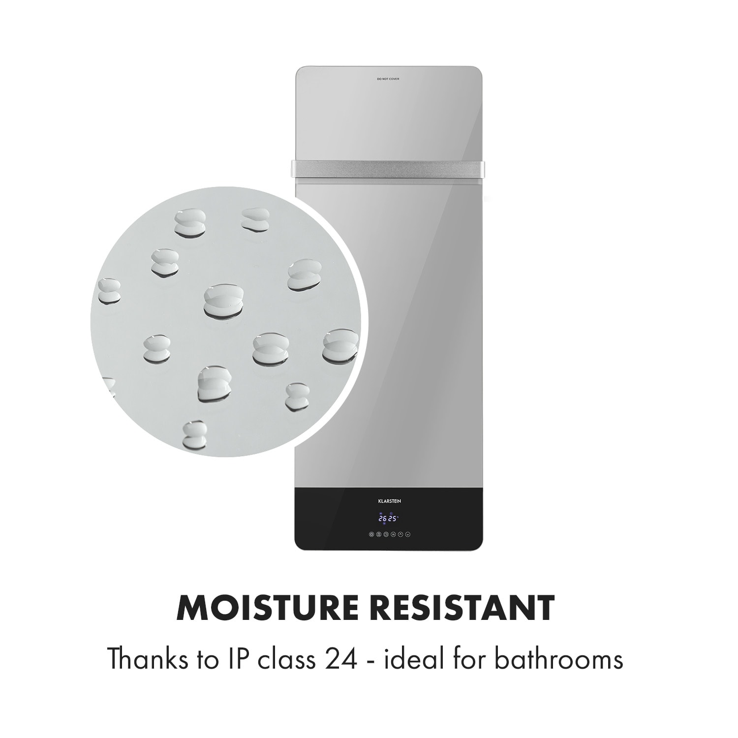 Revolučná technológia pre príjemné teplo: Infračervený ohrievač Klarstein Hot Spot Crystal Reflect Smart prináša do kúpeľne teplo s príjemnými zdraviu prospešnými infračervenými lúčmi a zároveň poskytuje príjemne vyhriate uteráky. Vysoko účinný vyhrievací panel , ktorý je veľmi plochý, možno zavesiť priamo na stenu a elegantne tak zapadne do vašej kúpeľne. Praktická zrkadlová predná časť dodáva sálavému ohrievaču mimoriadne elegantný vzhľad s nádychom luxusu. Celých 95 % absorbovanej energie sa premieňa na tepelné žiarenie pretože technológia IR ComfortHeat využíva princíp slnečného tepla.Revolučná technológia vyhrievania, zrkadlo a držiak na uteráky v jednom: infračervený elektrický ohrievač Klarstein Hot Spot Crystal Reflect Smart .