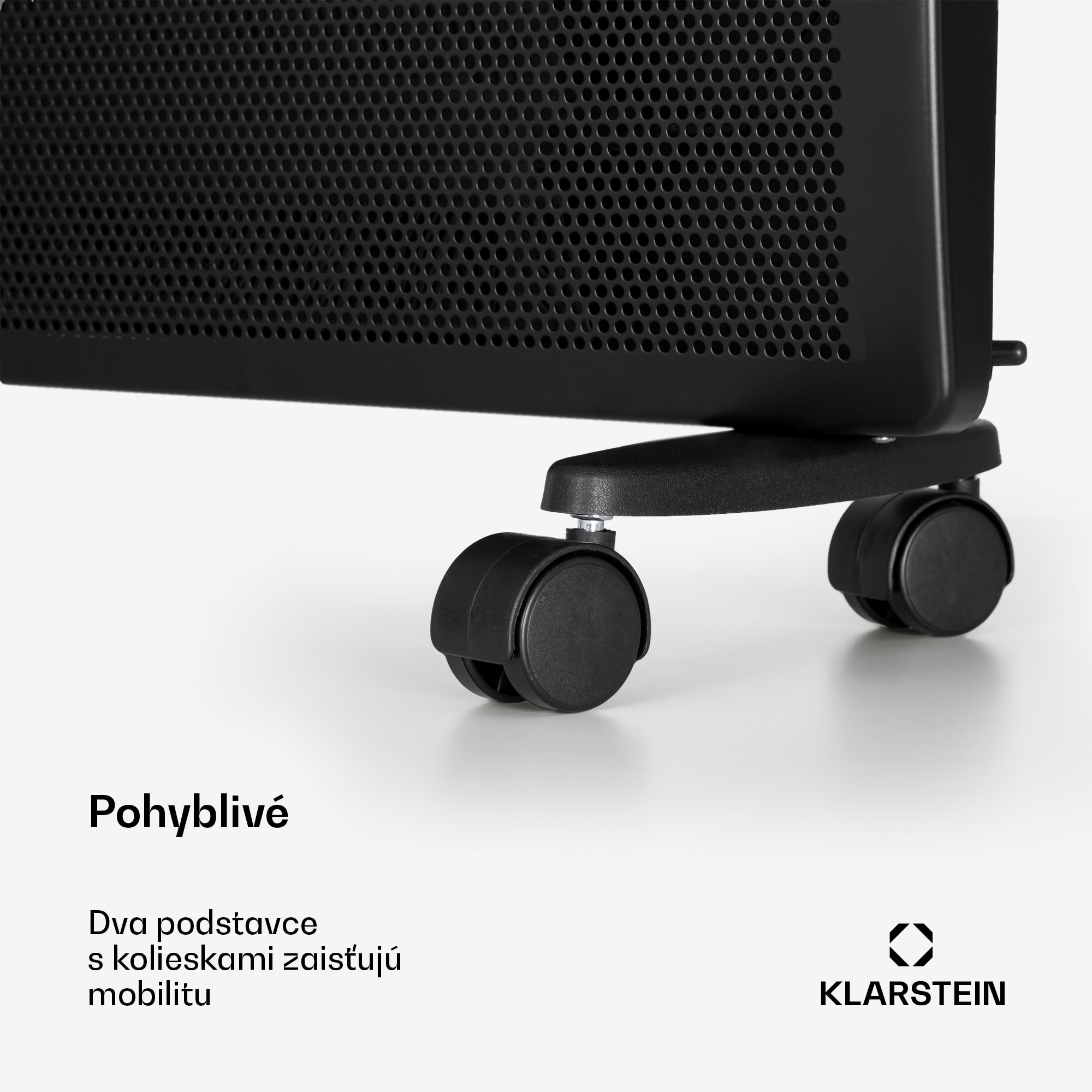 Príjemné teplo: ohrievač Klarstein Hot Spot Slimcurve Double Wave pracuje pomocou kombinácie konvekčnej a infračervenej technológie. Kým ohrievač ohrieva vzduch v miestnosti spoľahlivým výkonom 1000 W, infračervené vykurovacie teleso sa postará o príjemne teplý pocit na pokožke.Vykurovacie teleso s výkonom 1000 W sa dá plynulo nastavovať medzi 5 a 45 °C, a preto sa dokáže ideálne prispôsobiť individuálnym požiadavkám vykurovania. Vykurovací panel s rozmerom 46 x 40 cm je možné pripevniť priamo na stenu alebo sa dá použiť ako mobilné stojace zariadenie. Potrebnú mobilitu zabezpečujú dve pevné nožičky, každá s dvomi kolieskami, a 145 cm dlhý kábel. S výkonom 1000 W vyhrieva zariadenie bez problémov miestnosti do veľkosti 20 m². Týždenný časovač, ktorý je tiež k dispozícii, umožňuje naprogramovať podľa potreby časy vykurovania na každý deň v týždni – tým sa zaručí vždy príjemne teplá miestnosť. Funkcia detekcie otvorených okien OpenWindow sa navyše postará o automatické vypnutie zariadenia pri otvorení okna. Všetky nastavenia je možné vykonať priamo na ovládacom paneli ohrievača. Vďaka prehľadnému LED displeju budeš mať vždy prehľad. Dodatočnú bezpečnosť poskytuje nastaviteľná detská bezpečnostná poistka, ktorá zabraňuje náhodnému zapnutiu alebo vypnutiu, a tiež integrovaná ochrana voči prehriatiu. Ohrievač Klarstein Hot Spot Slimcurve Double Wave nie je výnimočný len z hľadiska technológie. Presvedčí aj svojím štýlovým dizajnom. Zaoblené hrany a lesklý povrch vyžarujú príjemné teplo a popri tom aj nádych luxusu.Ohrievač Klarstein Hot Spot Slimcurve Double Wave šíri príjemné teplo v chladných dňoch. Tento konvektor je ideálny pre každého, kto hľadá spoľahlivé a efektívne riešenie vykurovania.Upozornenie: Tento produkt je určený len na použite v dobre izolovaných miestnostiach alebo na príležitostné použitie.