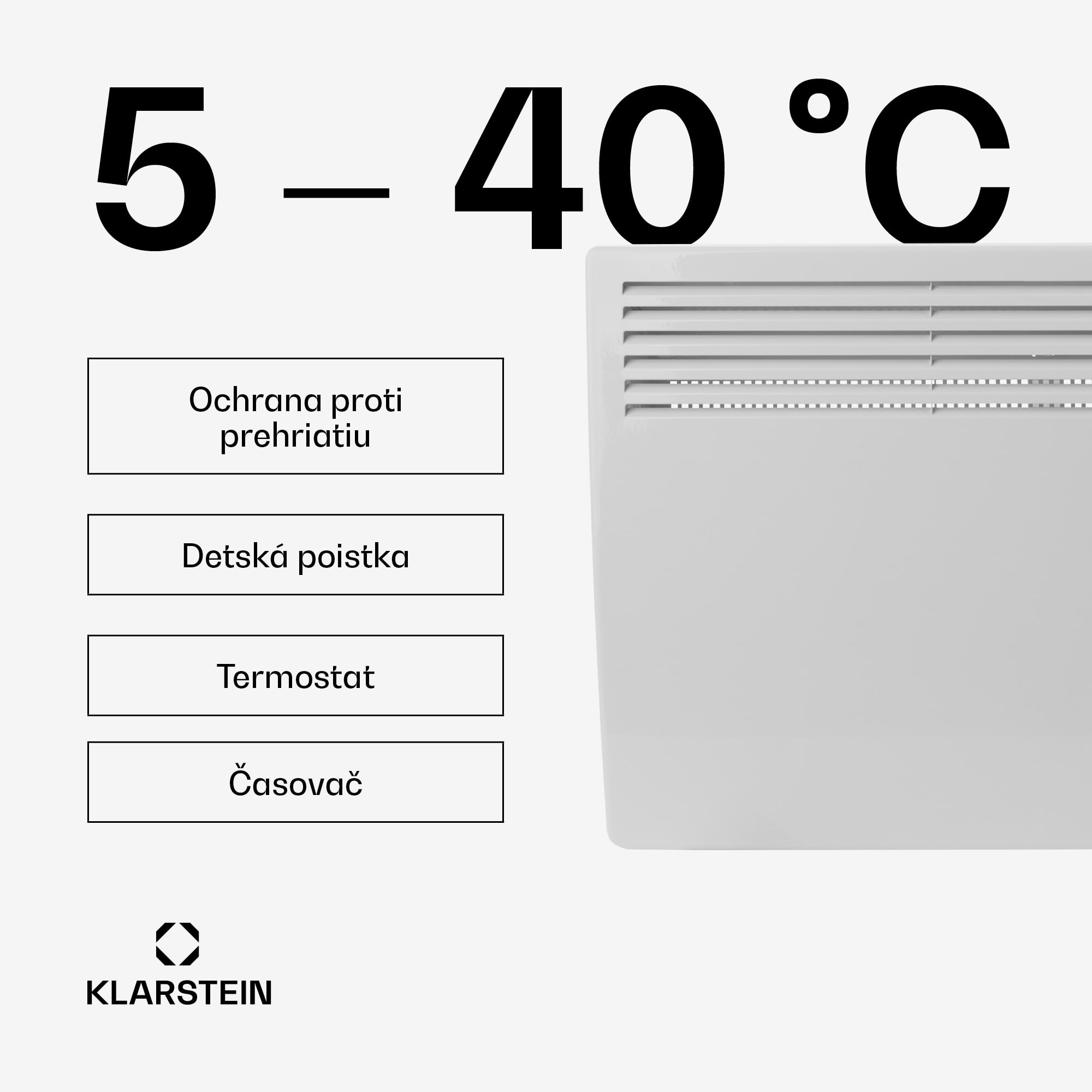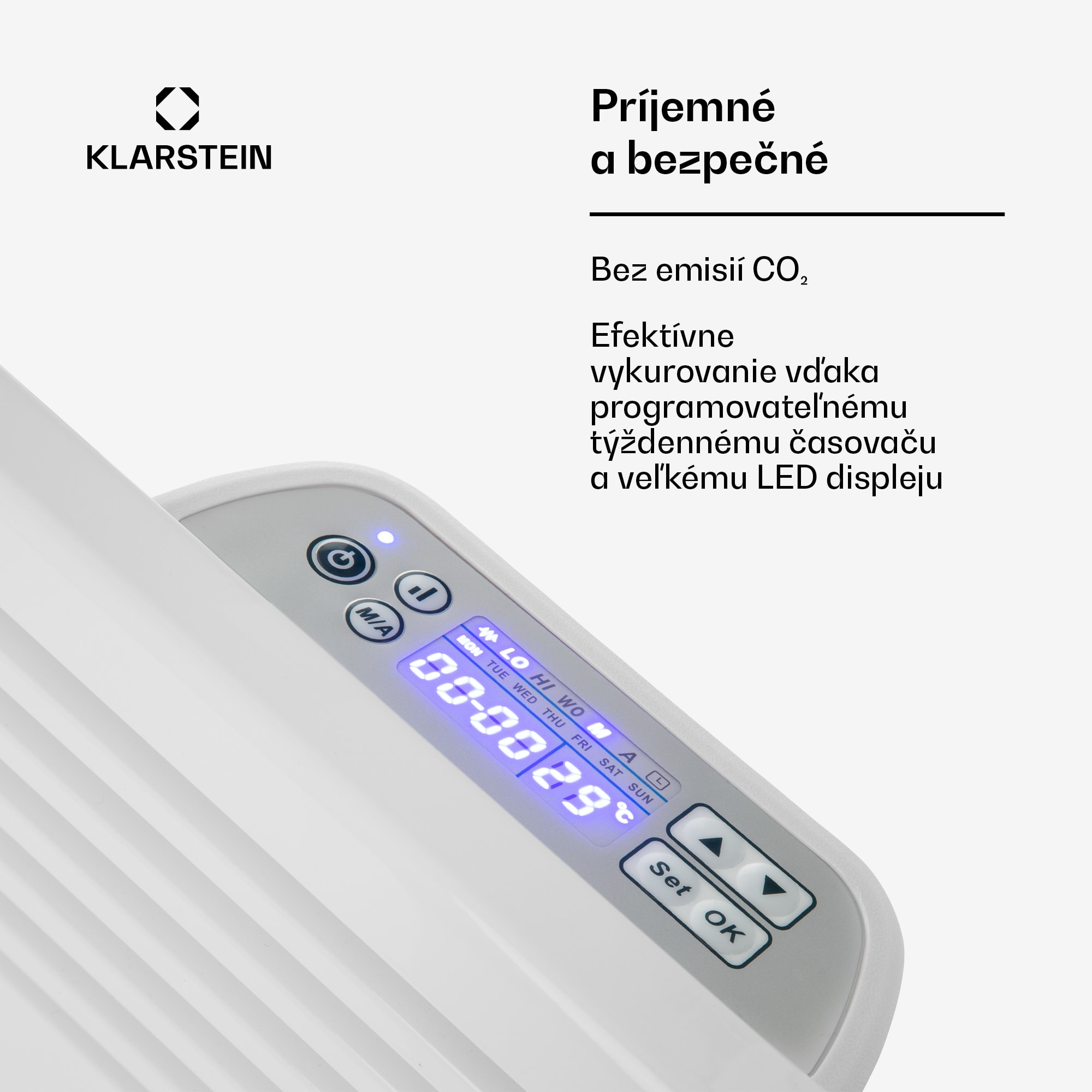 Príjemné teplo nielen na relax v kúpeľni. Konvekčný ohrievač Klarstein Hot Spot Slimcurve prináša teplo do každej miestnosti veľmi efektívnym a priestorovo úsporným spôsobom. Ohrievač na stenu Klarstein Hot Spot Slimcurve je priekopník vo vykurovaní vďaka svojmu hliníkovému vykurovaciemu telesu v tvare písmena X. V rekordnom čase ohrieva vzduch s výkonom 1000 alebo 2000 W a privádza ho do cirkulácie vďaka konvekčnému pracovnému princípu. Napríklad priestory do 40 m² sa zohrejú na príjemné teplo závratnou rýchlosťou. Vďaka ochrane proti striekajúcej vode podľa IP24 je toto zariadenie ideálne do kúpeľne, samozrejme vyhreje bez problémov aj každú inú miestnosť. Vďaka programovaniu „cleverheat“ vždy získajte správny vykurovací výkon: integrovaný termostat môže byť nastavený na teploty medzi 5 a 40 °C a automaticky rozpoznáva, kedy je potrebný vysoký alebo nízky výkon vykurovania, aby teplota miestnosti dosiahla požadovanú úroveň. Týždenný časovač umožňuje programovanie času vykurovania podľa Vášho želania na každý deň v týždni – takže príjemne vyhriata kúpeľňa je vždy zaručená. Všetky nastavenia sa vykonávajú priamo na LED paneli ohrievača. Konvekčný ohrievač Klarstein Hot Spot Slimcurve nielenže vyniká z hľadiska technológie, ale tiež presvedčí svojím štýlovým dizajnom so zaoblenými tvarmi. S bielou povrchovou úpravou zároveň prináša do každej kúpeľne dotyku luxusu. Vykurovacie zariadenie Klarstein Hot Spot Slimcurve sa postará o príjemné teplo v kúpeľni každý deň v týždni!