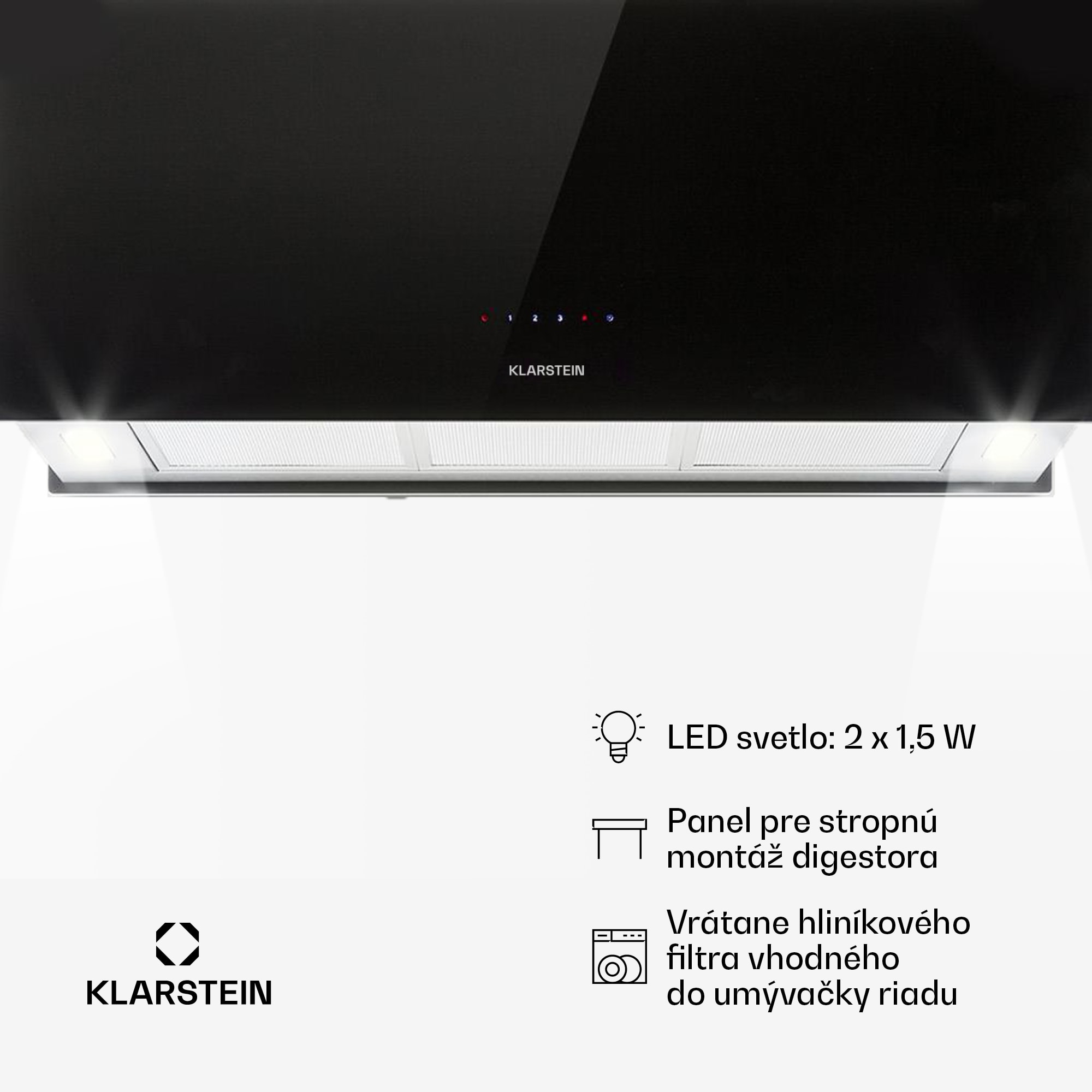 Svietiaca elegancia: Stropný digestor Klarstein Kronleuchter XL prinesie elegantný lesk do kuchyne a zbaví vzduch pár a výparov.Dokonalosť pre kuchynský ostrov. Odsávačom pár Klarstein Kronleuchter XL získa otvorená varná plocha posledný zábrus, keďže názov odsávača zároveň pomenúva aj jeho program. Ostrovčekový digestor je zavesený na strop pomocou nehrdzavejúcich laniek s dĺžkou 60 cm a odstraňuje výpary vznikajúce pri varení. Tri výkonnostné stupne umožňujú odsávanie (recirkuláciu) vzduchu až 590 m3/h, čím sa odsávač hodí pre veľké americké ostrovčekové kuchyne. Všetky výkony podporuje aj zabudované biele LED osvetlenie pracovnej plochy, ovládanie prebieha na LED dotykovom paneli. Farebné LED indikátory zobrazujú výkonnostný stupeň.digestor Klarsten Kronleuchter XL sa vyznačuje hodnotným dizajnom. Predná a zadná strana sú zasklené čiernym bezpečnostným sklom, bočné strany sú vyhotovené z brúsenej nerezovej ocele.Čistý vzduch a elegantný výzor: stropný digestor Klarstein Kronleuchter XL dodá kuchyni lesknúci sa šarm.