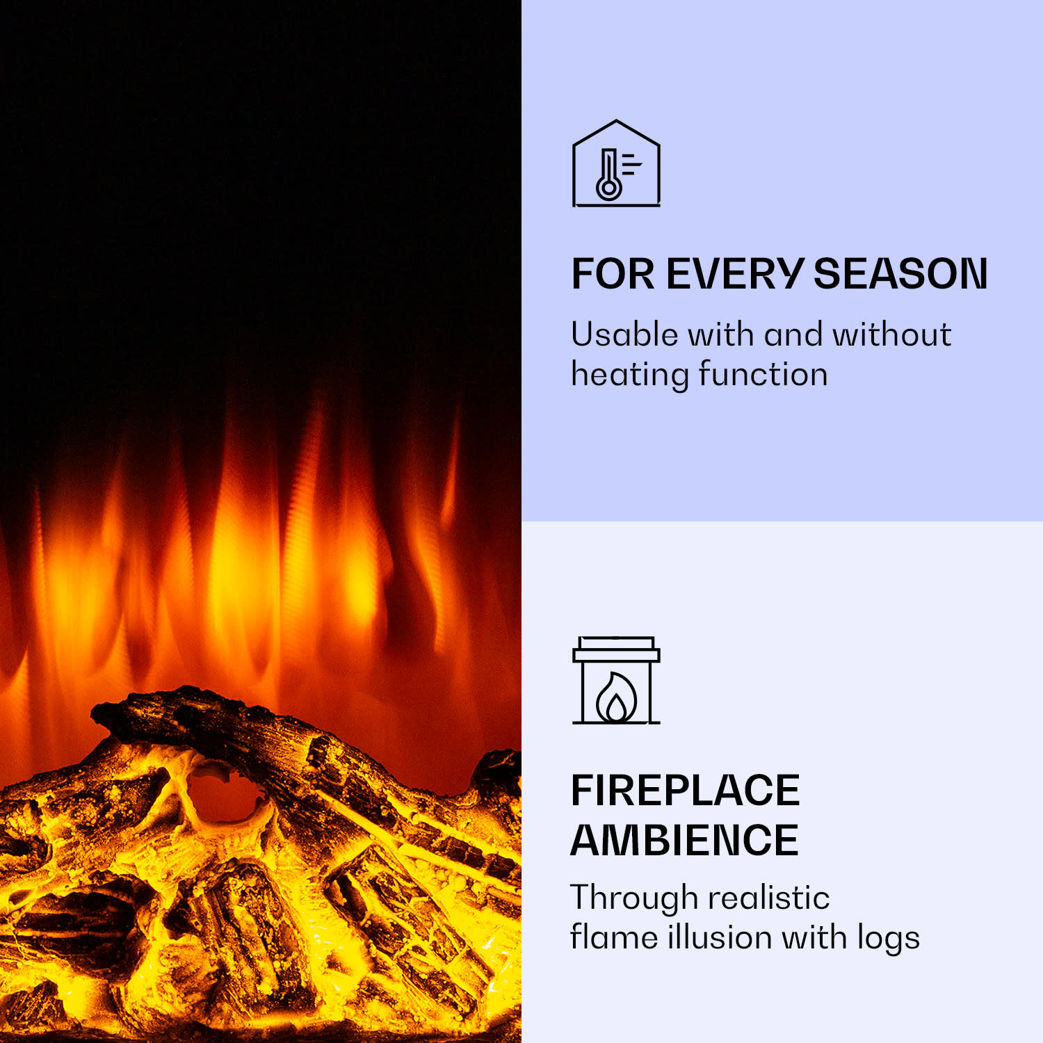 Realistické LED plamene a príjemné teplo: s elektrickým krbom Lamington od spoločnosti Klarstein vytvoríte vo svojom domove nádherne útulnú atmosféru. Jeho dva stupne ohrevu sa postarajú o príjemné teploty a praskajúci LED oheň bude živo blčať nad drevenými polenami. Zvláštnosťou nástenného krbu Lamington je jeho farebné ambientné svetlo na zadnej strane. Jas plameňa môžete individuálne prispôsobiť. Vďaka integrovanému časovaču a praktickému diaľkovému ovládaču splní zariadenie Lamington všetky vaše predstavy. Zaoblená sklenená predná časť šikovne dotvára jeho moderný dizajn.