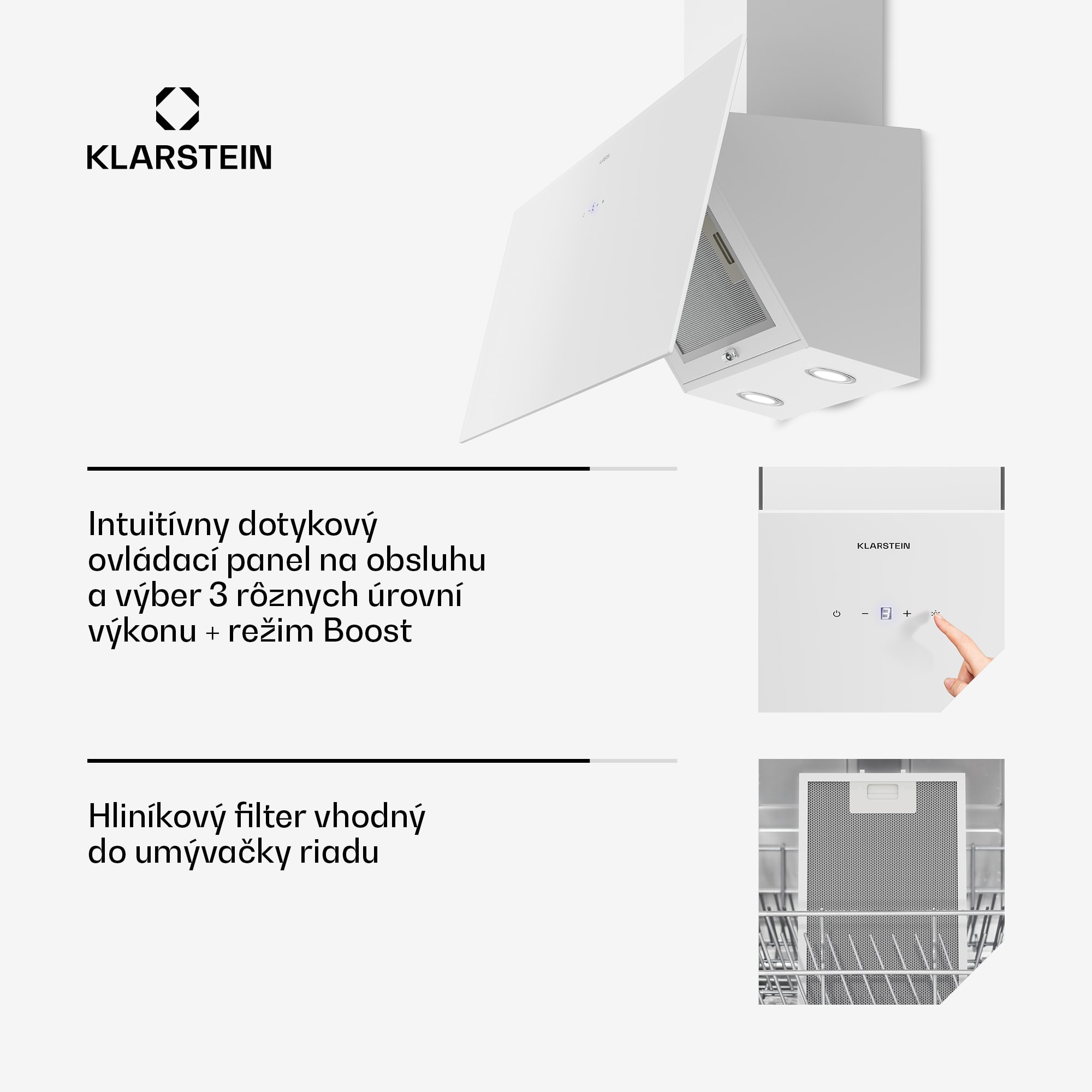 Klarstein Laurel šikmý digestor | režim odsávania vzduchu a recirkulácie | bezpečnostné sklo | 417 m³/h | 90 cm –Kúpiť