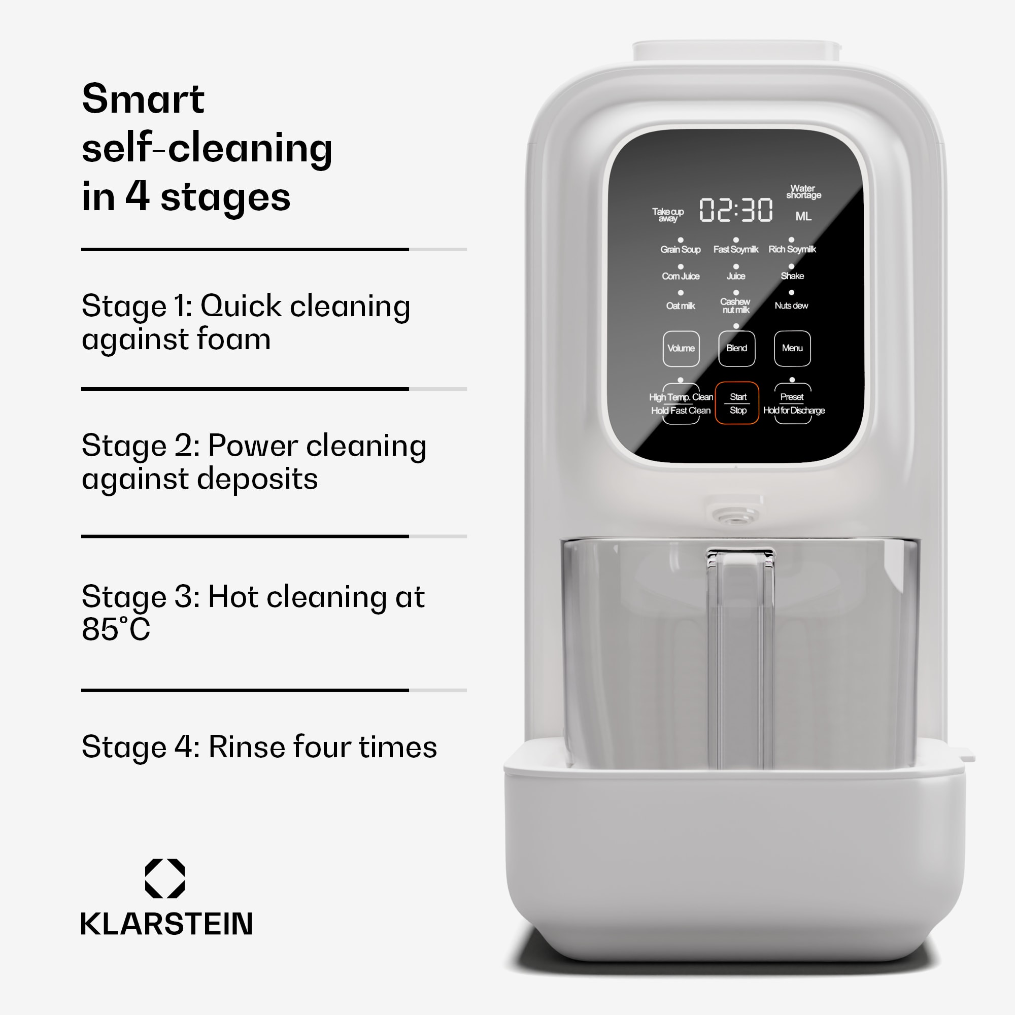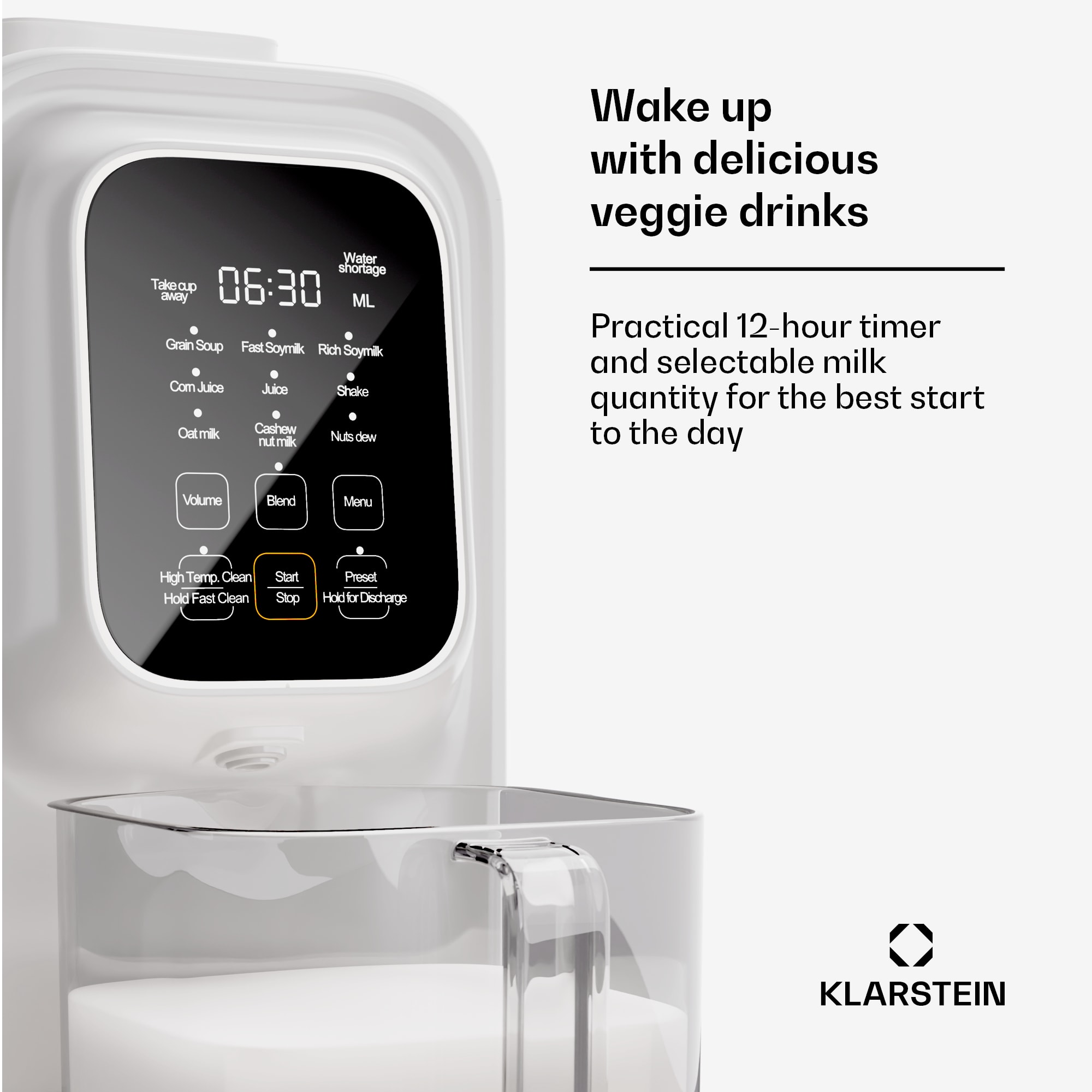 Maximálny výkon pre kvalitné vegánske nápoje a mnoho ďalšieho: výrobník vegánskych nápojov Klarstein Loire 4 v 1 je váš kuchynský pomocník na každý deň. Vďaka funkcii 4 v 1 vám v okamihu pripraví vegánske alternatívy mlieka, detskú výživu a ďalšie produkty. Môžete ho používať ako výkonný mixér a kuchynský robot. Vďaka rýchlemu ohrevu s výkonom 1200 W a motoru s výkonom 800 W je príprava všetkých nápojov, štiav a pyré rýchla a jednoduchá. Jeho vysokokvalitný mlynček so 4 čepeľami vykúzli zo surovín jemný základ pre nápoje. Najmä pre vegánov a ľudí s intoleranciou laktózy je vysokokvalitný mixér Klarstein Loire hitom: s ním si ľahko pripravíte sójové alebo orechové nápoje!Vďaka elegantnému, štíhlemu dizajnu a praktickej samočistiacej funkcii je výrobník vegánskych nápojov Klarstein Loire aj profesionálny mixér s mnohými prednastavenými funkciami. Obsluhuje sa jednoducho pomocou dotykových tlačidiel a displeja. Môžete používať prednastavené programy a individuálne nastaviť 12-hodinový časovač. Ideálny na privítanie rána čerstvo pripraveným nápojom. Súčasťou balenia je aj odmerka a čistiaca kefka.