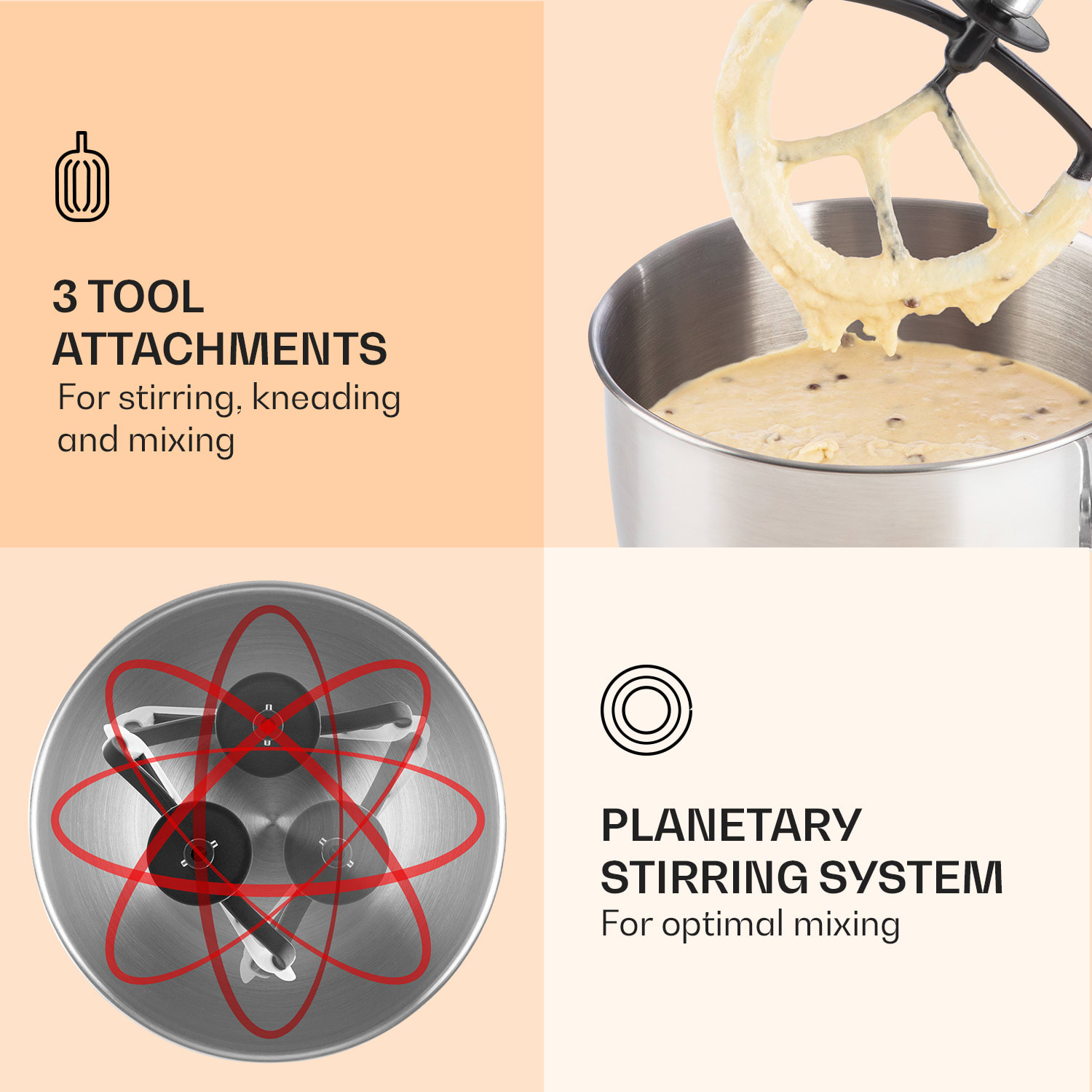 Klarstein Lucia je silný kuchynský robot, ktorý má nástavce na miešanie, hnetenie, mlynček na mäso a mixovací pohár.Najkonvenčnejším prostriedkom kuchynského robota Klarstein sú miešacia a miesiaca sekcia, ktoré sa podieľajú na príprave receptov vďaka miešaciemu háku, metle na sneh a hnetaciemu háku. Prostredníctvom nich vytvoríte rôzne hmoty – od bielkového snehu, cez piškótové cesto až po cesto na chlieb. Pracovné tempo kuchynského robota možno prispôsobiť povahe cesta.Vďaka šablónam mlynčeka na mäso možno jedálniček obohatiť o jedlá ako fašírka, cestoviny alebo aj o koláčiky. Vďaka mixérovému nadstavcu z pravého skla možno pripraviť rôzne kokteily a smoothies.Opticky nadväzuje kuchynský robot Klarstein na funkcionalistické tradície dizajnu.Mixér a mlynček na mäso sú rovnako modulárne koncipované, môžu byť teda pár ťahmi upevnené a odmontované, uskladnené na porovnateľne malej ploche.Príslušenstvo: 10007910 Lucia/Gracia nástavec na mletie mäsa10008803 Carina/Lucia mixovacia nádoba10029754 Lucia Pasta Flat nadstavec na cestoviny10029756 Lucia Pasta 15 nadstavec na cestoviny10029757 Lucia Pasta 40 nadstavec na cestoviny10029758 Lucia Pasta 65 nadstavec na cestoviny10029759 Lucia Cookie nadstavec na sušienky10031097 Lucia/Bella flexibilný miešací hák10031521 Lucia sada dierovaných diskov10031522 Bella/Lucia miska z nehrdzavejúcej ocele10031097 Lucia/Bella flexibilný miešací hák10031521 Lucia sada dierovaných diskov10031522 Bella/Lucia miska z nehrdzavejúcej ocele10006310 Bella/Lucia miska z nehrdzavejúcej ocele10006311 Bella hnetací hák10006312 Bella miešací hák10006313 Bella/Lucia metlička na sneh10006314 Bella veko