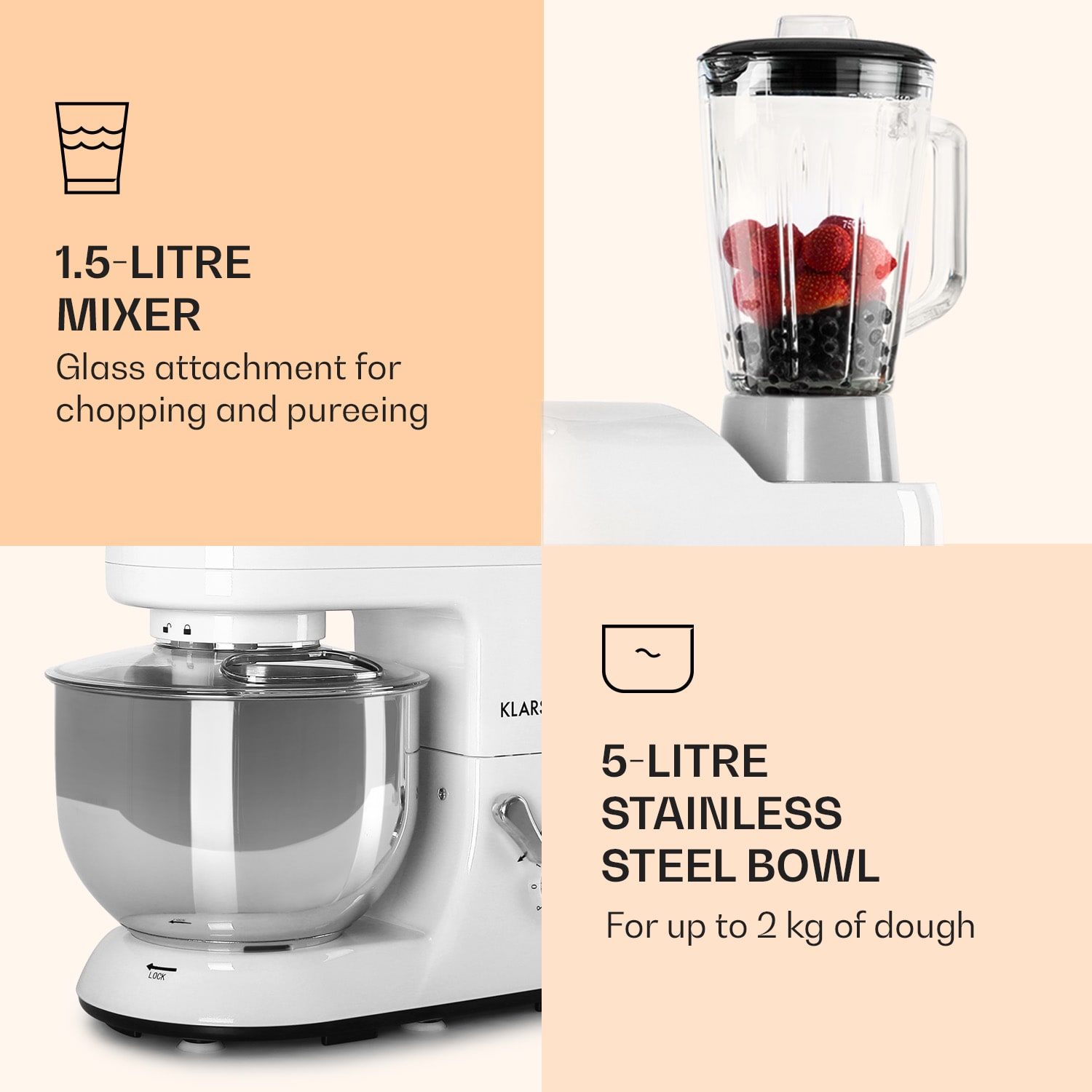 Klarstein Lucia, kuchynský robot, mixér, mlynček na mäso, 1800 W –Kúpiť