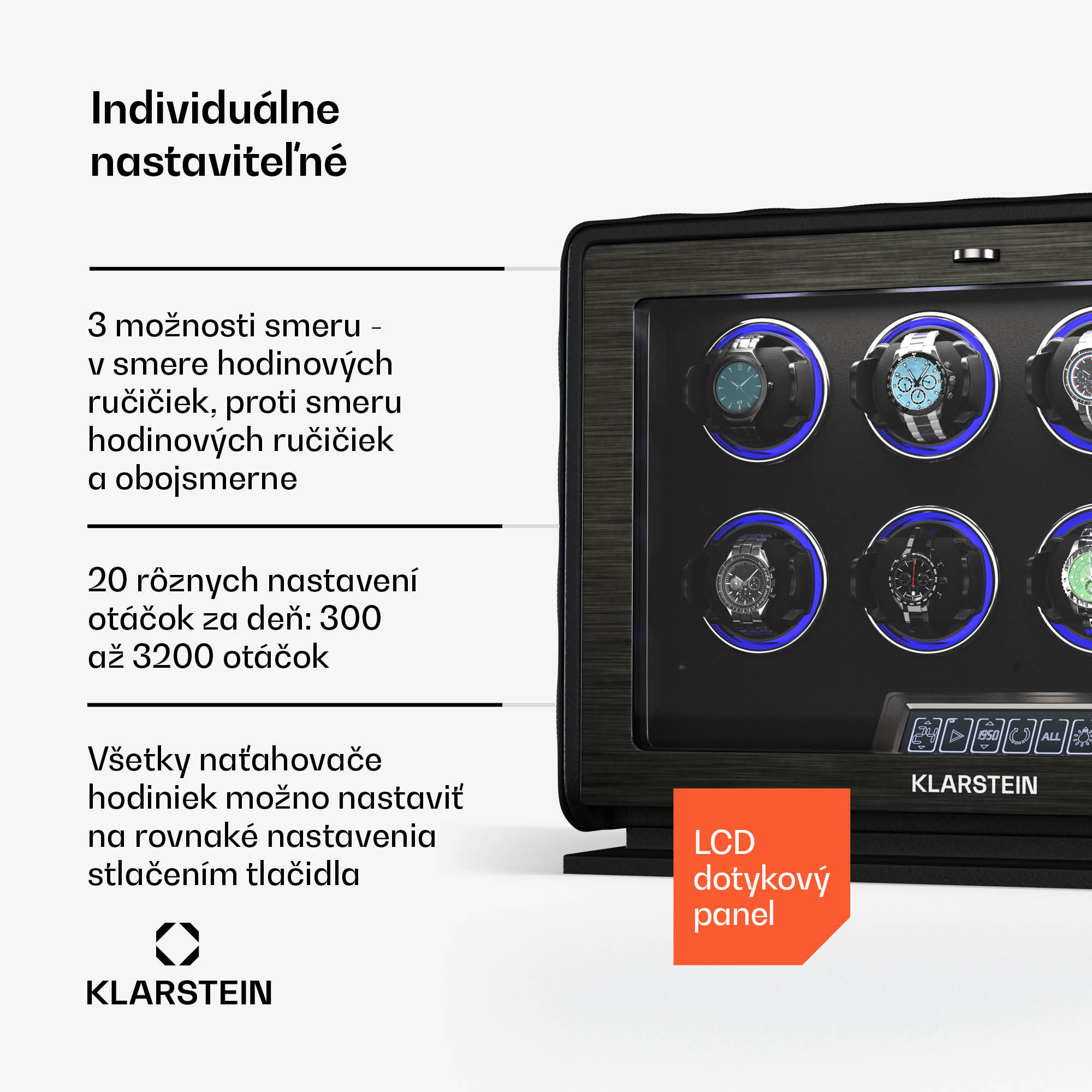 Klarstein LuminousTime naťahovač hodiniek, 8 hodiniek, mnoho nastavení, LED, 10 dB