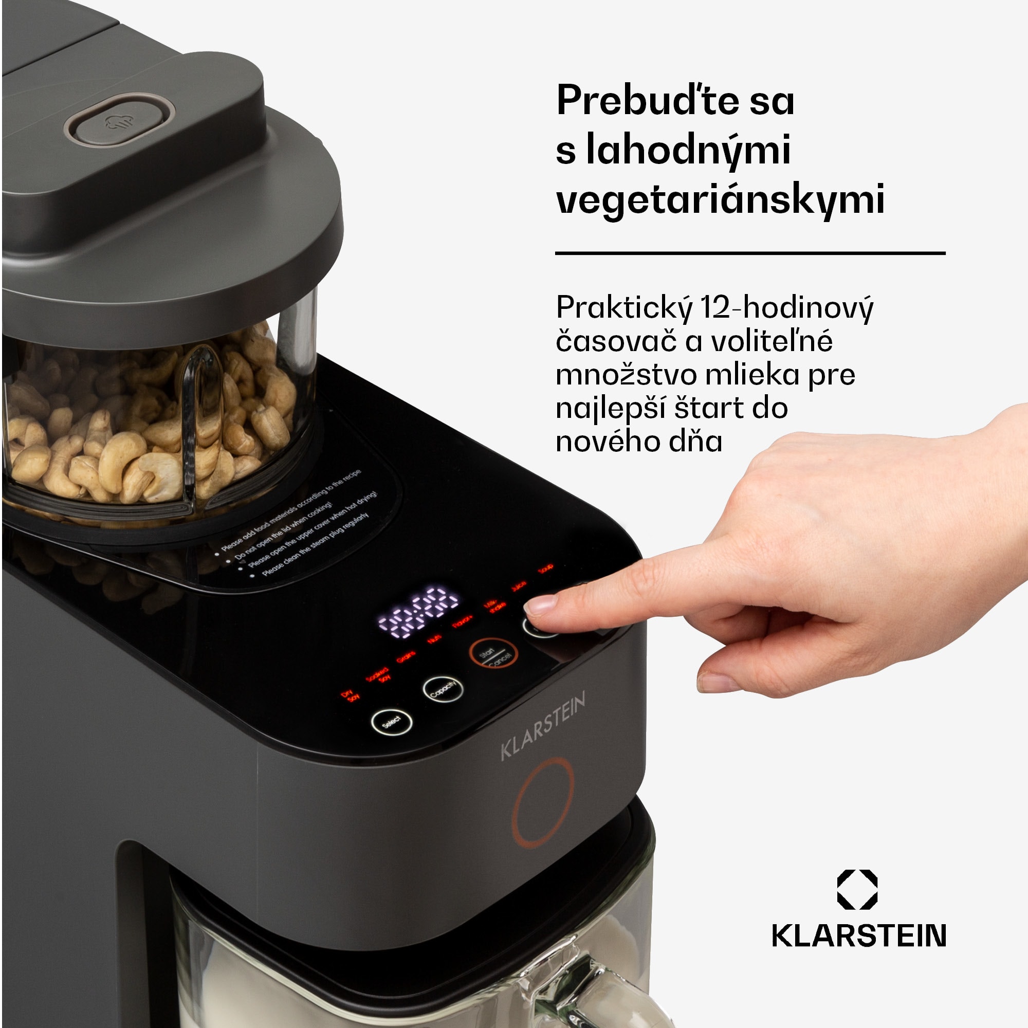 Klarstein Marcia, výrobník rastlinného mlieka, 300 – 1200 ml, 360°, dotykové ovládanie, odnímateľný zásobník na vodu –Kúpiť