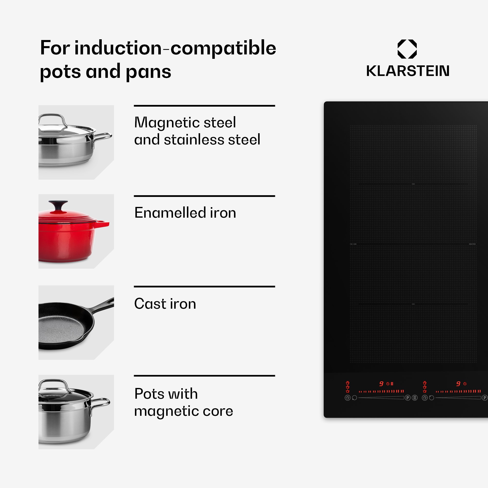 Indukčná varná doska Klarstein Masterzone 60 Flex nanovo definuje varenie. Technológia Smart Flex umožňuje jedinečný zážitok z varenia: teplota sa automaticky upravuje jednoduchým posúvaním panvice dopredu alebo dozadu. Túto revolučnú funkciu môžete kedykoľvek aktivovať alebo deaktivovať ťuknutím na symbol na varnej doske. So štyrmi varnými zónami a celkovým výkonom 7000 W ponúka varná doska všestranné možnosti varenia.Hladký sklokeramický povrch sa ľahko čistí. Bezpečnostné funkcie, ako je ochrana proti prehriatiu a automatické vypnutie, zaisťujú bezpečnosť. Funkcia Simmer umožňuje nepretržité varenie pri nízkej teplote, ideálne na dusenie alebo roztopenie. Posuvný dotykový ovládací panel umožňuje nastaviť výkon 9600 W s funkciou Boost a zabezpečuje presnú reguláciu teploty.Elegantný dizajn so sklokeramickým povrchom sa nielen esteticky, ale aj funkčne hodí do každej kuchyne. Flexi zóna umožňuje použitie väčších hrncov a panvíc. Ďalšie funkcie, ako napríklad senzor panvice, funkcia pauzy a detský zámok, zvyšujú komfort obsluhy Kompatibilná je s rôznymi materiálmi, ale nie je vhodný pre hliník, meď, sklo alebo žiaruvzdorné sklo. Indukčná varná doska Klarstein Masterzone 60 Flex – dokonalá kombinácia inovácie, výkonu a elegancie pre náročných amatérskych kuchárov.