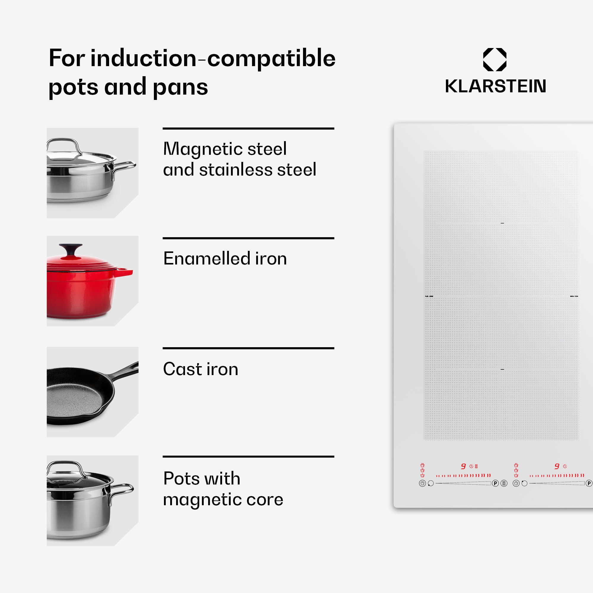 Indukčná varná doska Klarstein Masterzone 60 Hybrid nanovo definuje varenie. Na pravej strane varnej dosky sú dve pevné varné zóny, zatiaľ čo na ľavej strane je integrovaná flexi zóna s automatickým prispôsobením veľkosti hrnca a technológiou Smart Flex. Teplota sa reguluje automaticky jednoduchým posúvaním panvice dopredu a dozadu. Túto prelomovú funkciu je možné kedykoľvek aktivovať alebo deaktivovať klepnutím na ikonu na varnej doske.So štyrmi varnými zónami a celkovým výkonom 7000 W ponúka varná doska všestranné možnosti varenia. Hladký sklokeramický povrch sa ľahko čistí a bezpečnostné funkcie, ako je ochrana proti prehriatiu a automatické vypnutie, zabezpečujú bezpečné varenie. Funkcia Simmer umožňuje nepretržité varenie pri nízkej teplote, ideálne na dusenie alebo roztopenie. Posuvný dotykový ovládací panel umožňuje nastaviť výkon 9600 W s funkciou Boost a zabezpečuje presnú reguláciu teploty.Elegantný dizajn so sklokeramickým povrchom sa hodí do každej kuchyne nielen esteticky, ale aj funkčne. Flexi zóna umožňuje použitie väčších hrncov a panvíc. Ďalšie funkcie, ako napríklad senzor panvice, funkcia pauzy a detský zámok, zvyšujú komfort obsluhy Indukčná varná doska Klarstein Masterzone 60 Hybrid je kompatibilná s rôznymi materiálmi, nie je však vhodná pre hliník, meď, sklo alebo žiaruvzdorné sklo. Dokonalá kombinácia inovácie, výkonu a elegancie pre náročných domácich kuchárov.Upozornenie: Farba produktu sa môže mierne líšiť od zobrazenia na fotografii.
