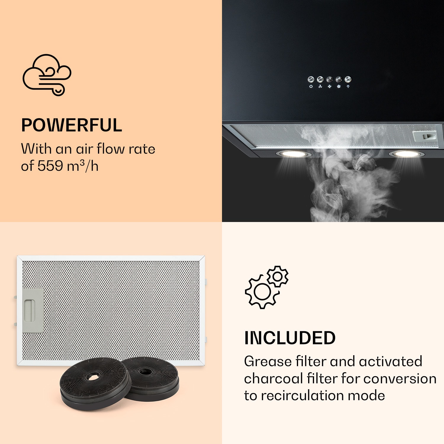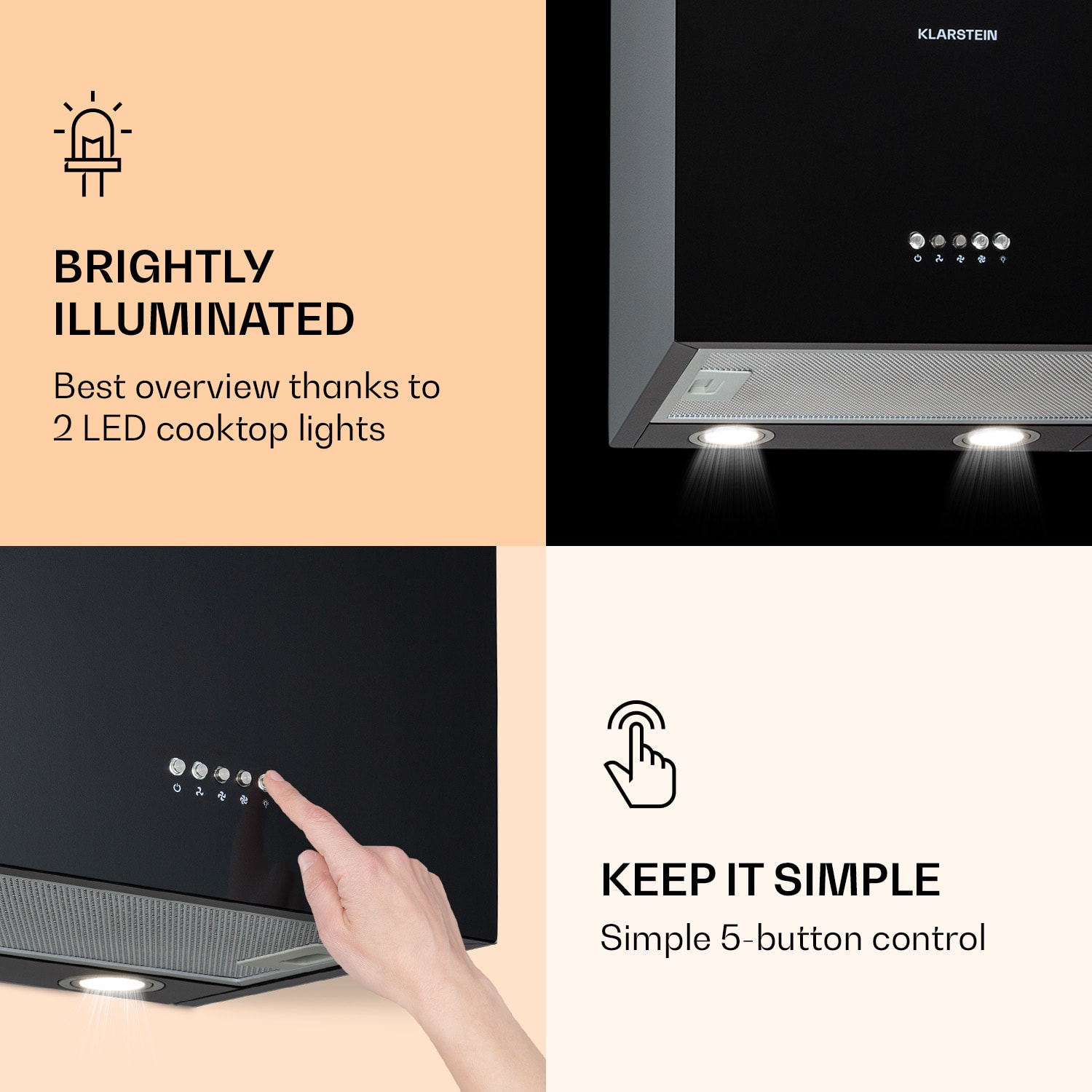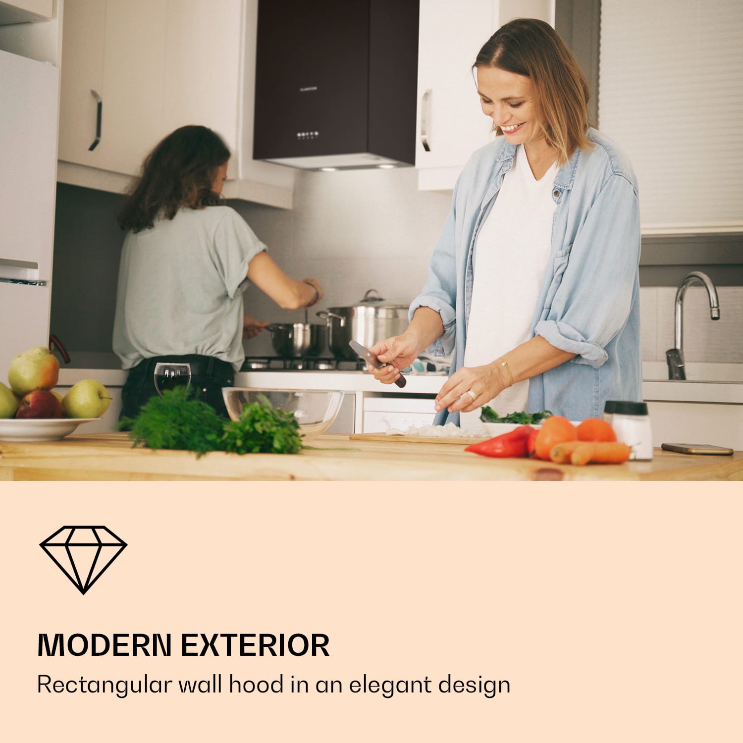 Digestor Monumenta od spoločnosti Klarstein zaujme jednoduchým ovládaním, vysokým výkonom a elegantným hranatým dizajnom. Nástenný digestor s prietokom vzduchu až 559 m³/h zabezpečuje čistý vzduch v každej kuchyni a nedáva šancu výparom a silným pachom. Dve integrované LED diódy osvetľujú dianie na varnej ploche podobne ako denné svetlo. Všetky funkcie pohodlne ovládate pomocou 5-tlačidlového ovládacieho panela na prednej strane. Vysokokvalitné materiály a moderný dizajn spolu vytvárajú skutočnú pastvu pre oči. Vďaka trom úrovniam výkonu, nízkej prevádzkovej hlučnosti 68 dB a triede energetickej účinnosti B obohatí Klarstein Monumenta celú atmosféru vašej kuchyne.